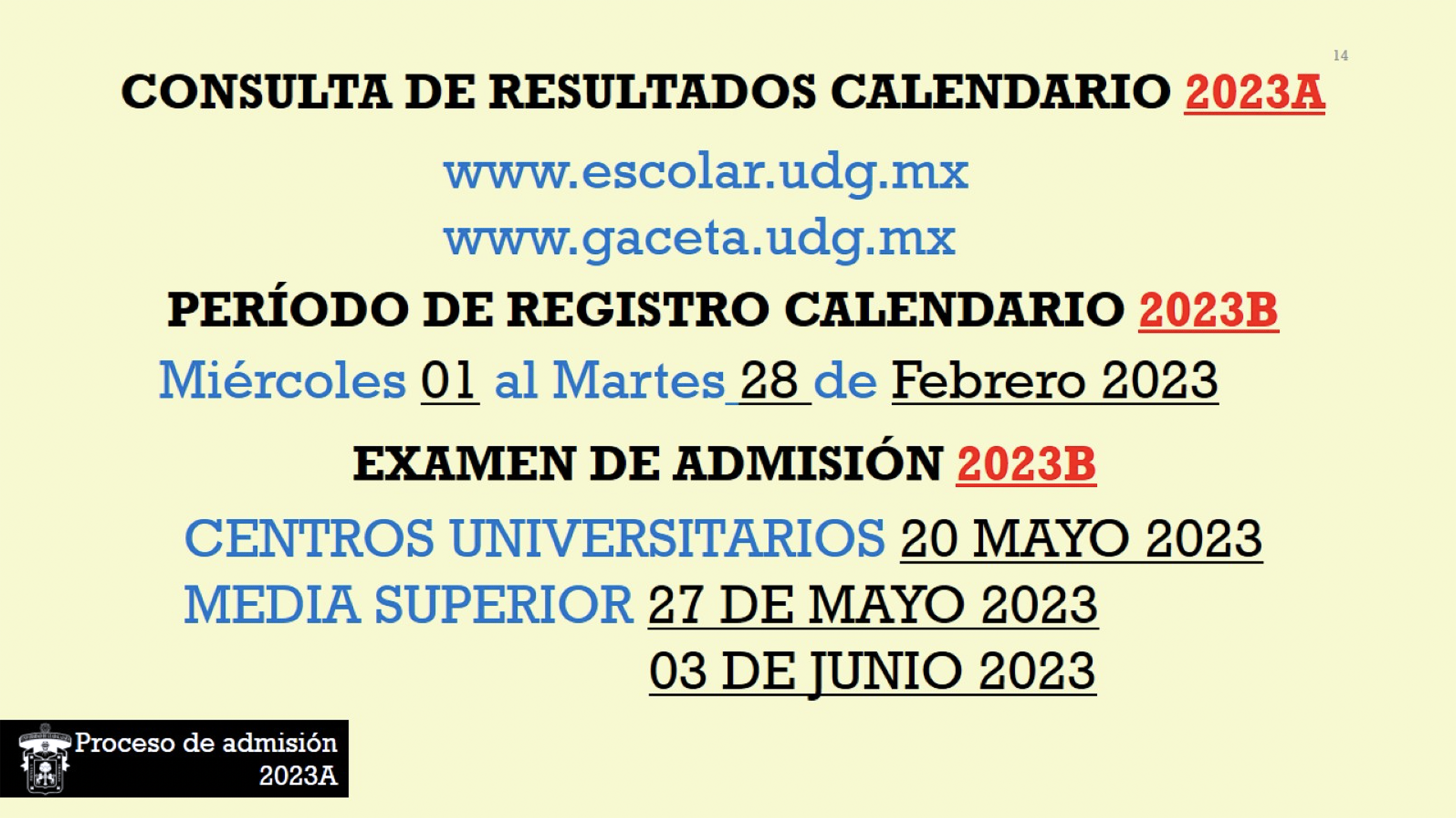 El siguiente periodo de trámites para el calendario 2023-B se llevará a cabo del 1 al 28 de febrero. Para consultar las fechas y pasos a seguir las y los interesados pueden consultar la página www.escolar.udg.mx