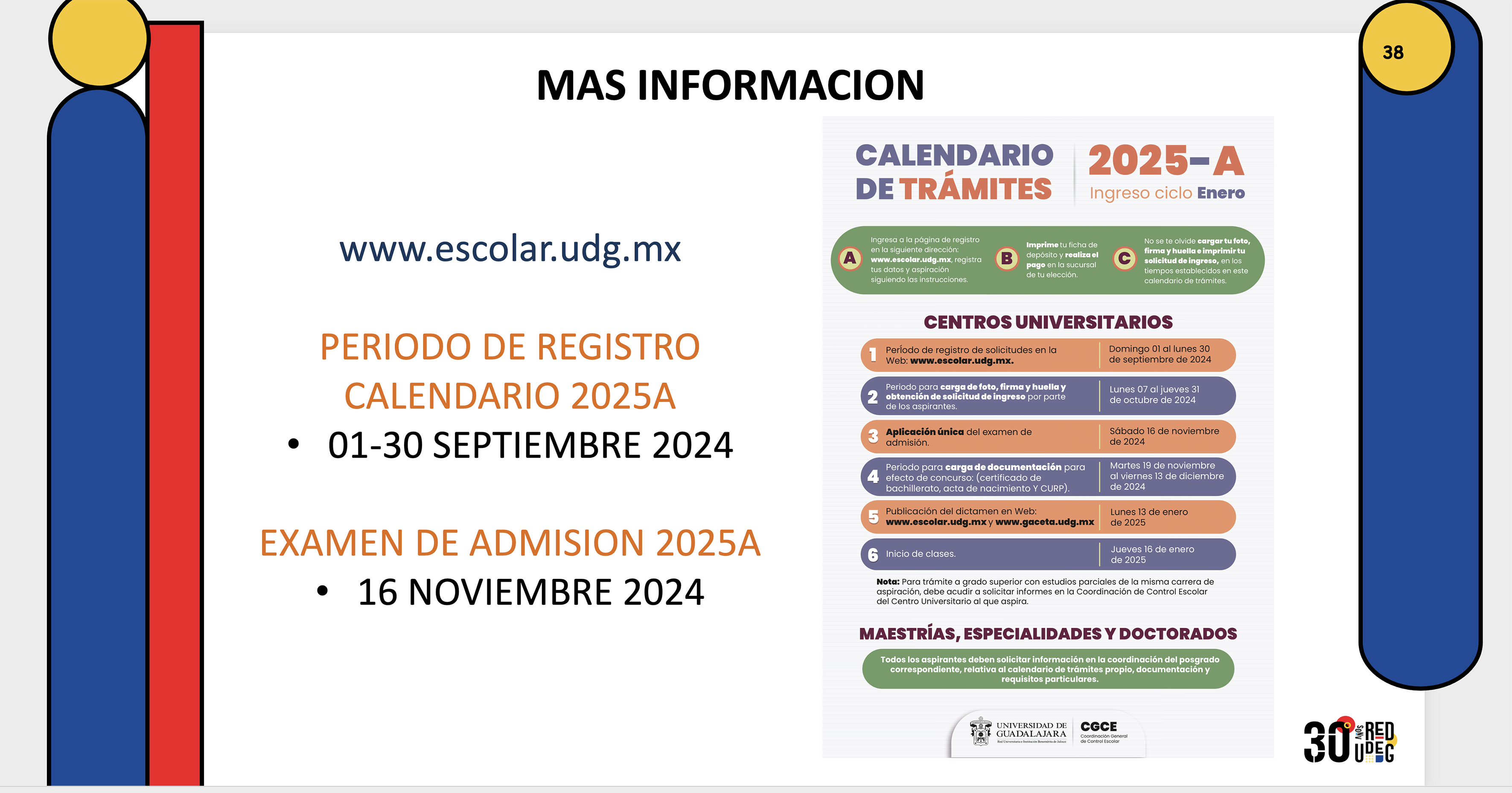 Como una medida para facilitar la educación, la UdeG aún cuenta con cupos disponibles para distintas carreras de la Red en el semestre 2024-B y para planteles del SEMS en el calendario 2025-A, informó la licenciada Diana Gómez Guerrero, titular de la Dirección de Trámite y Control Escolar del SEMS.