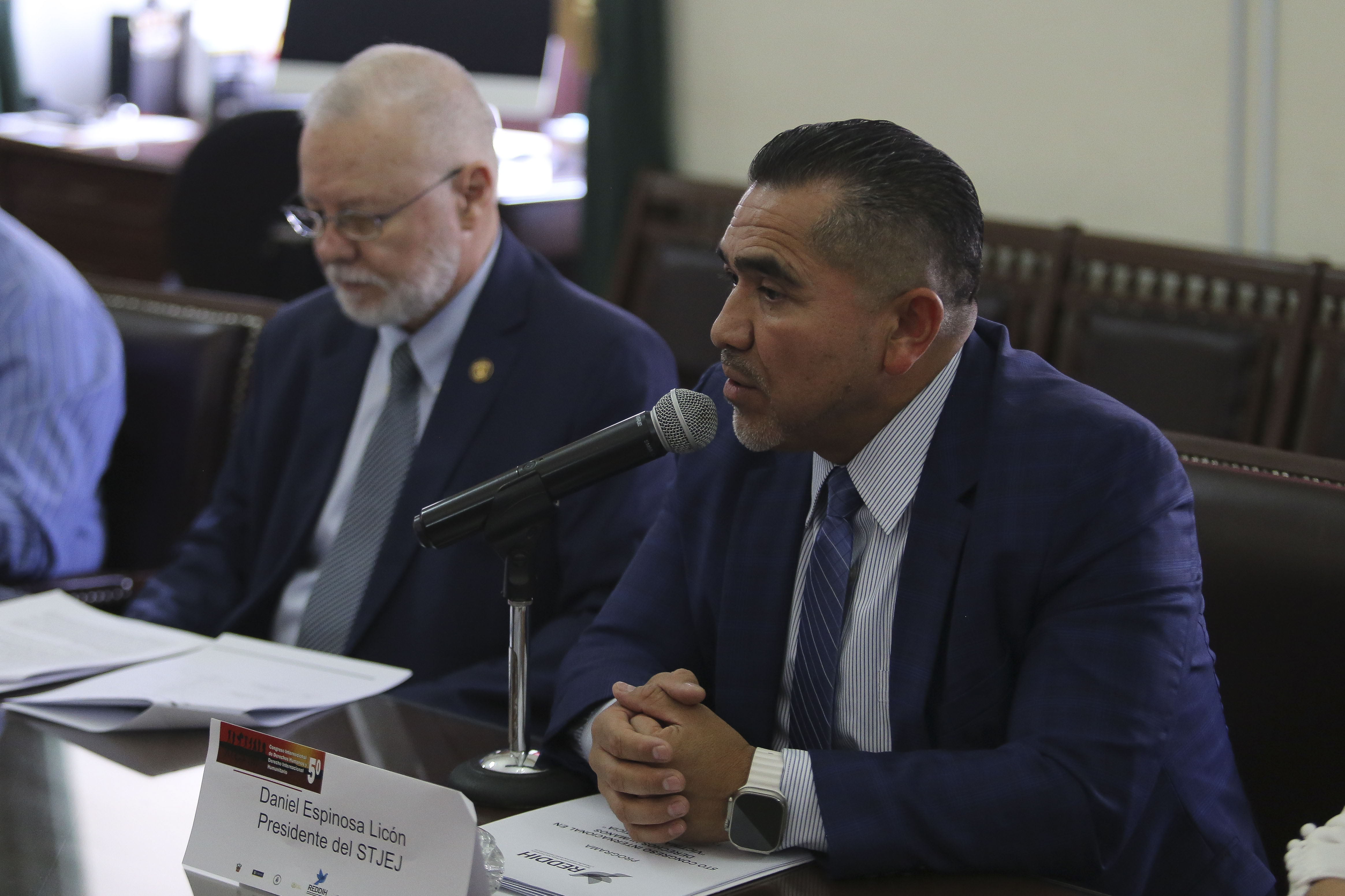 El Magistrado presidente del STJEJ, doctor Daniel Espinoza Lincón, agradeció a la REDDIH por adoptar como sede el recinto y proponer temas de gran impacto para comprender lo que ocurre en materia de derechos humanos desde la perspectiva de las víctimas; y destacó que los eventos apoyarán la búsqueda de la justicia dentro de un proceso equilibrado con principios que generen la igualdad.