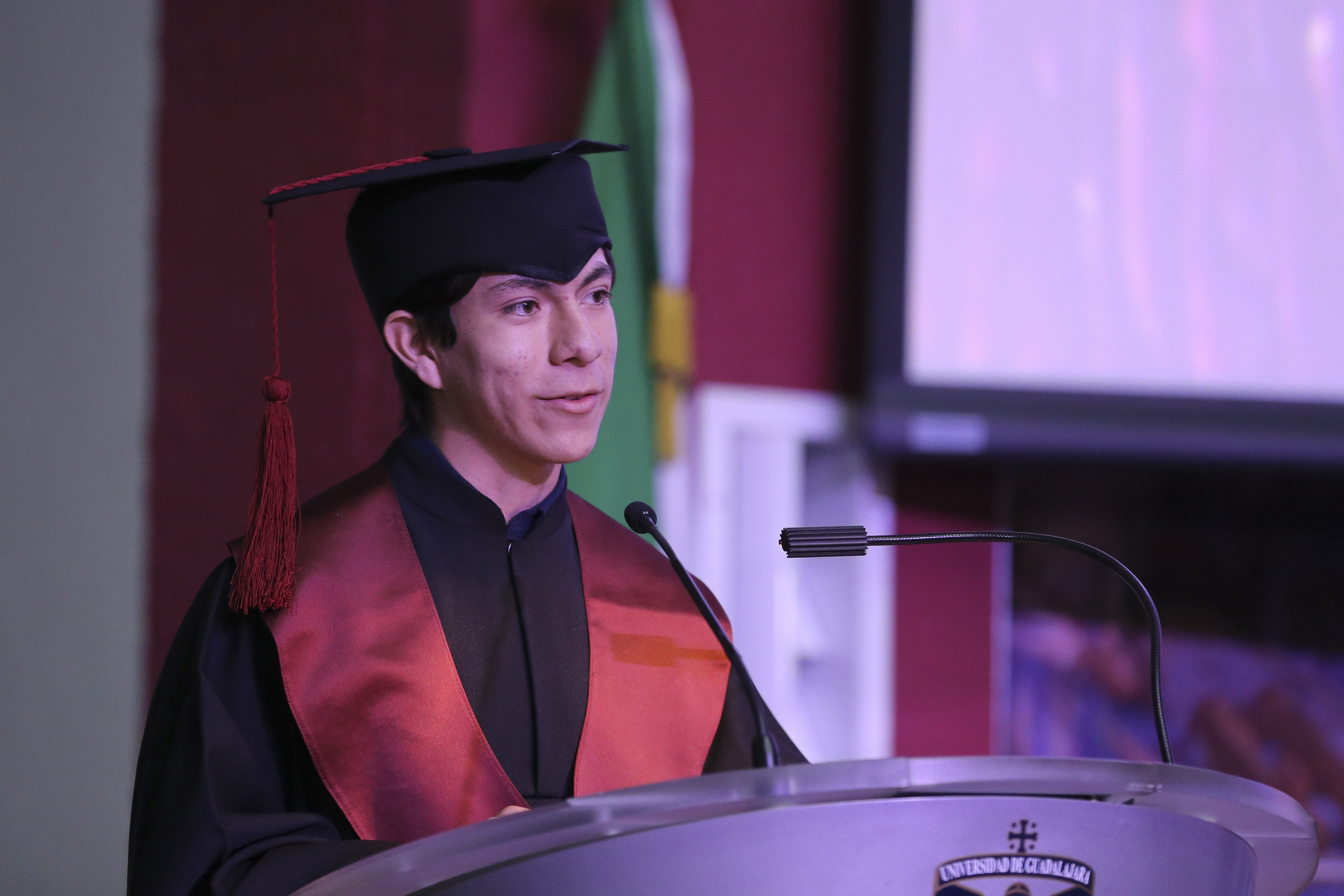 En representación de la comunidad estudiantil, Edgar Pérez Laureano expresó que el viaje llamado preparatoria termina hoy para cada uno de los estudiantes, y fue un viaje con munchas experiencias y retos que, a pesar de las adversidades, no se quedaron varados en el camino, hecho que lo hace sentir orgulloso.