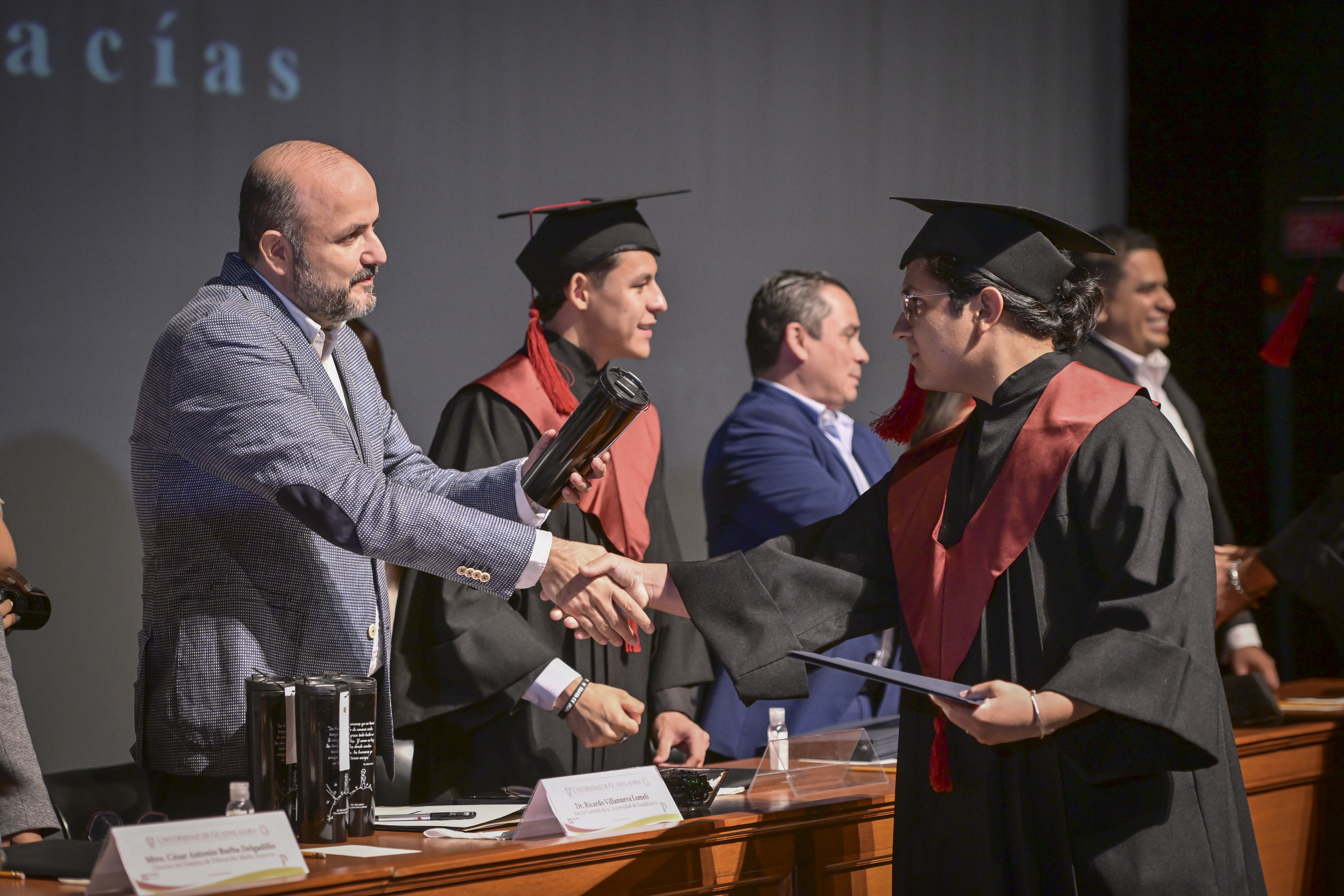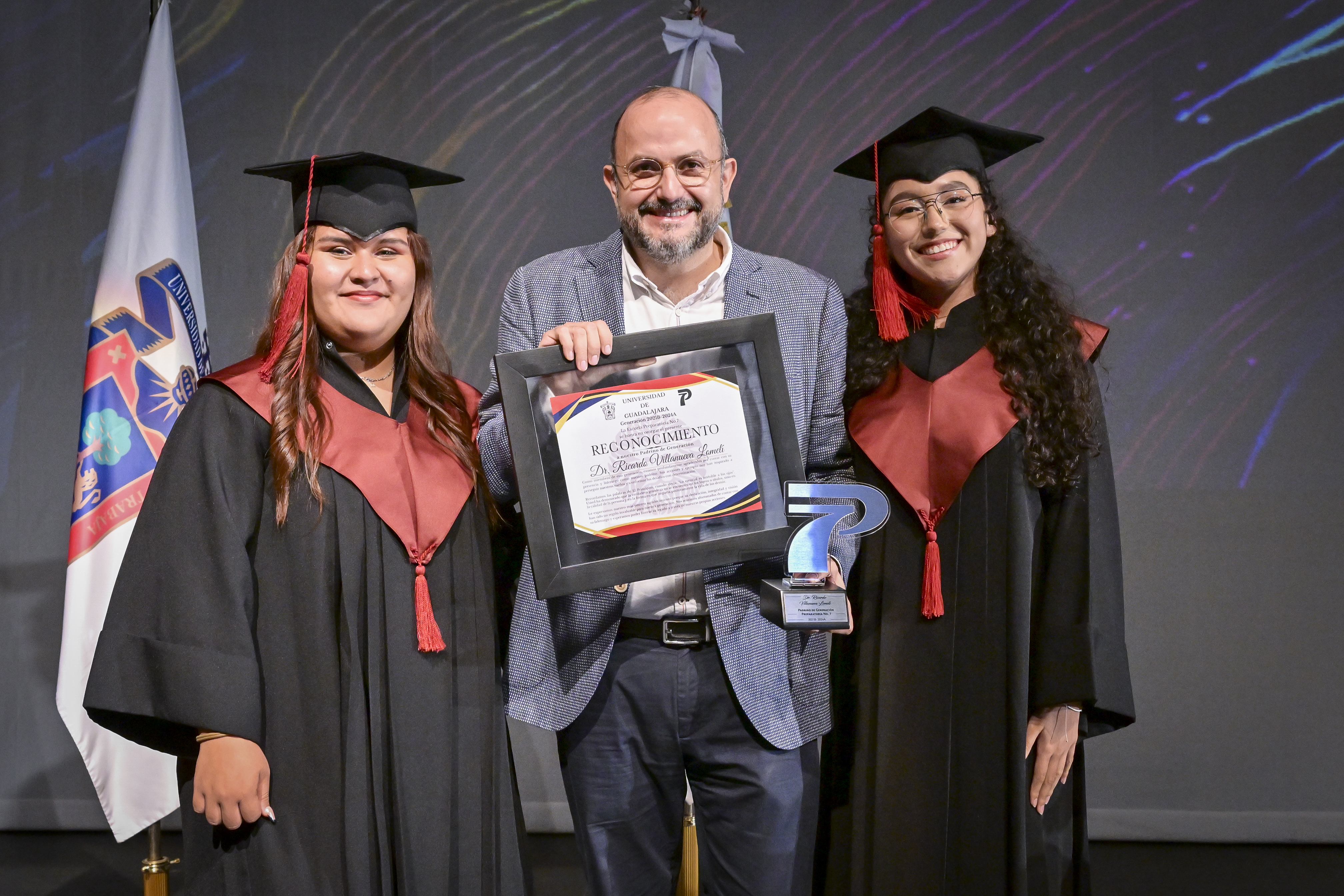 El Director de la Preparatoria 7, doctor Ernesto Gerardo Castellanos Silva, rememoró los momentos compartidos con los graduados: jugar futbolito, videojuegos o encauzar inquietudes académicas y personales; a ellos les aconsejó conseguir sus metas pese a las dificultades.