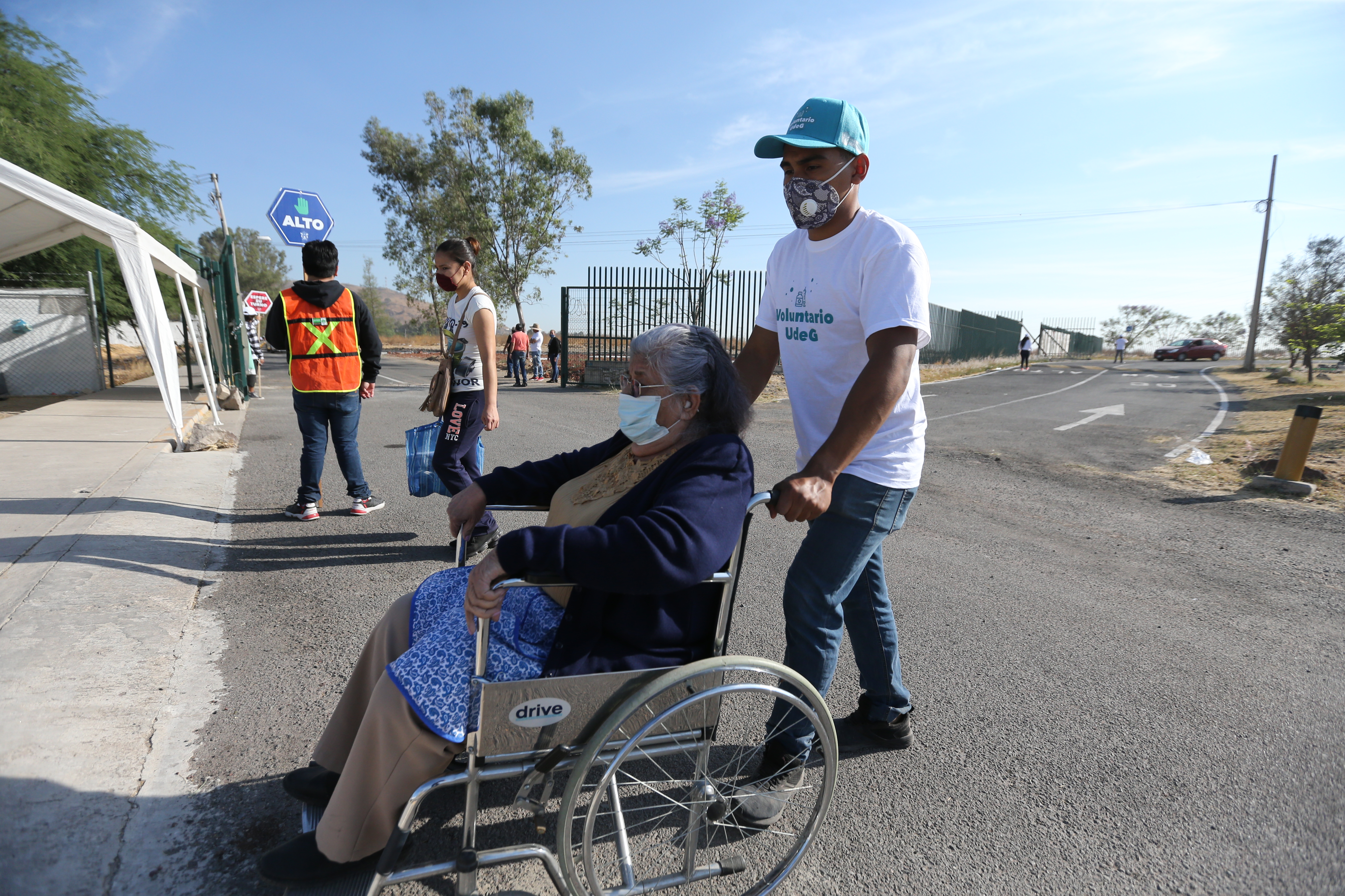 Para los adultos mayores que se les dificultaba la movilidad, se habilitó una zona de espera con asientos, hidratación y sombra. Posteriormente, los voluntarios los transportaban en sillas de ruedas y luego en los carritos de golf. Tanto ellos como quienes llegaban en sus propios vehículos, esperaban en un espacio techado al final del circuito, donde por 30 minutos fueron observados por médicos y enfermeras.