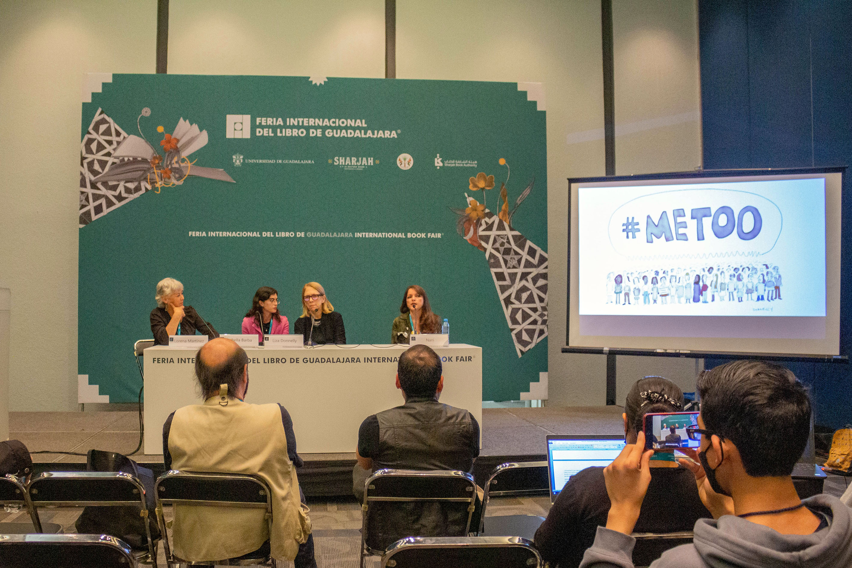 Después de la inauguración se dio paso a la primera mesa, La cultura de la cancelación de los monos en el salón 2 de Expo Guadalajara. Se habló de las carreras y los trabajos de las moneras y escritoras Liza Donnelly y Adriana Mosquera Soto “Nani”.