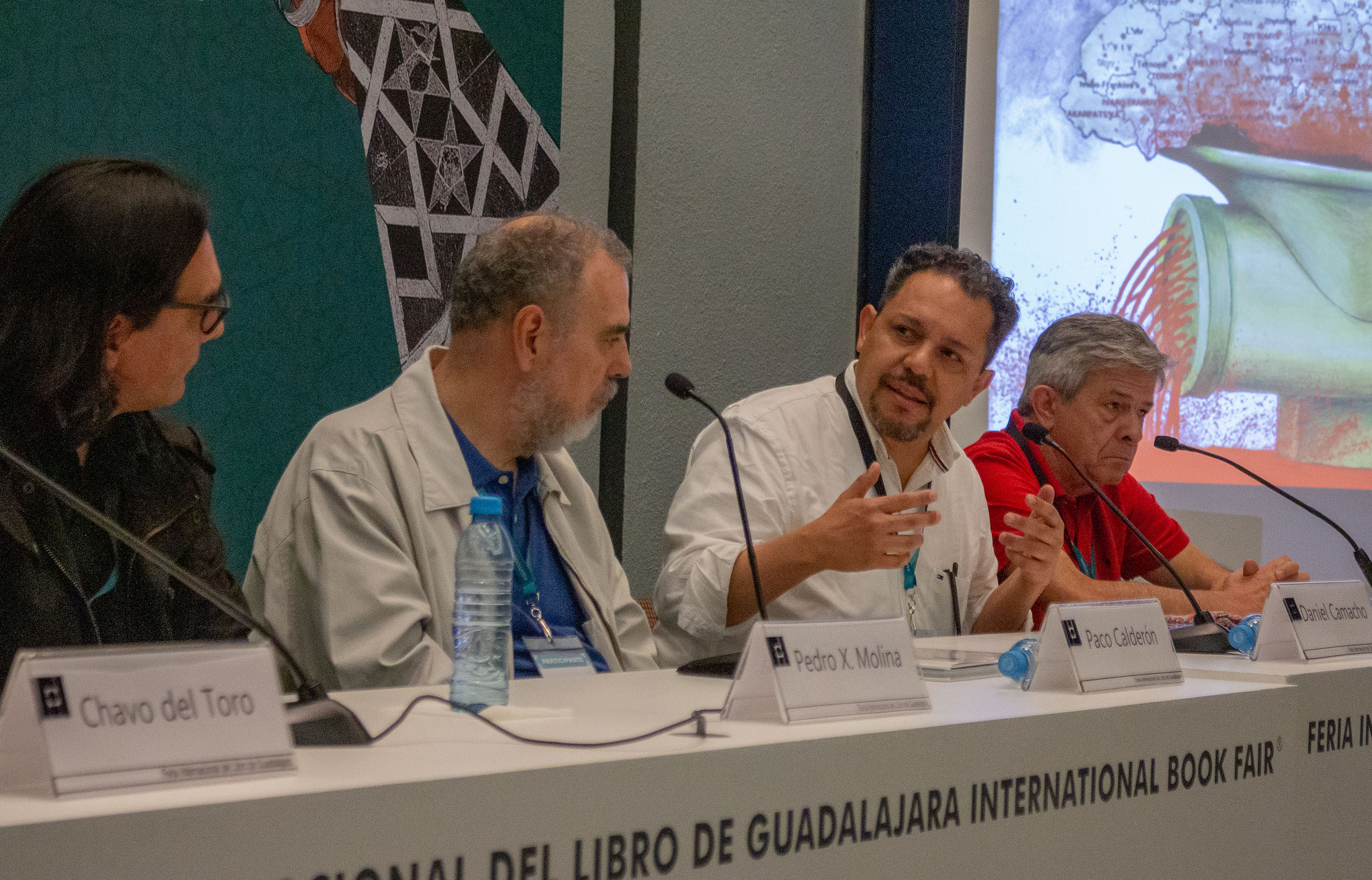 Por otro lado, en la mesa cuatro se dio la charla El cartón editorial frente al reacomodo político, donde participaron los caricaturistas mexicanos Paco Calderón y Daniel Camacho; el caricaturista nicaragüense Pedro X. Molina; el portugués António Antunes, y como moderador, Chavo del Toro.