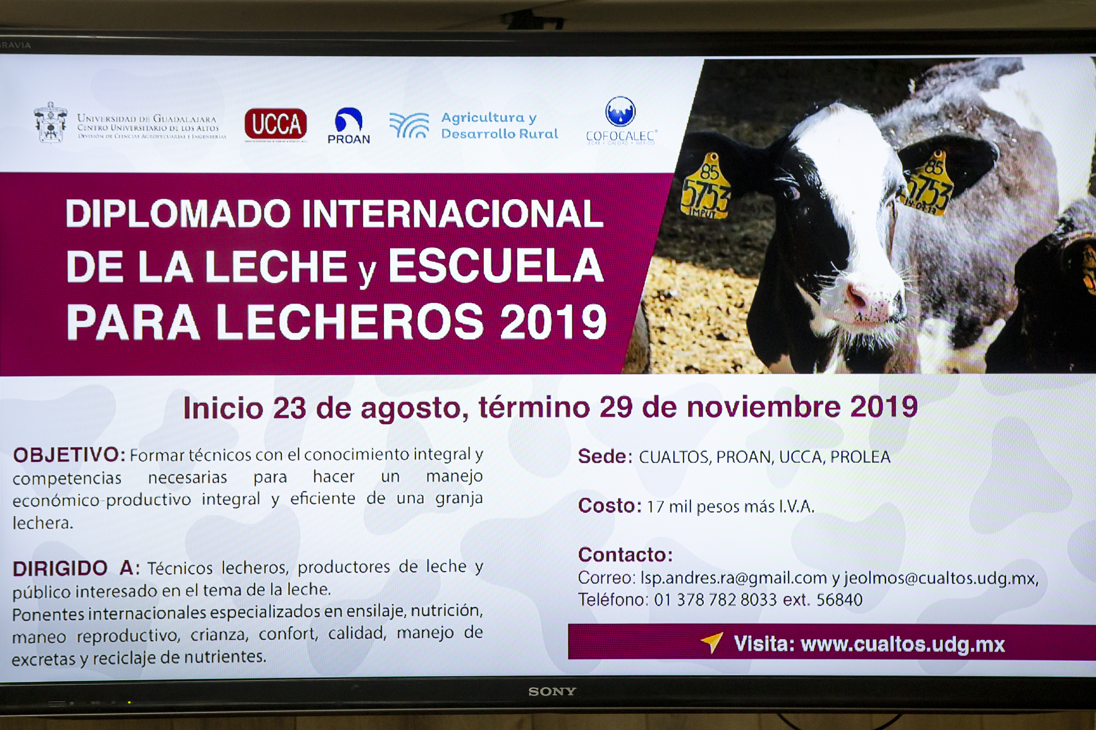 El diplomado y la escuela son organizados por la UdeG, en coordinación con la Secretaría de Agricultura y Desarrollo Rural Jalisco (Sader), el Centro Nacional de Recursos Genéticos (CNRG), la sociedad Proteína Animal SA de CV (Proan), la Unión de Cooperativas de Consumo Alteñas (UCCA) y el Consejo para el Fomento de la Calidad de la Leche y sus Derivados, AC (Cofocalec).