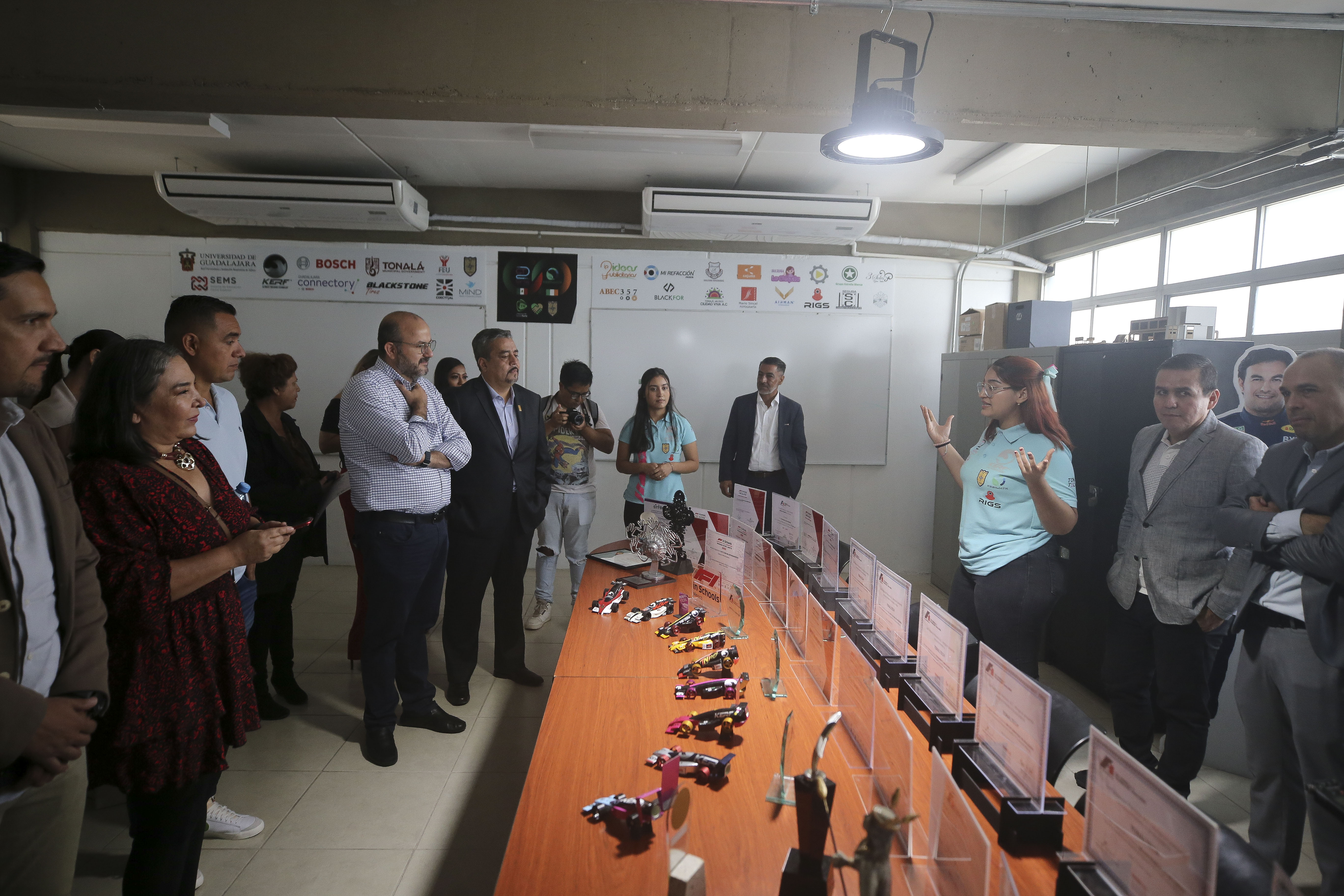 En su visita, Villanueva Lomelí también inauguró el FabLab Escudería Tonaltech II, un espacio en el que las y los preparatorianos pueden construir vehículos a escala para poner a prueba su funcionalidad en simuladores.