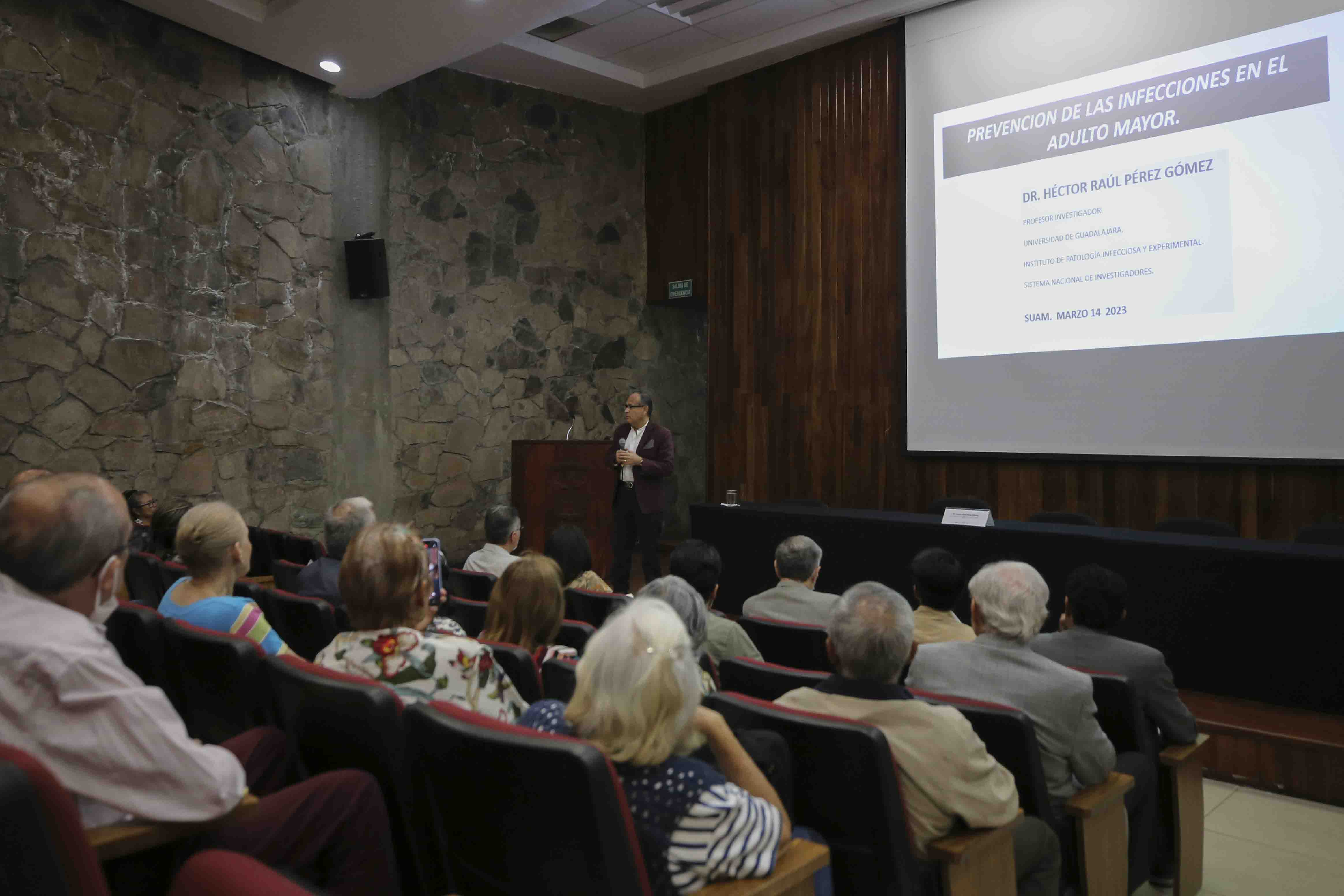 Como parte de las actividades de la celebración, el doctor Héctor Raúl Pérez Gómez, del Instituto de Patología Infecciosa y Experimental de la UdeG, impartió la conferencia “Prevención de las infecciones en el adulto mayor”, en la que explicó que el bienestar de los adultos mayores es una responsabilidad de todos.