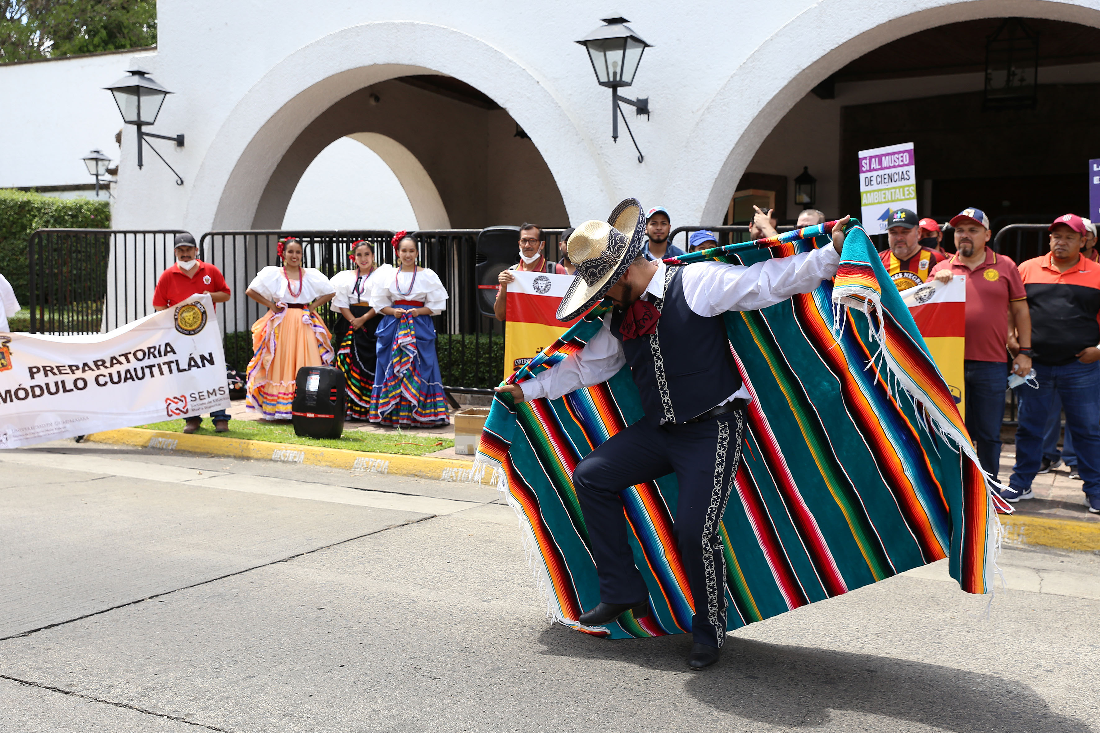 Como parte de la manifestación, un grupo de estudiantes bailó estampas tradicionales folclóricas del municipio, para demostrar el talento que se ha desarrollado desde las aulas de la Preparatoria Regional de Casimiro Castillo.