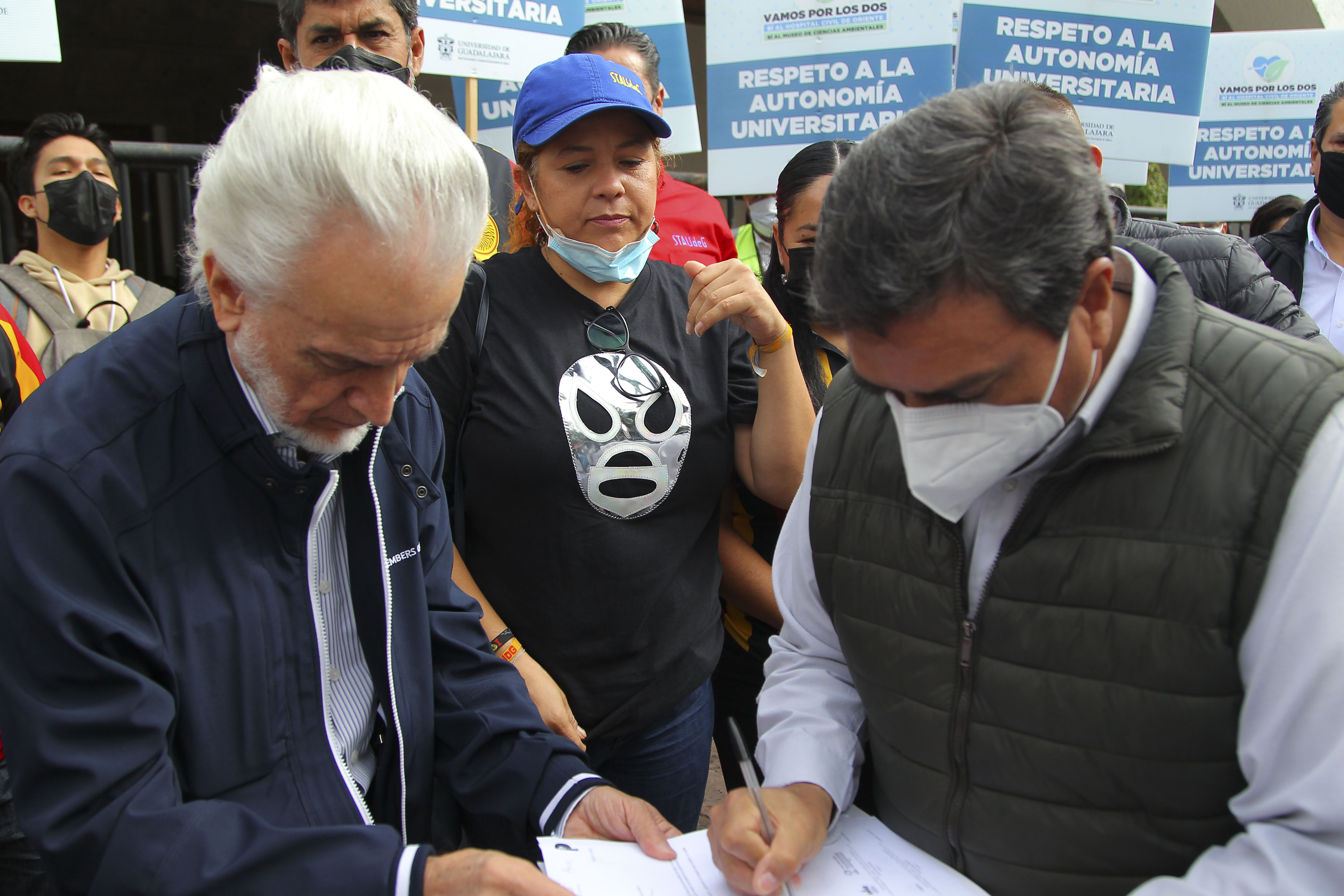 El Secretario General del Sindicato de Trabajadores Académicos de la Universidad de Guadalajara (STAUdeG), licenciado Jesús Palafox Yáñez, dijo que “esta marcha es por dos cosas: 1. Rescatar la dignidad y el respeto que se le debe de tener a la UdeG; y 2. Recuperar el Estado de derecho en Jalisco”.