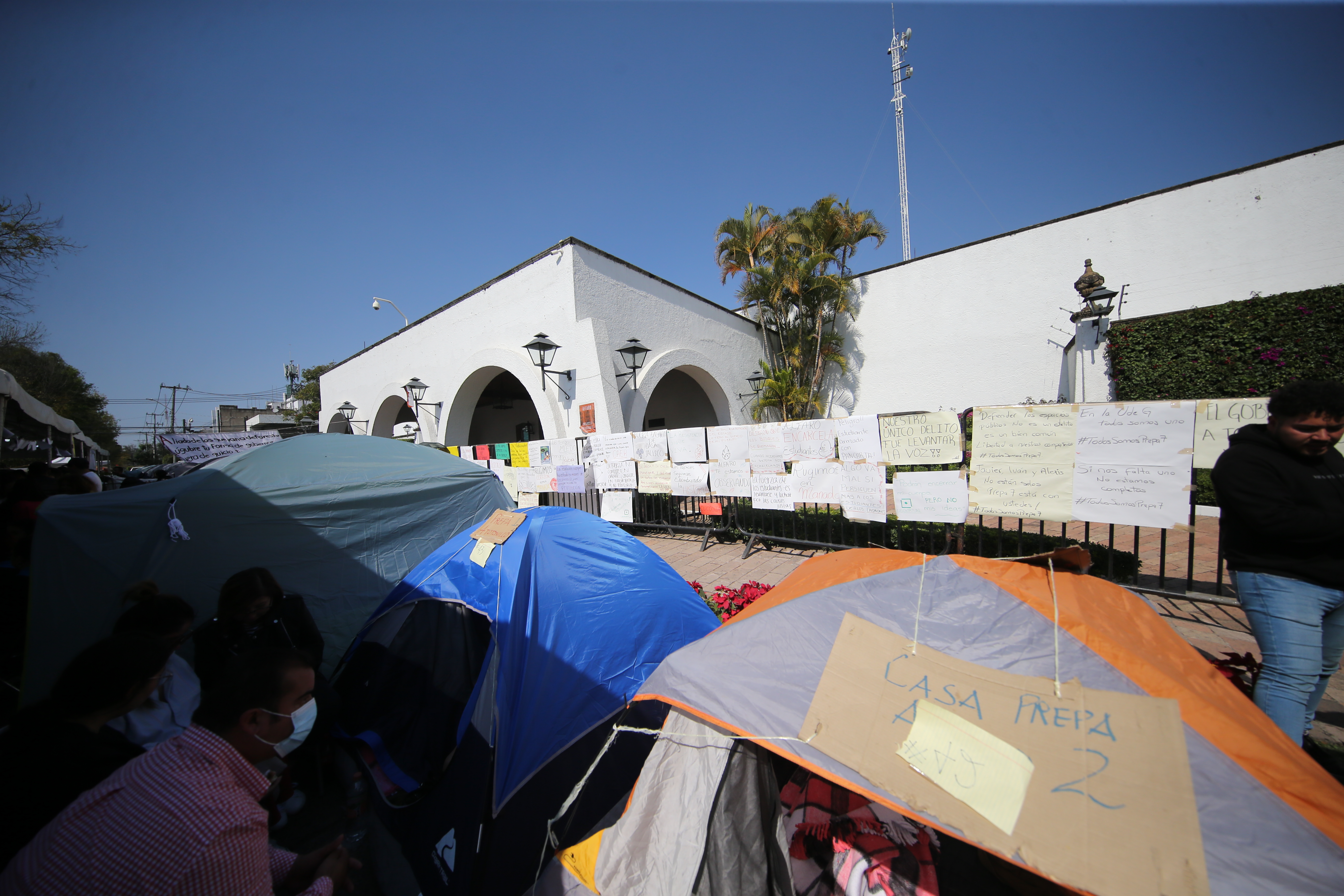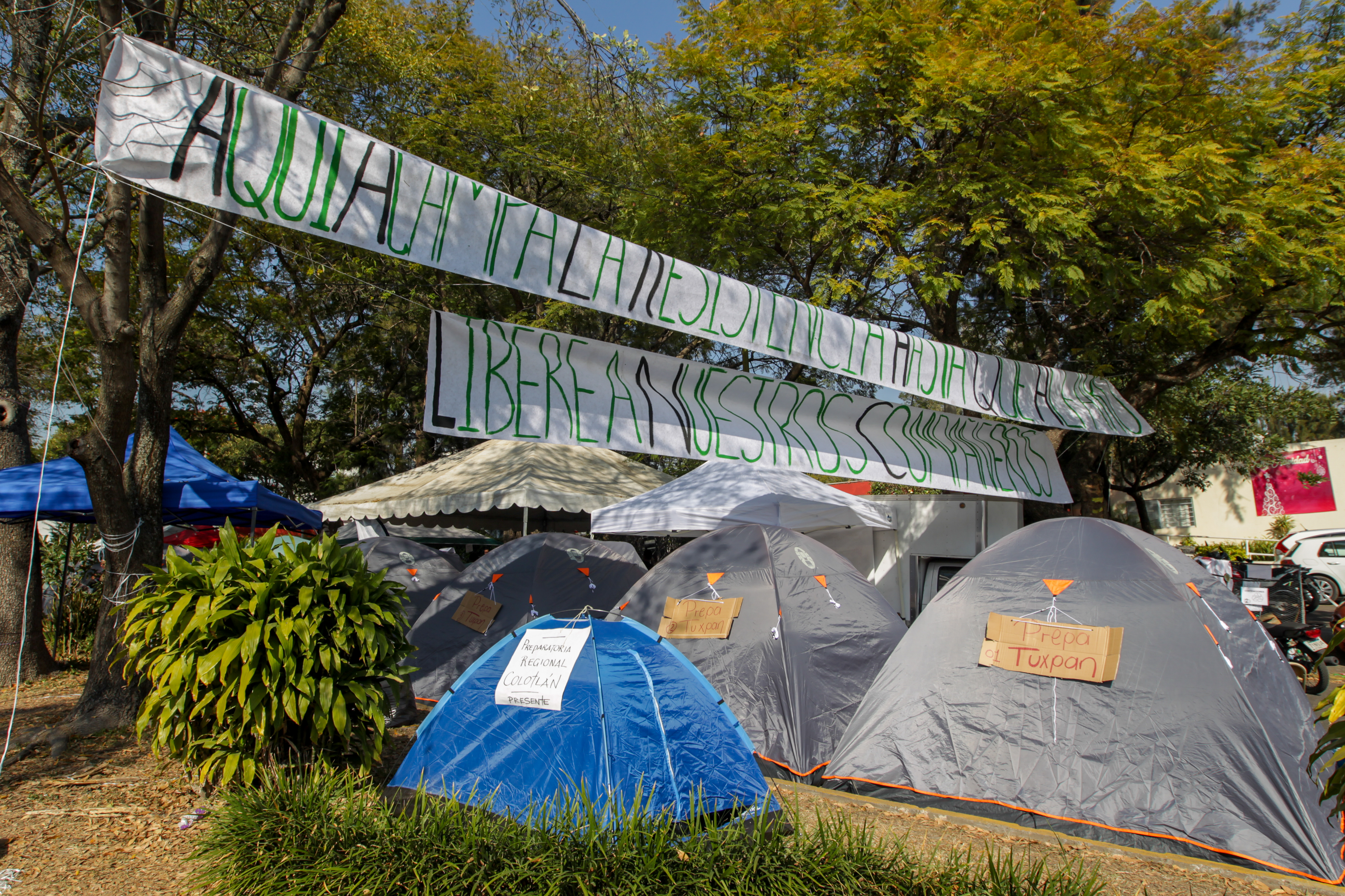 Desde el pasado jueves 5 de enero, 275 miembros de la comunidad universitaria duermen en 92 casas de campaña, y donde permanecerán hasta la liberación de los estudiantes acusados y bajo prisión preventiva oficiosa en el penal de Puente Grande.