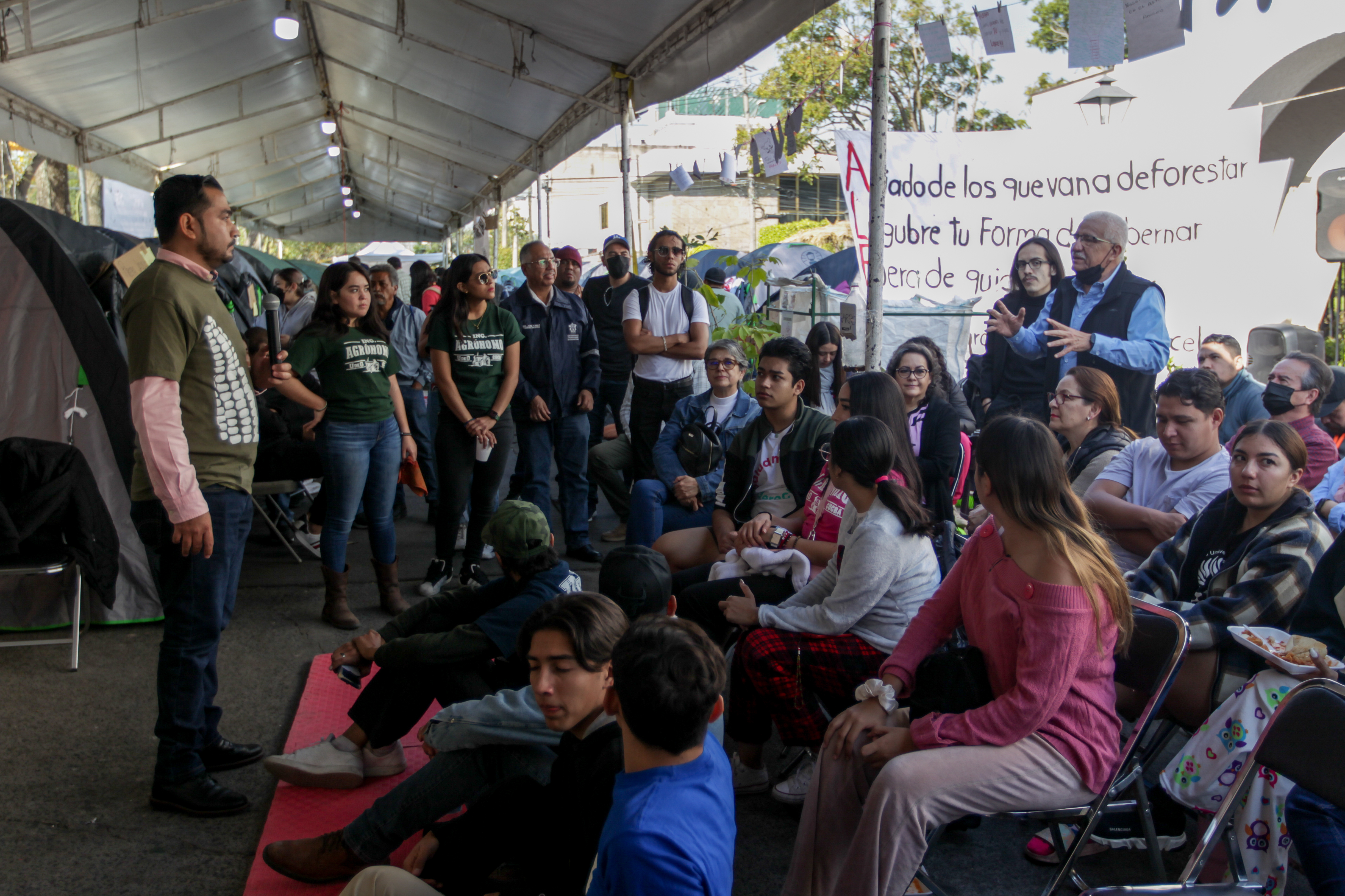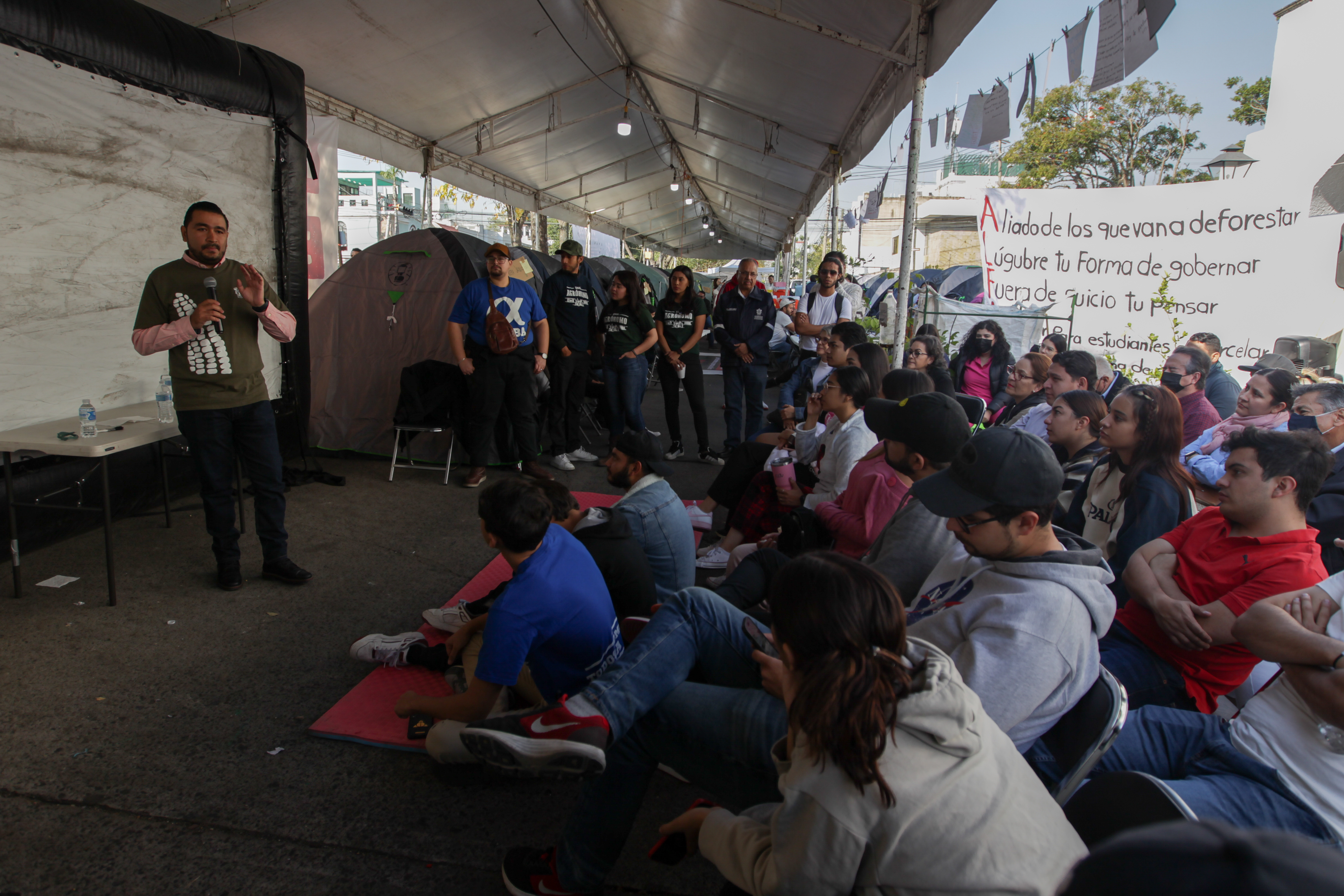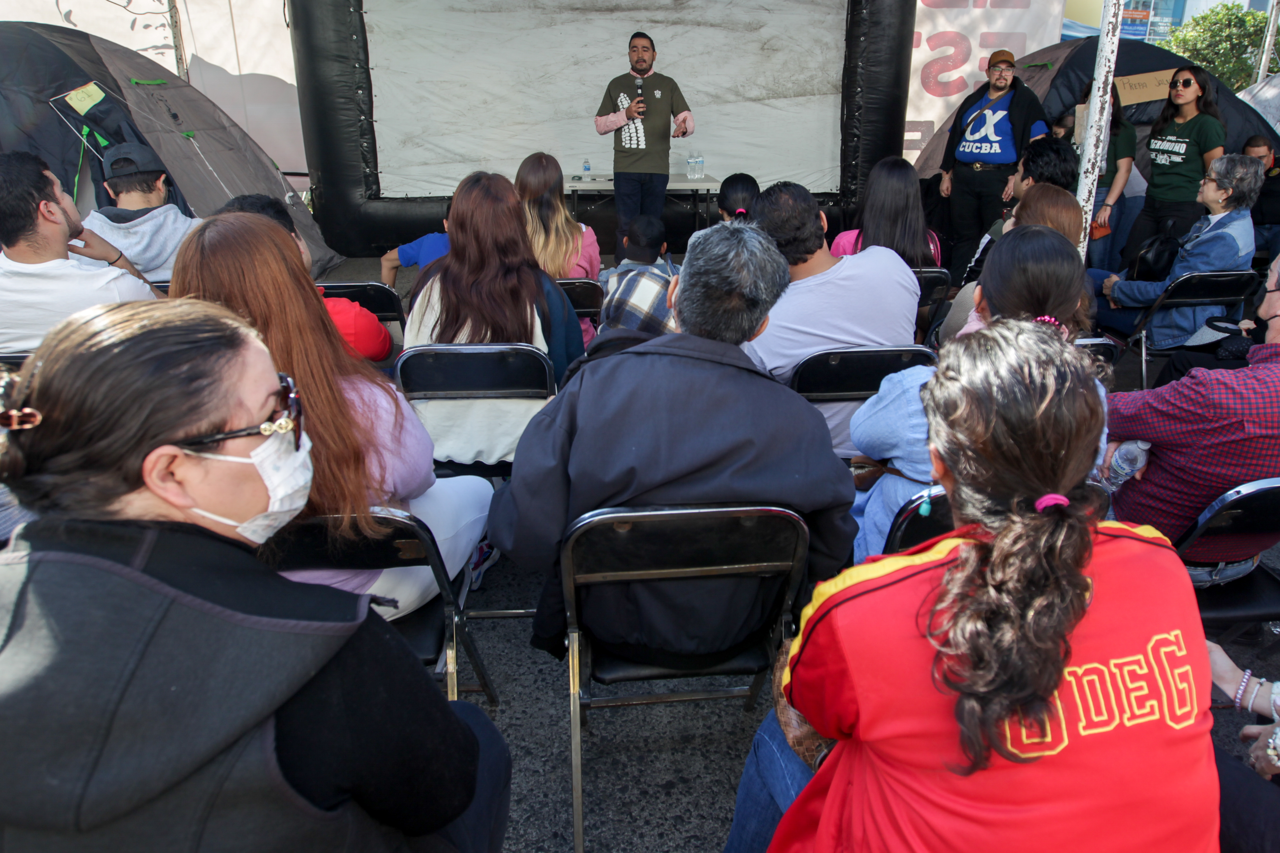 Con charlas en campamento afuera de Casa Jalisco, CUCBA apoya a estudiantes presos encarcelados