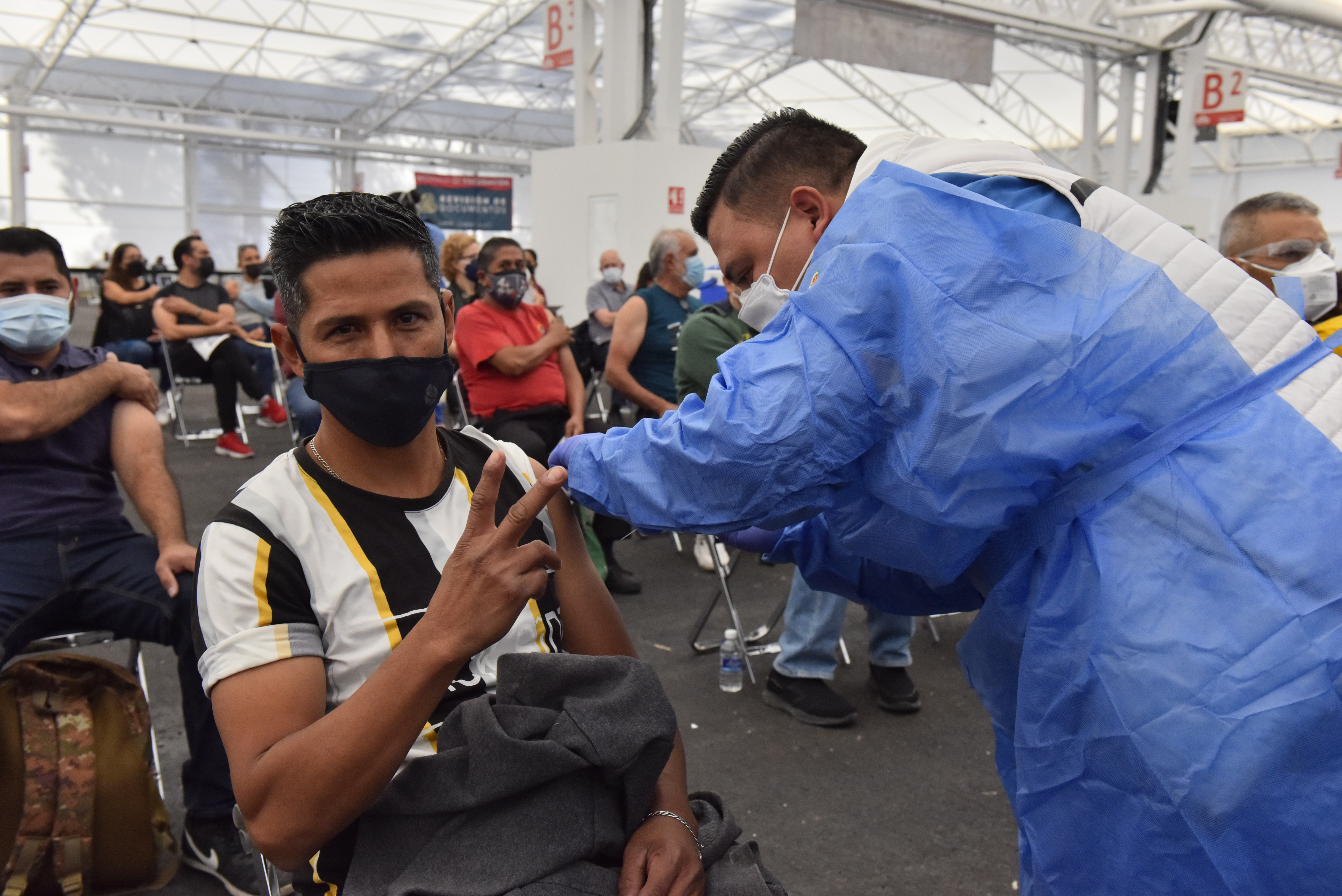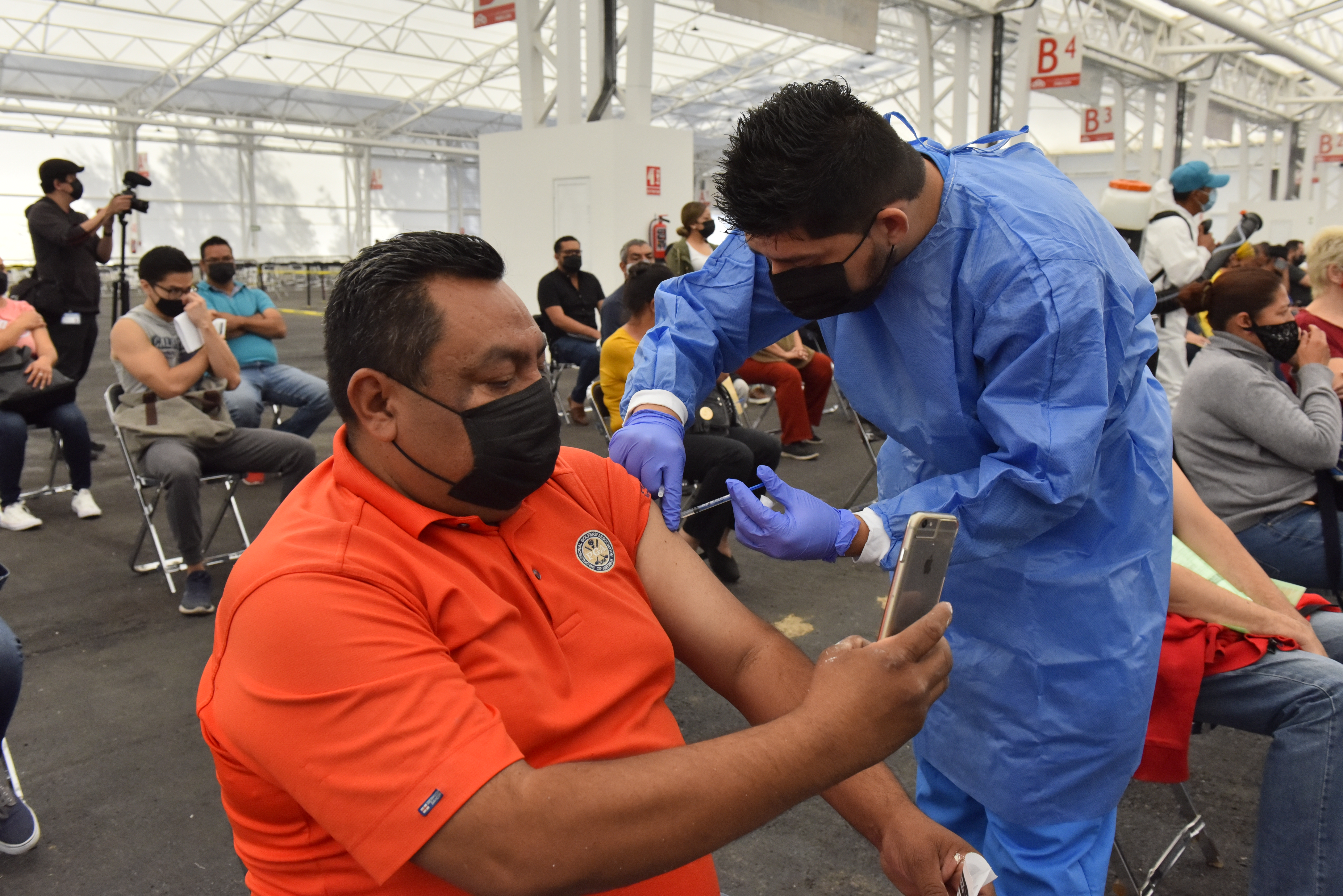 Carlos Hernández, trabajador administrativo de la Delegación Regional 2 de la Secretaría de Educación Jalisco destacó la buena organización del módulo y la atención del personal, que fue diferente a la primera vez que se vacunaron en el Auditorio Benito Juárez en mayo del año pasado.