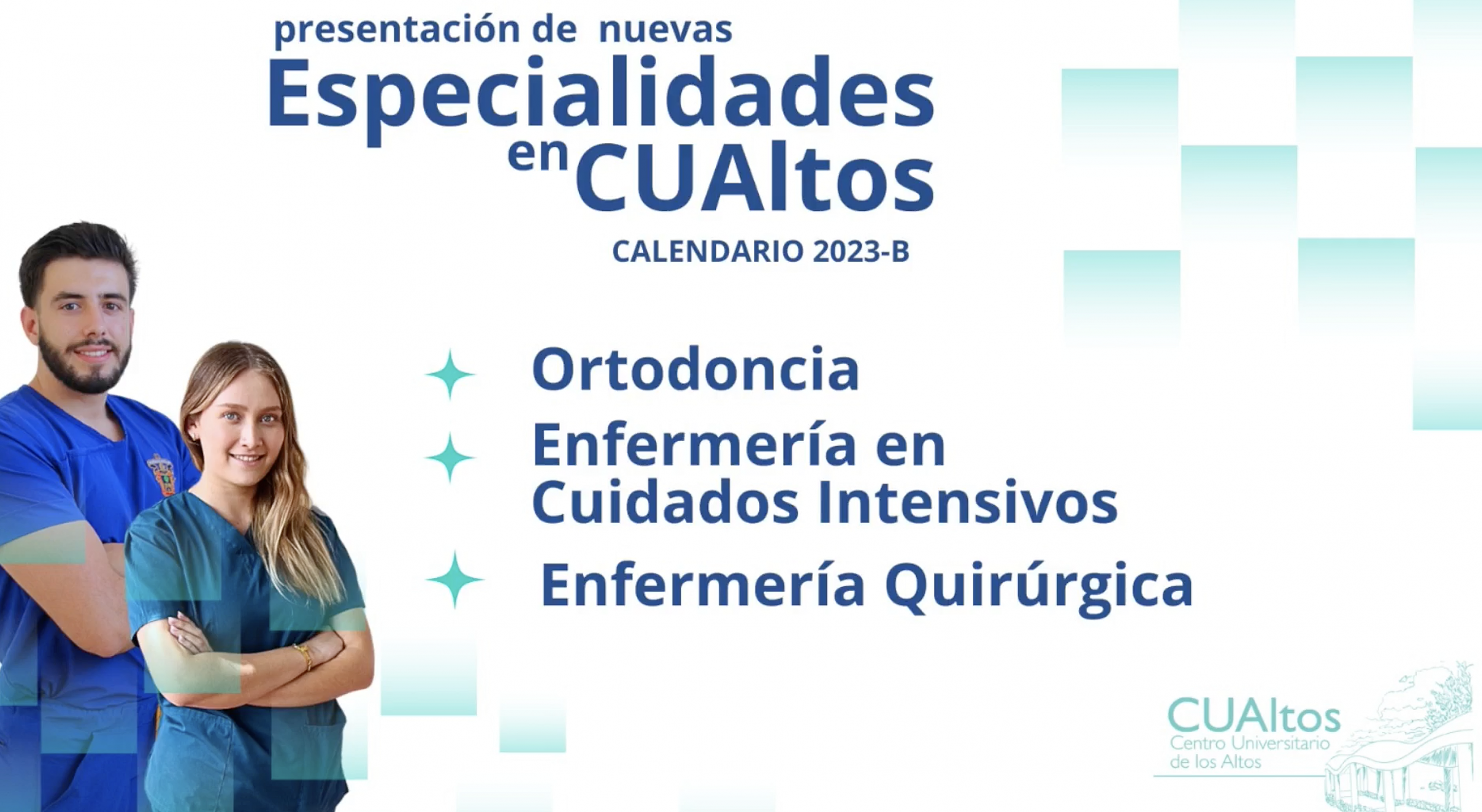 Ortodoncia, Enfermería en cuidados intensivos y Enfermería quirúrgica son las nuevas especialidades que ofrecerá, a partir del calendario 2023-B, el Centro Universitario de los Altos (CUAltos), de la Universidad de Guadalajara (UdeG).