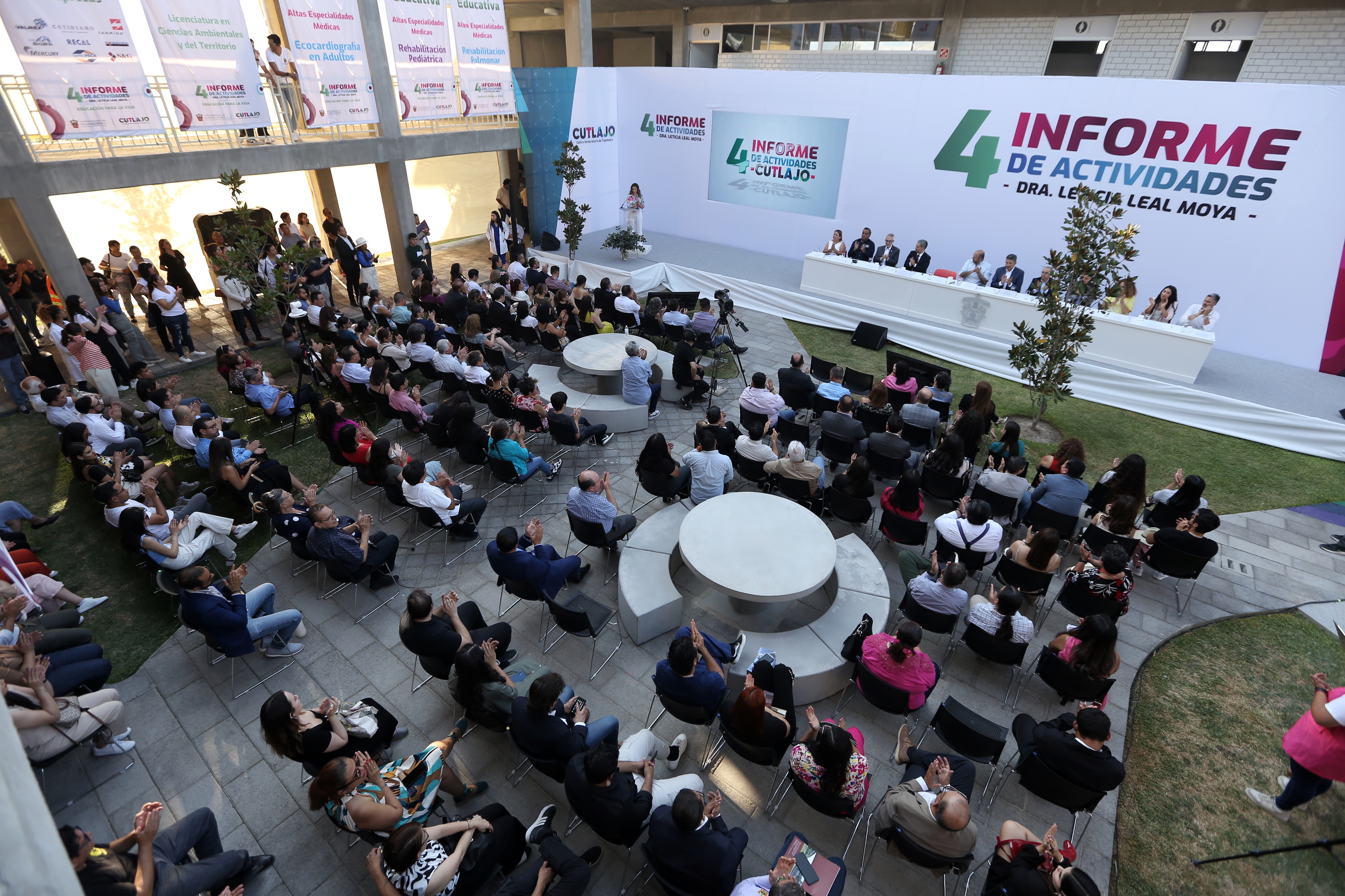 Al rendir su cuarto informe de actividades, la doctora Irma Leticia Leal Moya, Rectora del CUTlajomulco, destacó la misión del plantel: Propiciar educación para la vida. “Estoy aquí como portavoz del esfuerzo colectivo de una vibrante comunidad que, día a día, contribuye a la transformación de esta zona sur del Área Metropolitana de Guadalajara”.