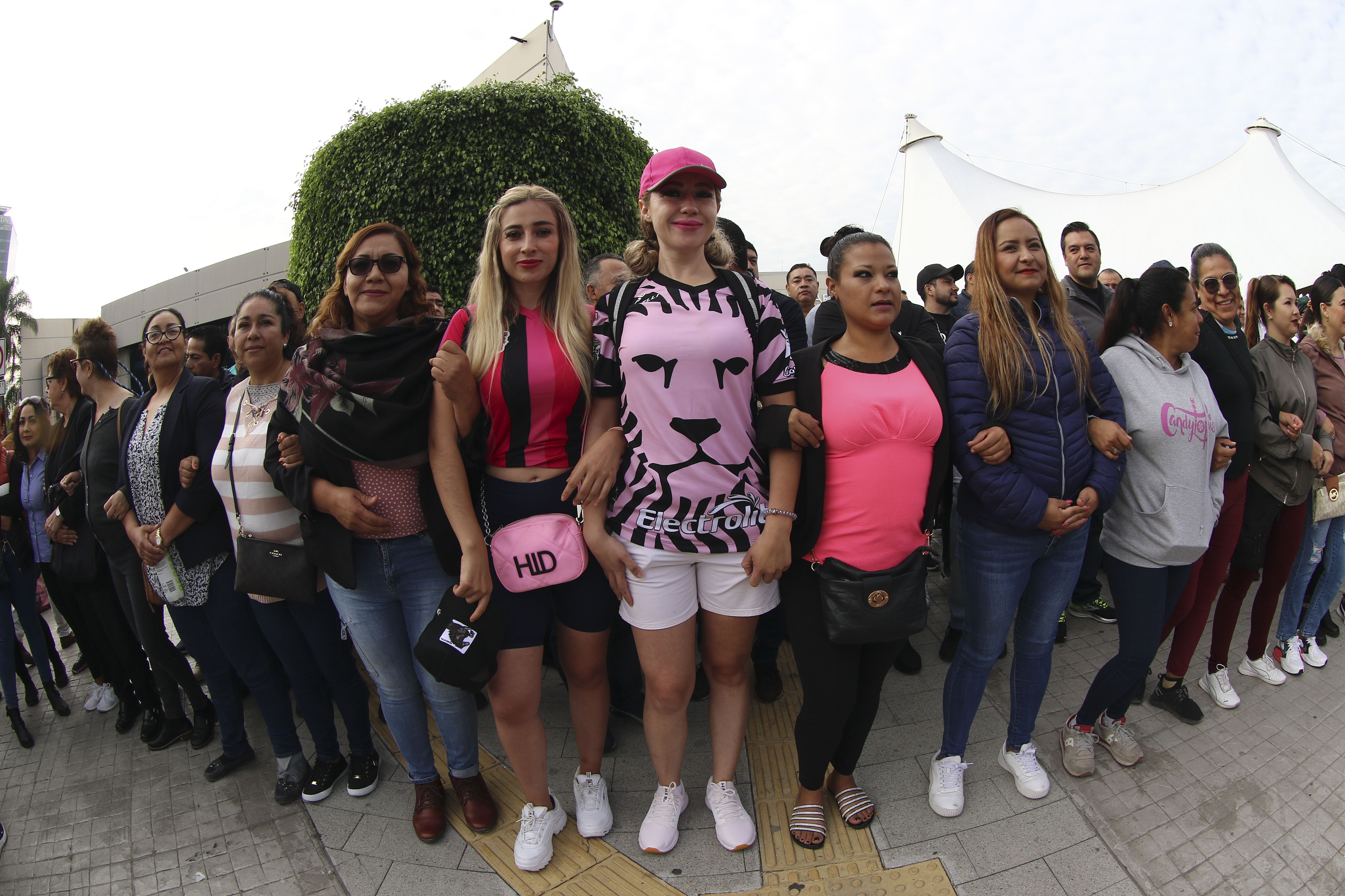 En el muro de personas destacó la presencia de la presidenta de la Federación Estudiantil Universitaria (FEU), Zoé García Romero, académicos y administrativos eslabonados con los brazos para impedir la infiltración de manifestantes.