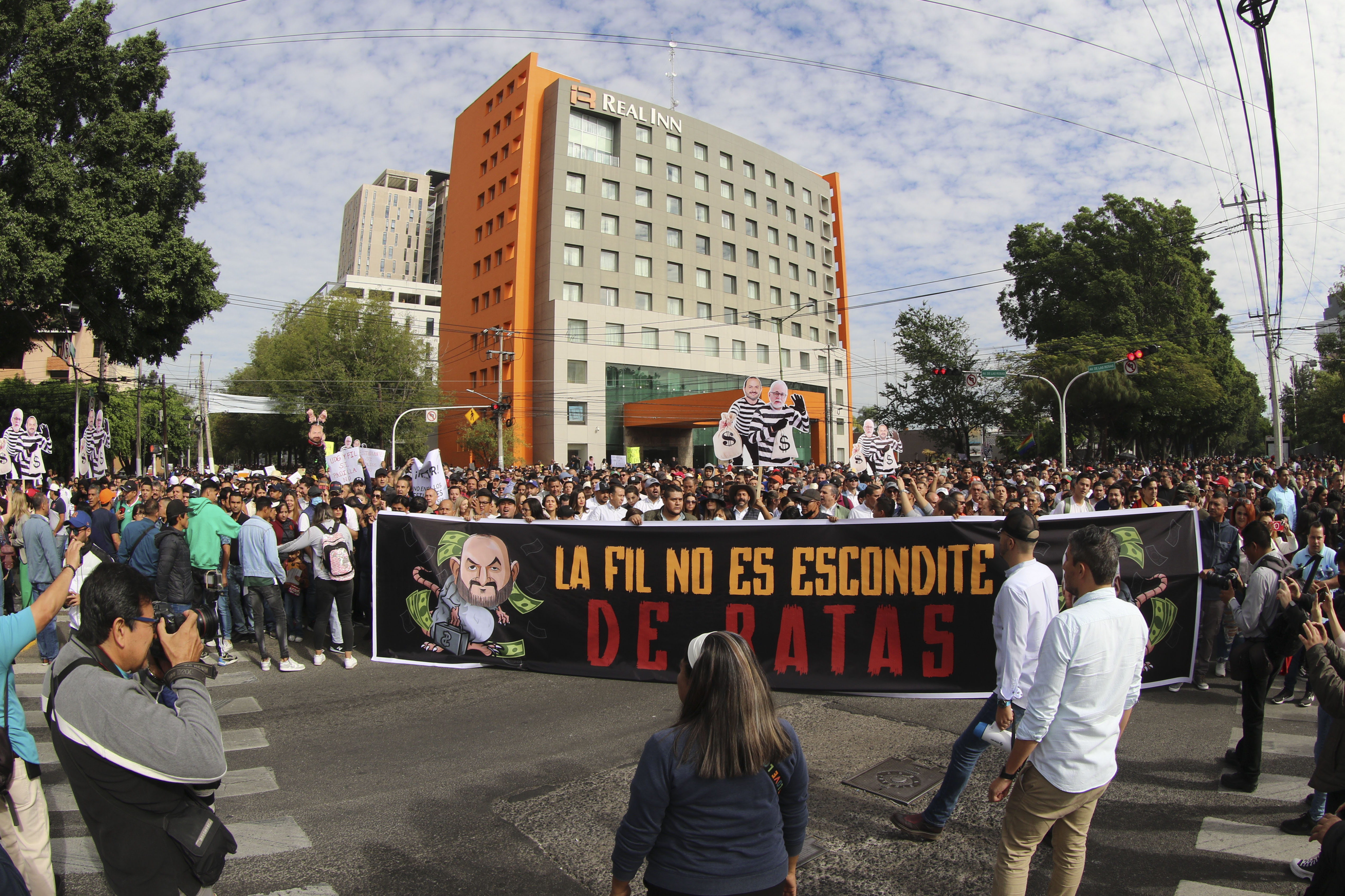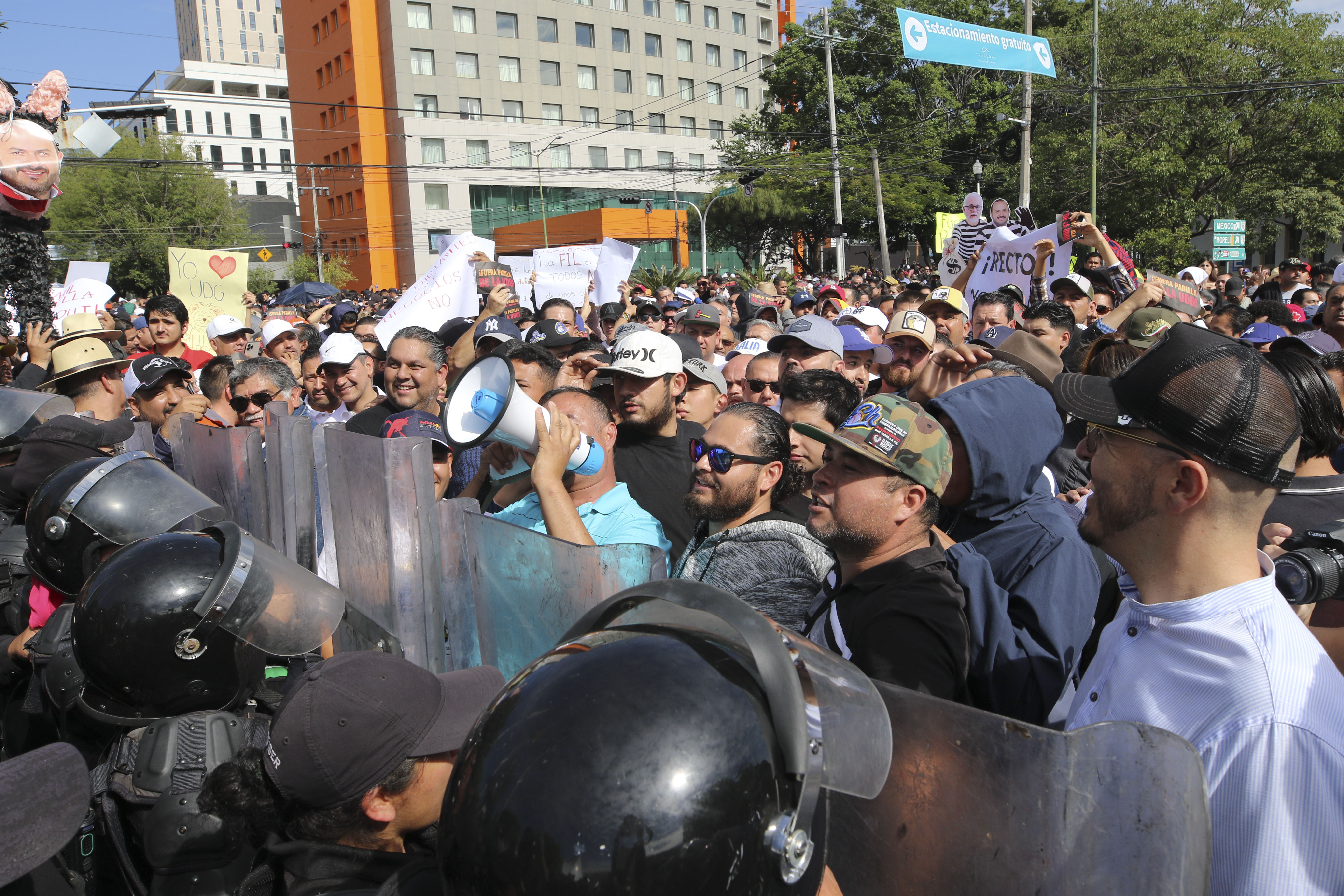 Ante la amenaza del gobierno de Jalisco para boicotear la FIL Guadalajara, la comunidad universitaria resguardó con vallas humanas el inmueble de la Expo Guadalajara para impedir irrupciones en la feria; aunque el saldo fue blanco, la Unidad de Protección Civil de la UdeG reportó agresiones verbales y conatos de bronca.