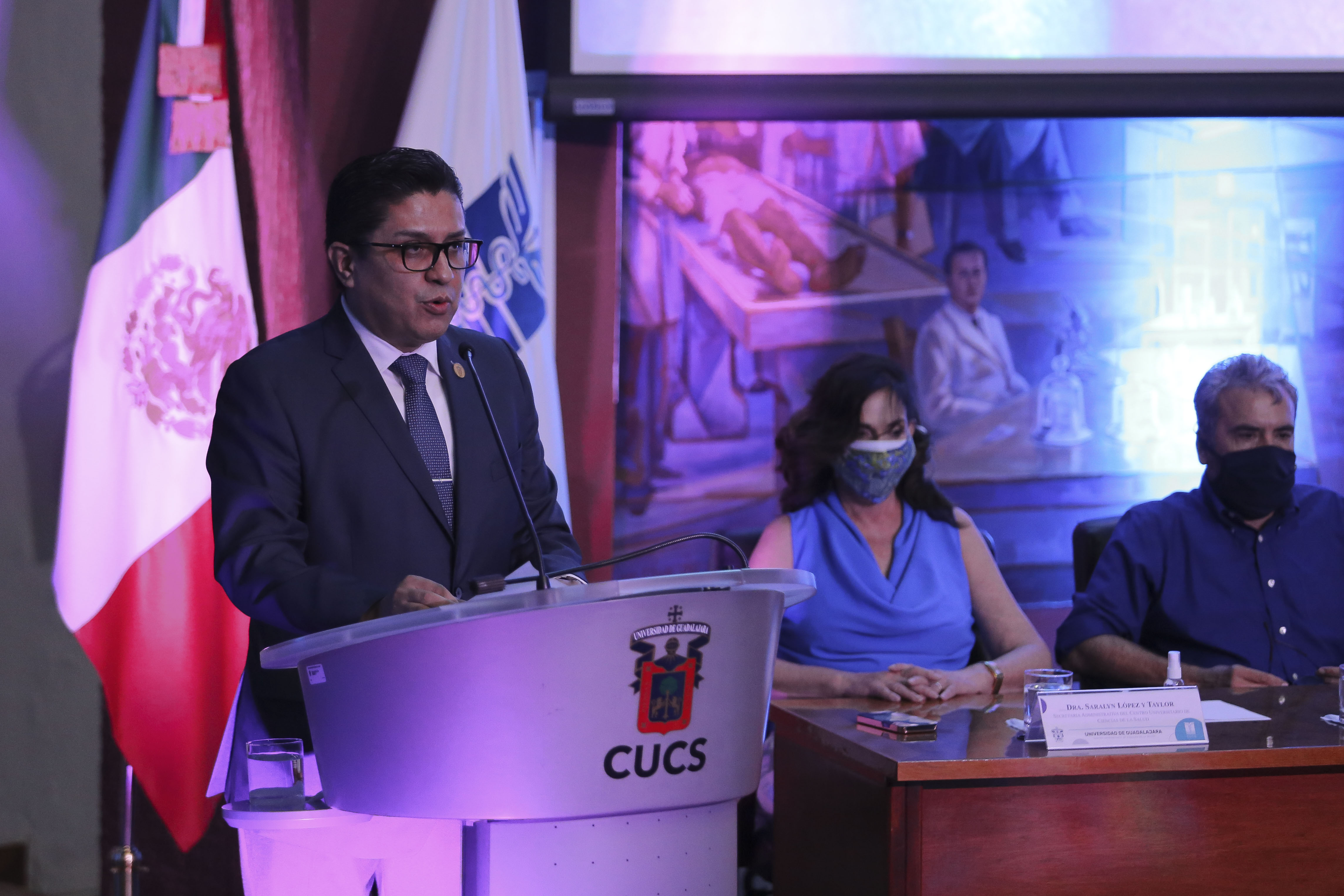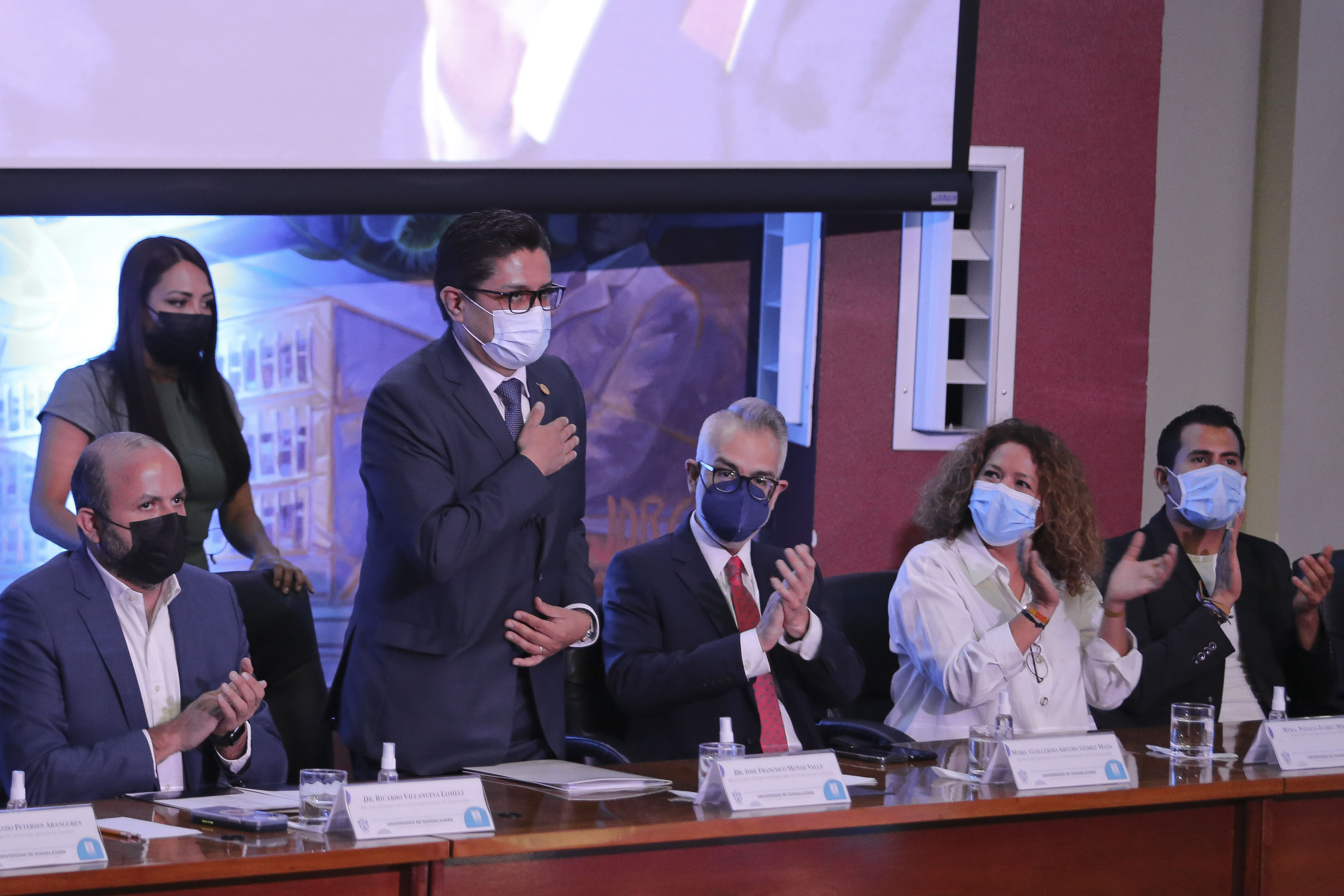 El Rector General de la UdeG, Ricardo Villanueva Lomelí, destacó el trabajo de la comunidad médica, científica y universitaria del CUCS, que calificó como héroes de la pandemia.