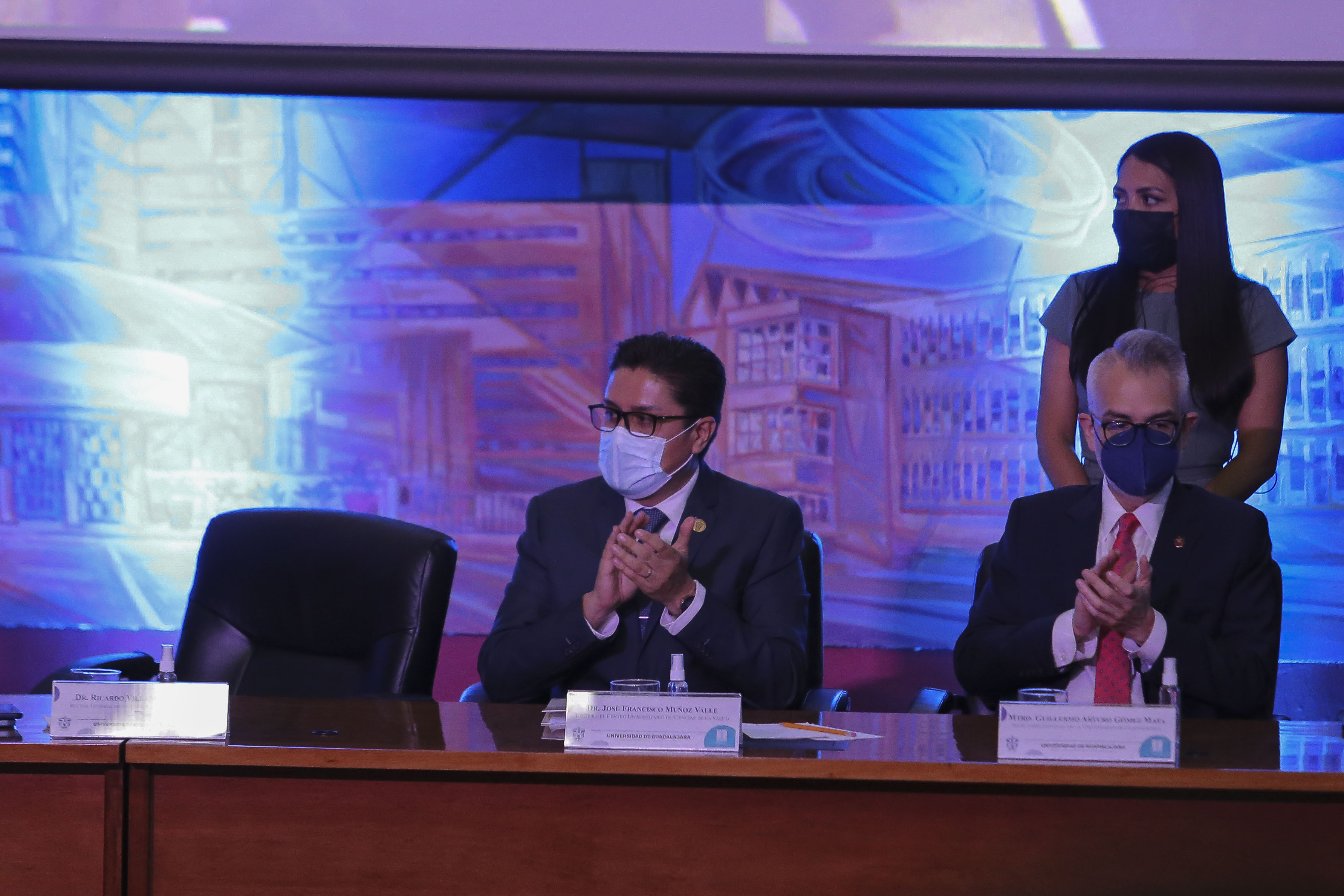 Al tercer informe acudieron también: el Vicerrector Ejecutivo, doctor Héctor Raúl Solís Gadea; el Secretario General, maestro Guillermo Gómez Mata; el doctor Fernando Petersen Aranguren, Secretario de Salud del Gobierno del Estado, y la maestra Anna Bárbara Casillas, Coordinadora General Estratégica de Desarrollo Social del Gobierno del Estado.