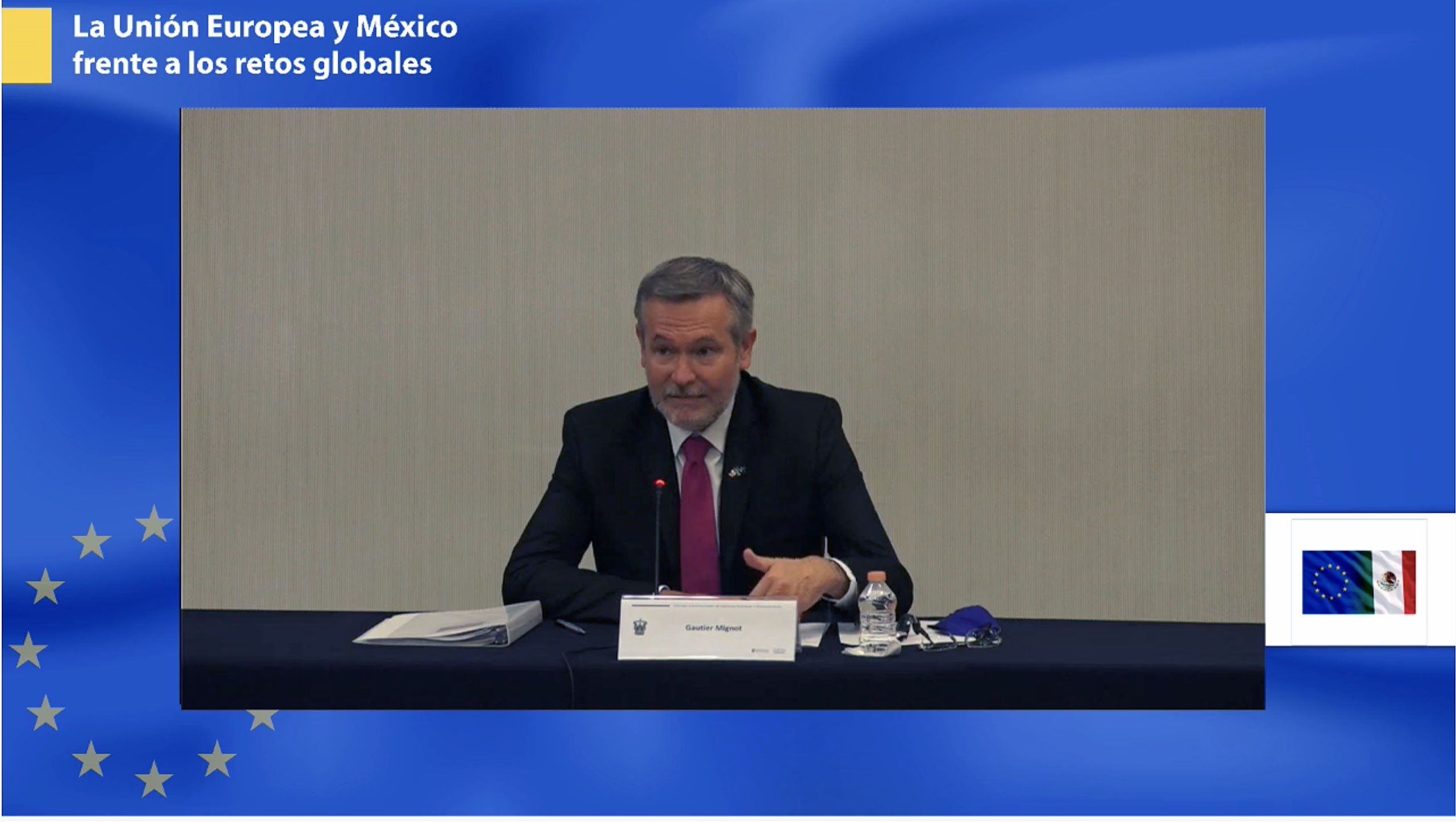 Gautier Mignot recordó que “la Unión Europea se compone de 27 países para ejercer parte de su soberanía y volver a conseguirla tratando temas en común; esto, de forma democrática, por un parlamento elegido por los ciudadanos. Además, existen 140 delegaciones de la Unión Europea; una de ellas está en México y trabajamos mucho de la mano con este país”.