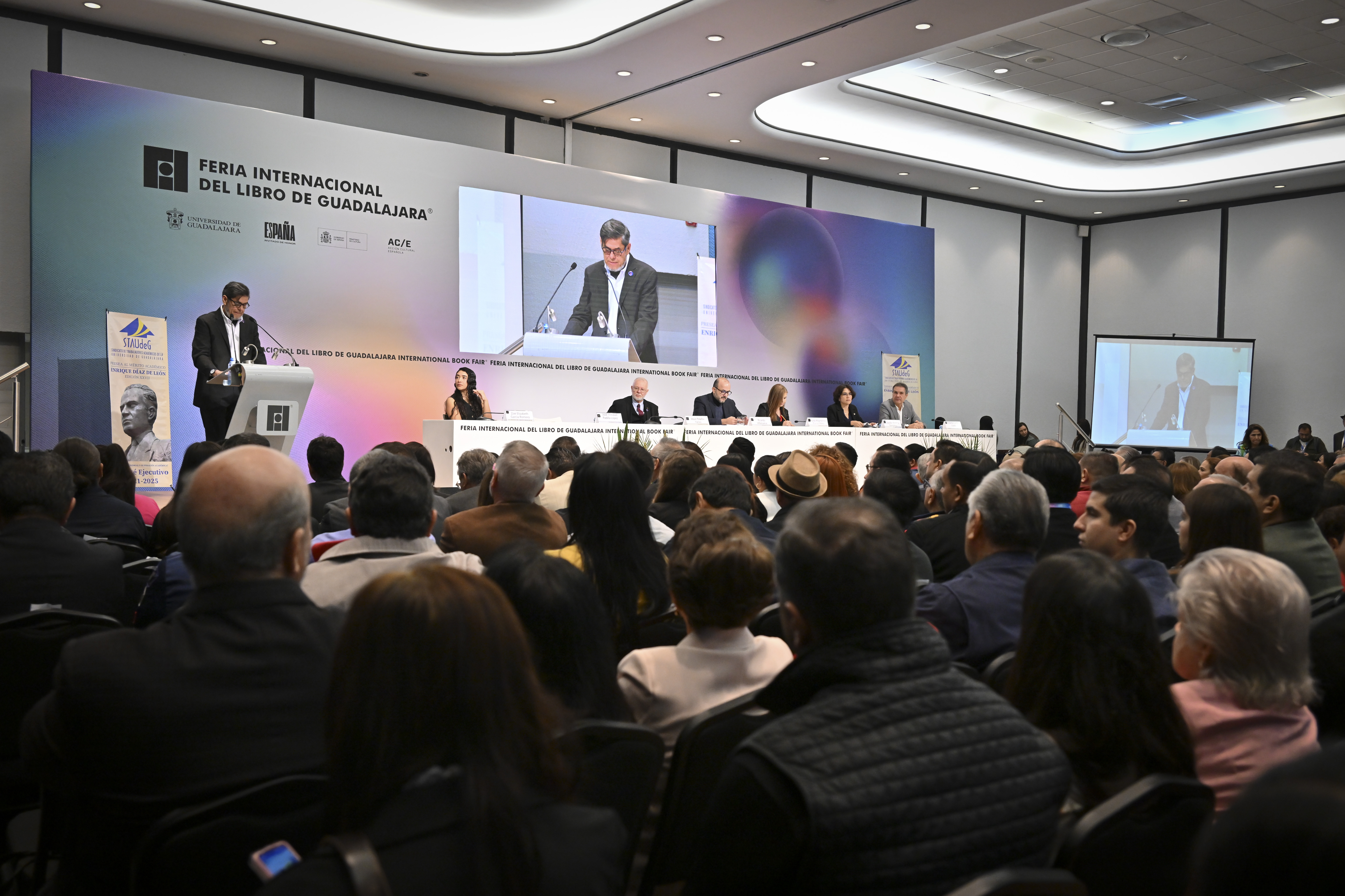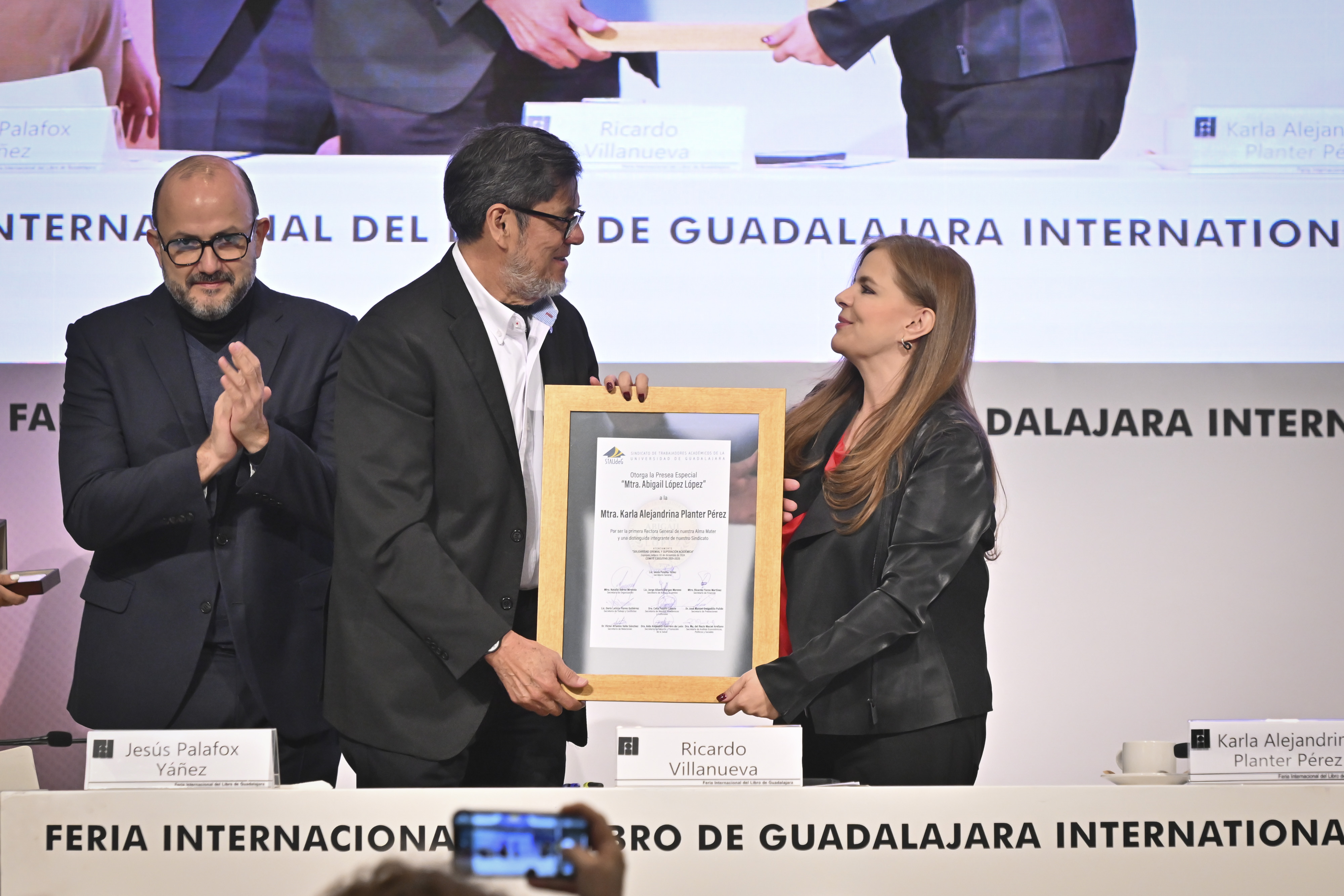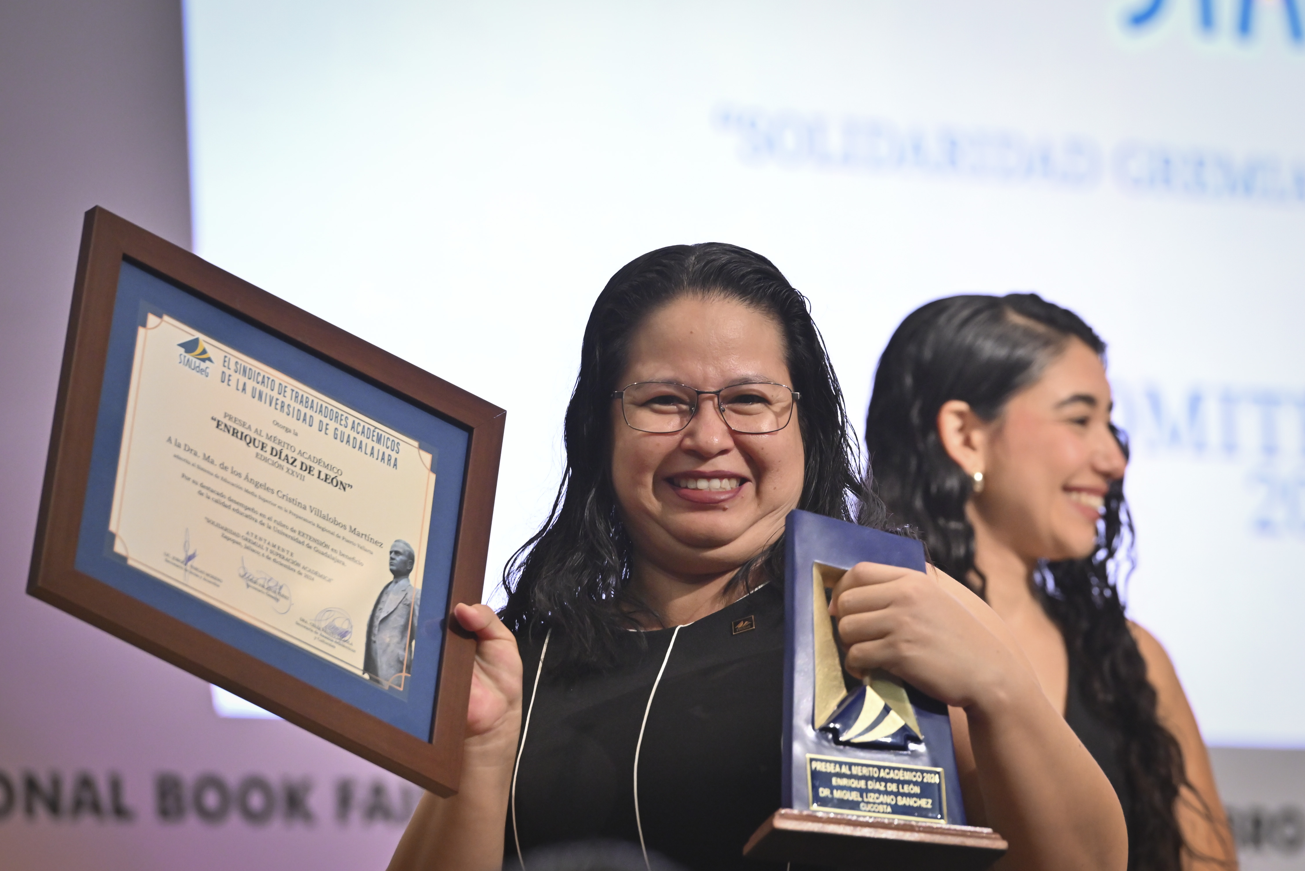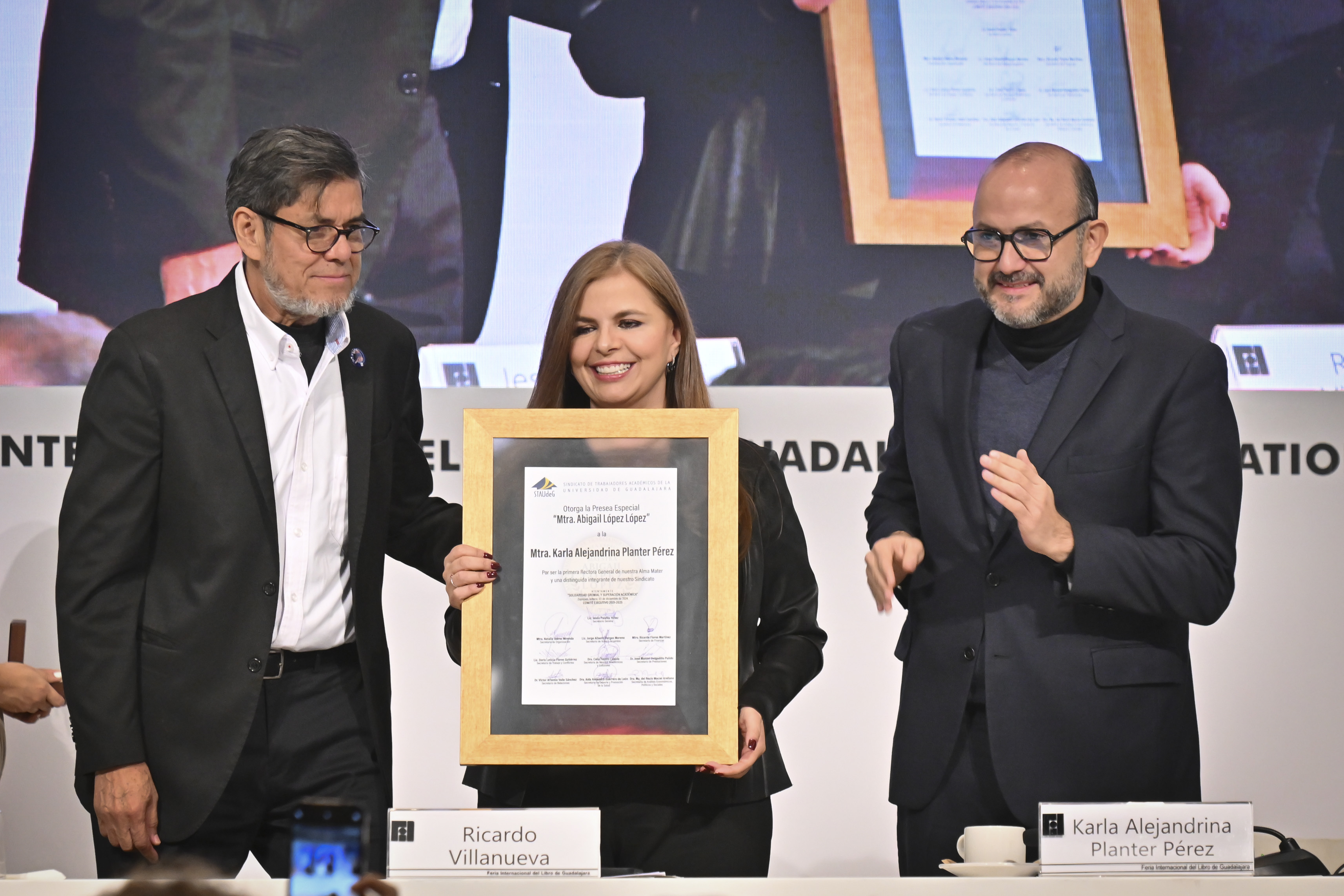 Durante la 38 Feria Internacional del Libro de Guadalajara (FIL) tuvo lugar la entrega de la Presea Enrique Díaz de León al Mérito Académico a 30 docentes por parte del Sindicato de Trabajadores Académicos de la Universidad de Guadalajara (STAUdeG), y por primera vez otorgaron la Presea Abigail López y López a la Rectora General electa de la UdeG, maestra Karla Planter Pérez.