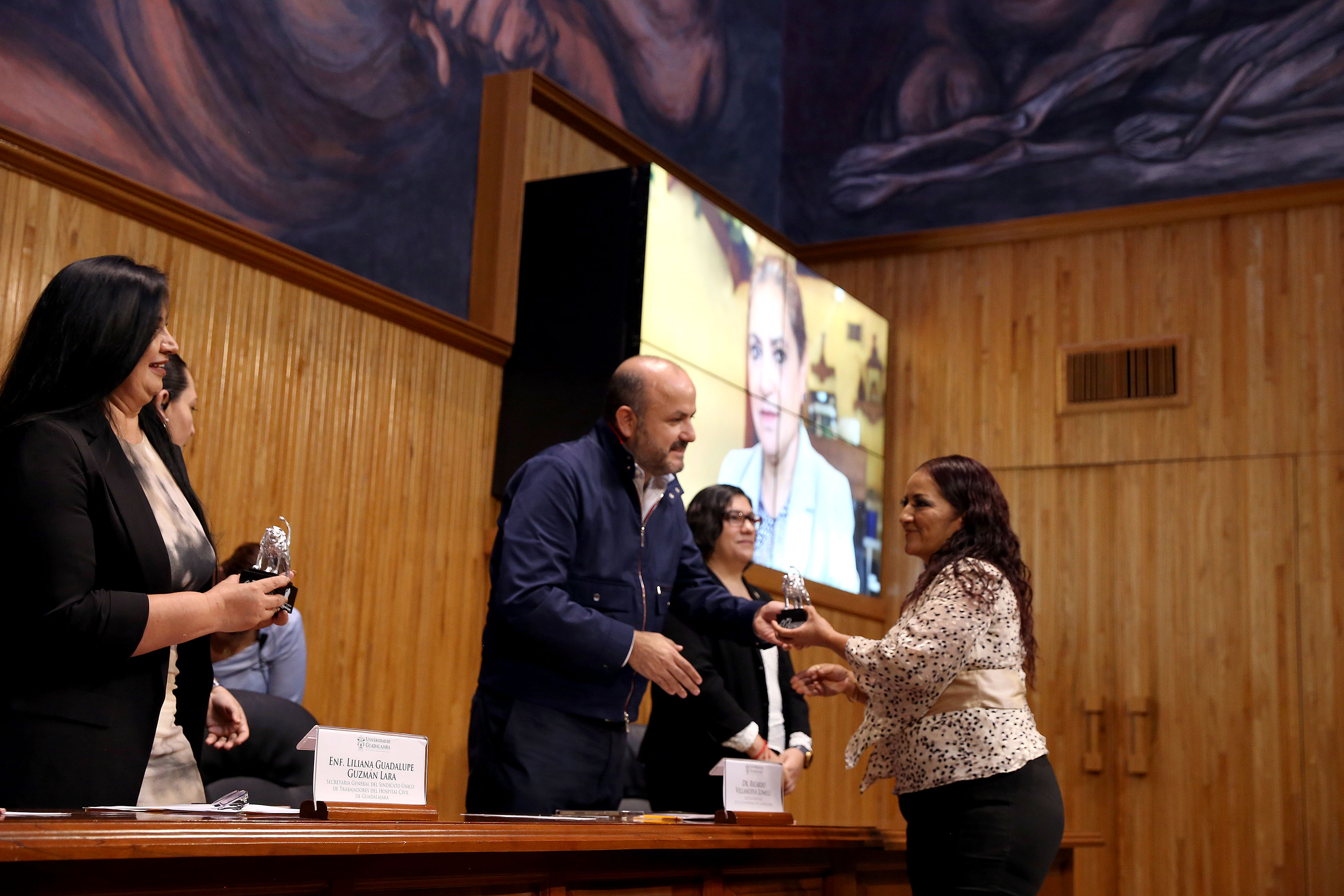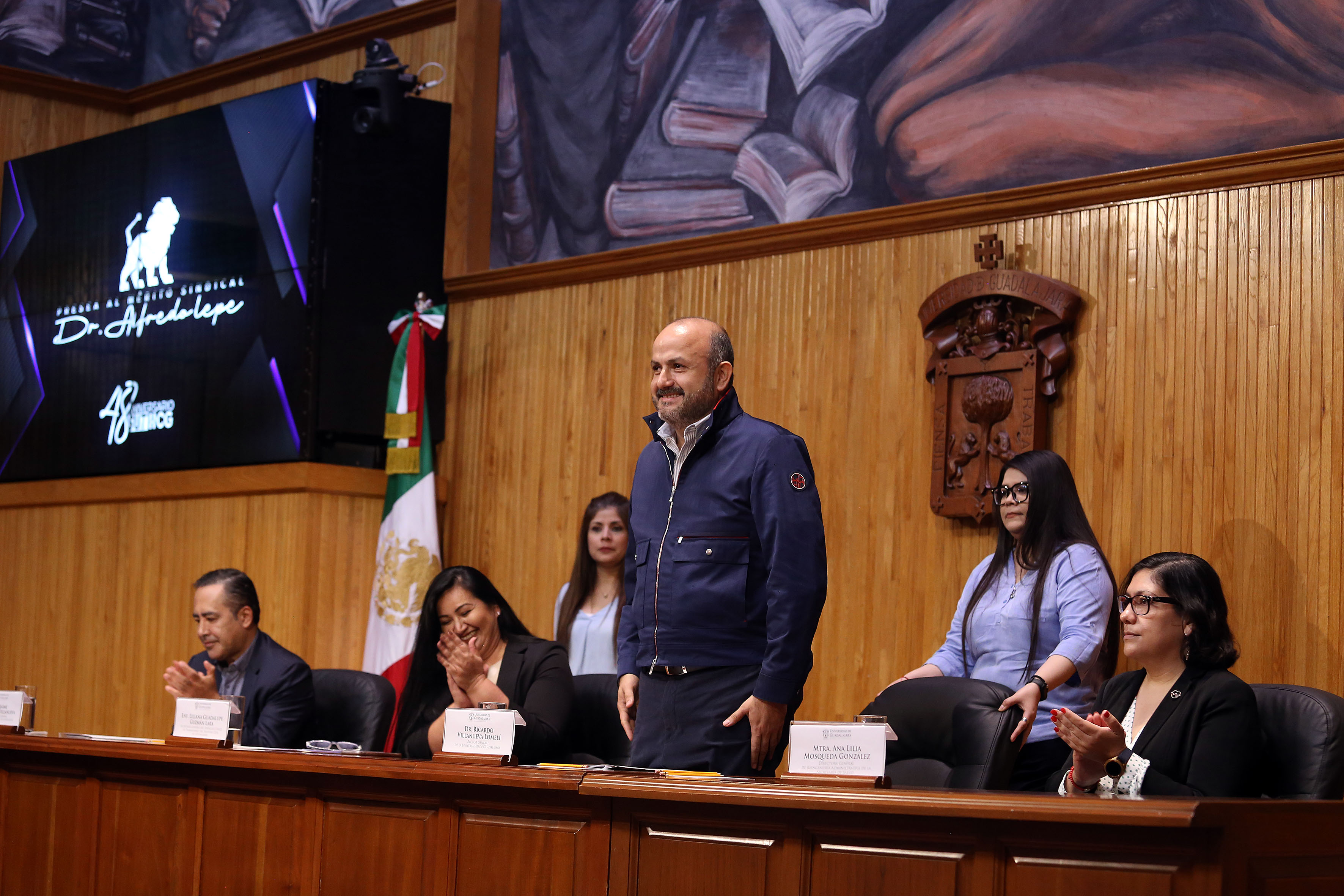 El Rector General de la Universidad de Guadalajara, doctor Ricardo Villanueva Lomelí, encabezó la ceremonia de premiación de la “Presea Dr. Alfredo Lepe Oliva”, del Sindicato Único de Trabajadores del Hospital Civil de Guadalajara (HCG), en la que fueron reconocidos 80 trabajadoras y trabajadores por su entrega en favor de las personas más vulnerables.
