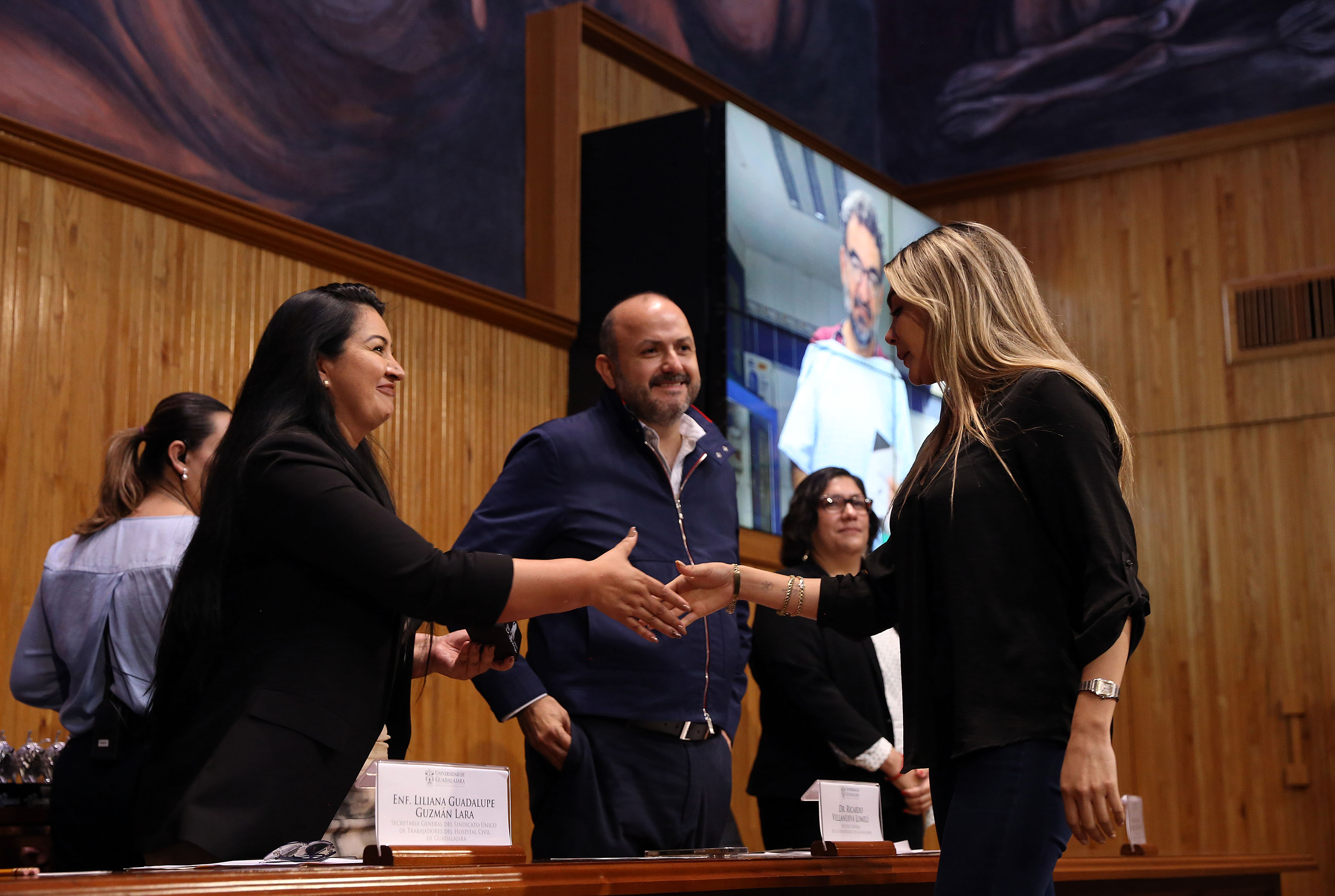 Villanueva Lomelí recordó que el liderazgo de las y los trabajadores se ha reflejado en las mejoras y remodelaciones que el HCG “Fray Antonio Alcalde” está experimentando, con una inversión histórica por parte del gobierno estatal, que además se traducirá en mil contratos de basificación para trabajadoras y trabajadores.