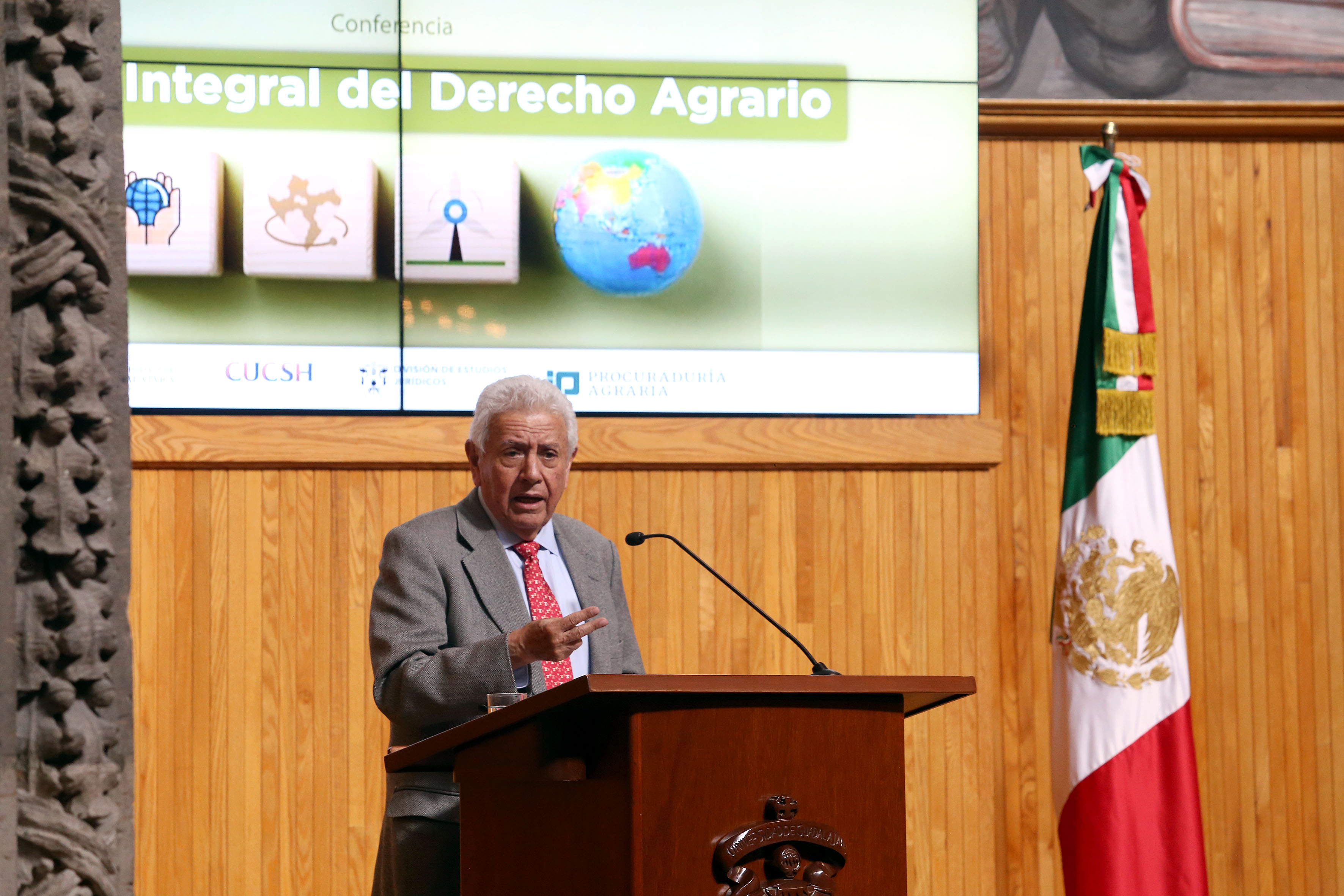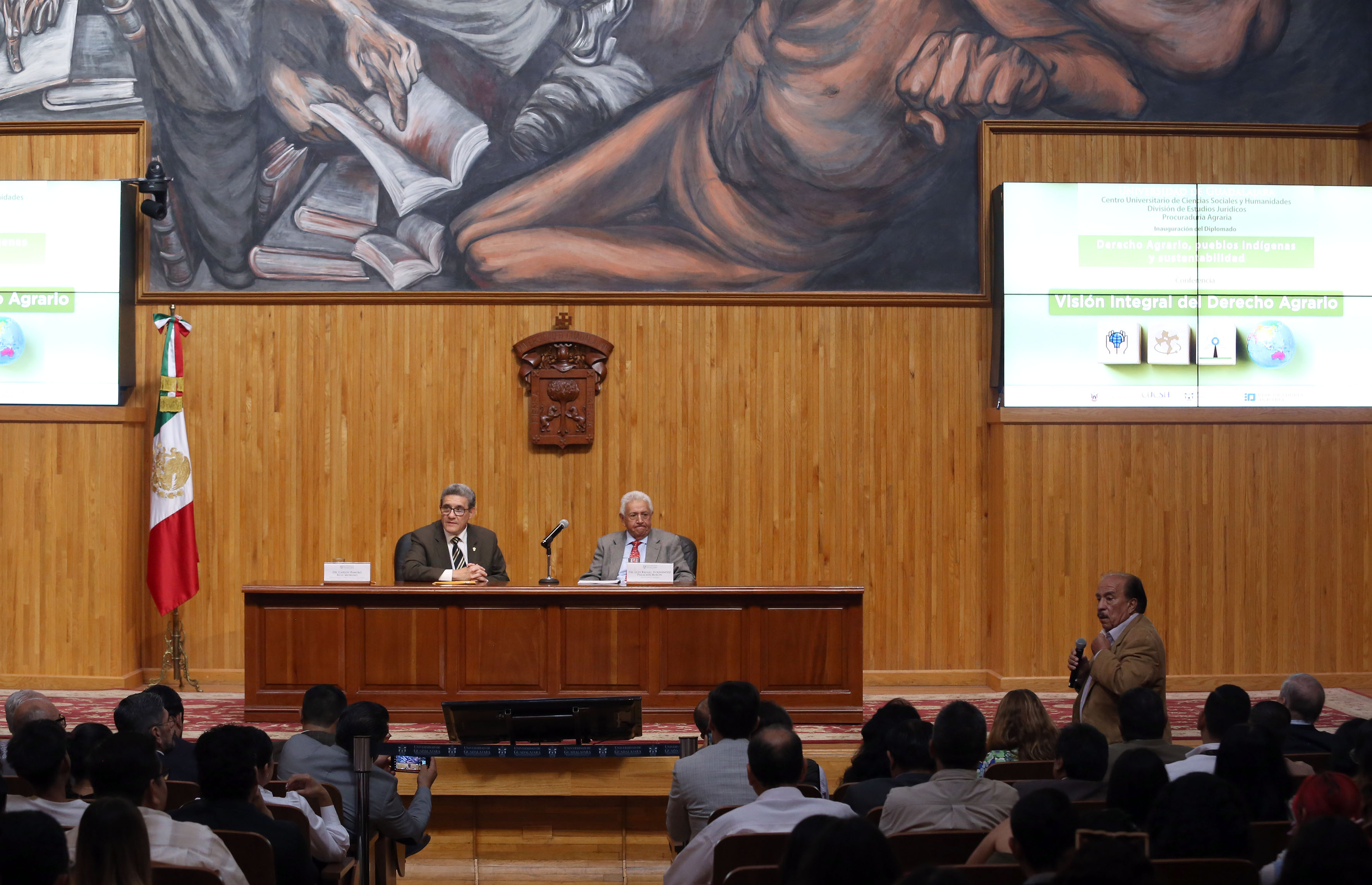 El envejecimiento de los titulares de predios agrarios y una mayor participación de las mujeres en el campo han propiciado que el crimen organizado y el mercado económico ganen terreno en el campo mexicano, afirmó el doctor Luis Rafael Hernández Palacios Mirón, Procurador Agrario del gobierno mexicano, en su conferencia “Visión integral del derecho agrario”, en el marco de la inauguración del diplomado en Derecho agrario, pueblos indígenas y sustentabilidad, organizado por la División de Estudios Jurídicos del Centro Universitario de Ciencias Sociales y Humanidades (CUCSH) de la UdeG.