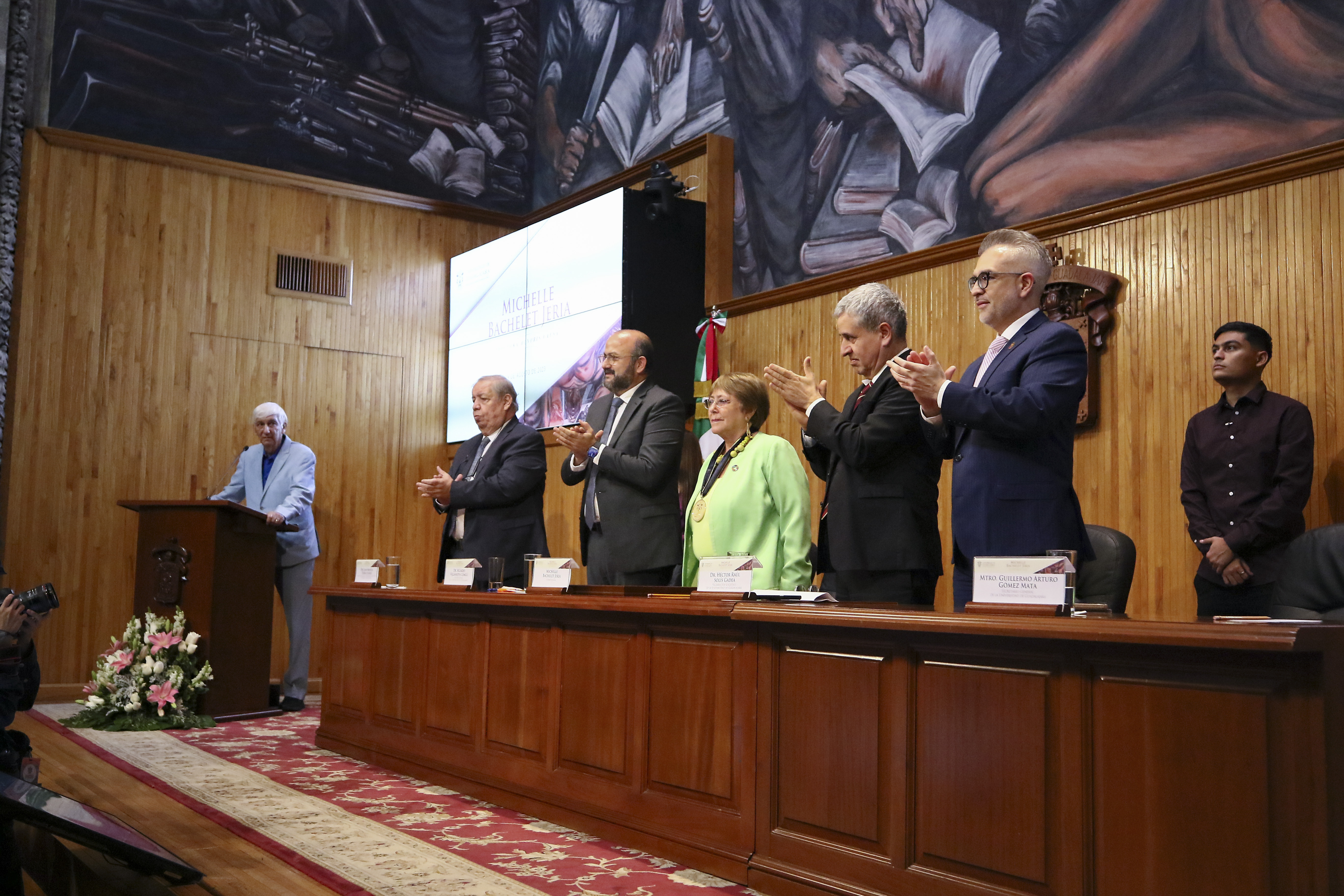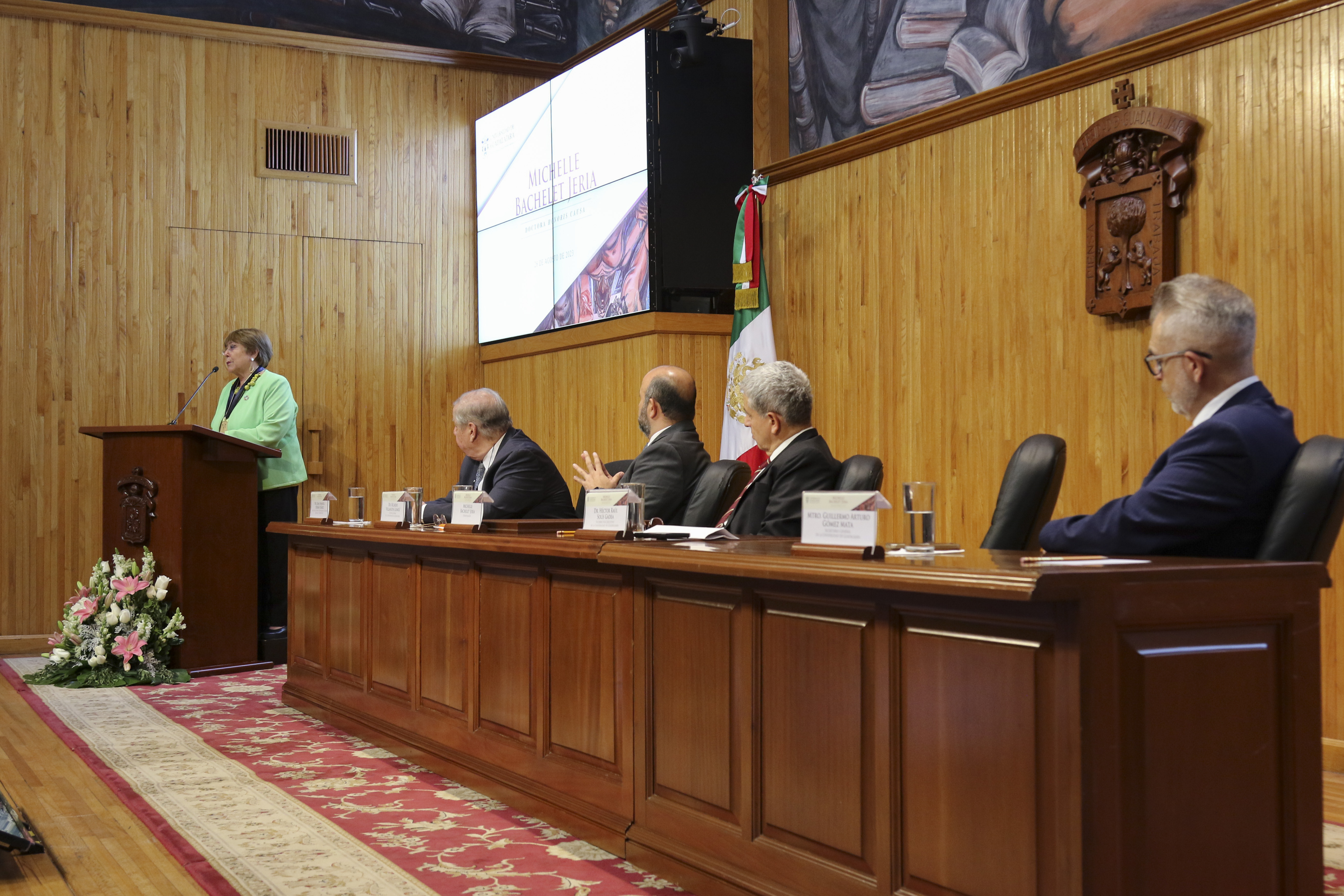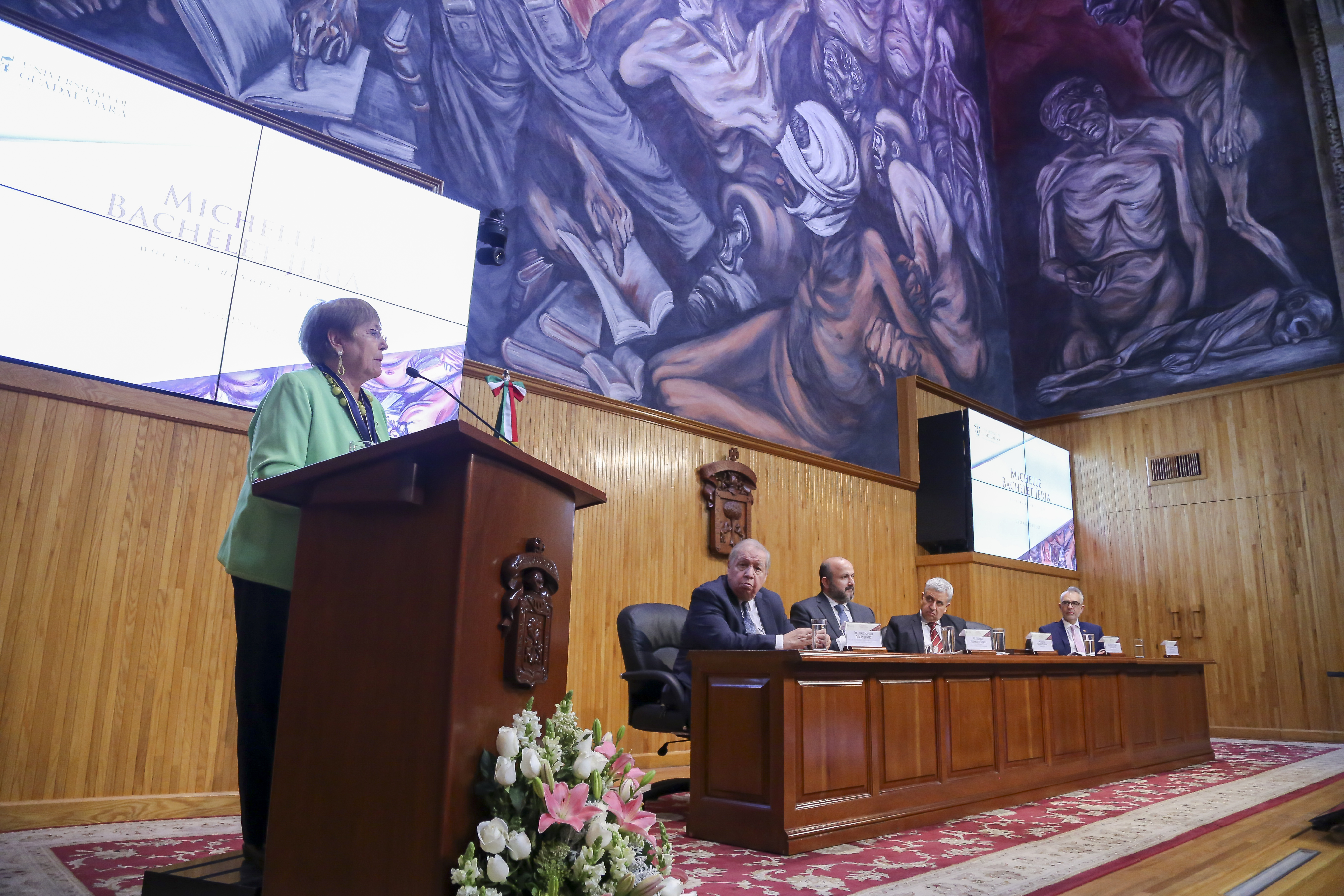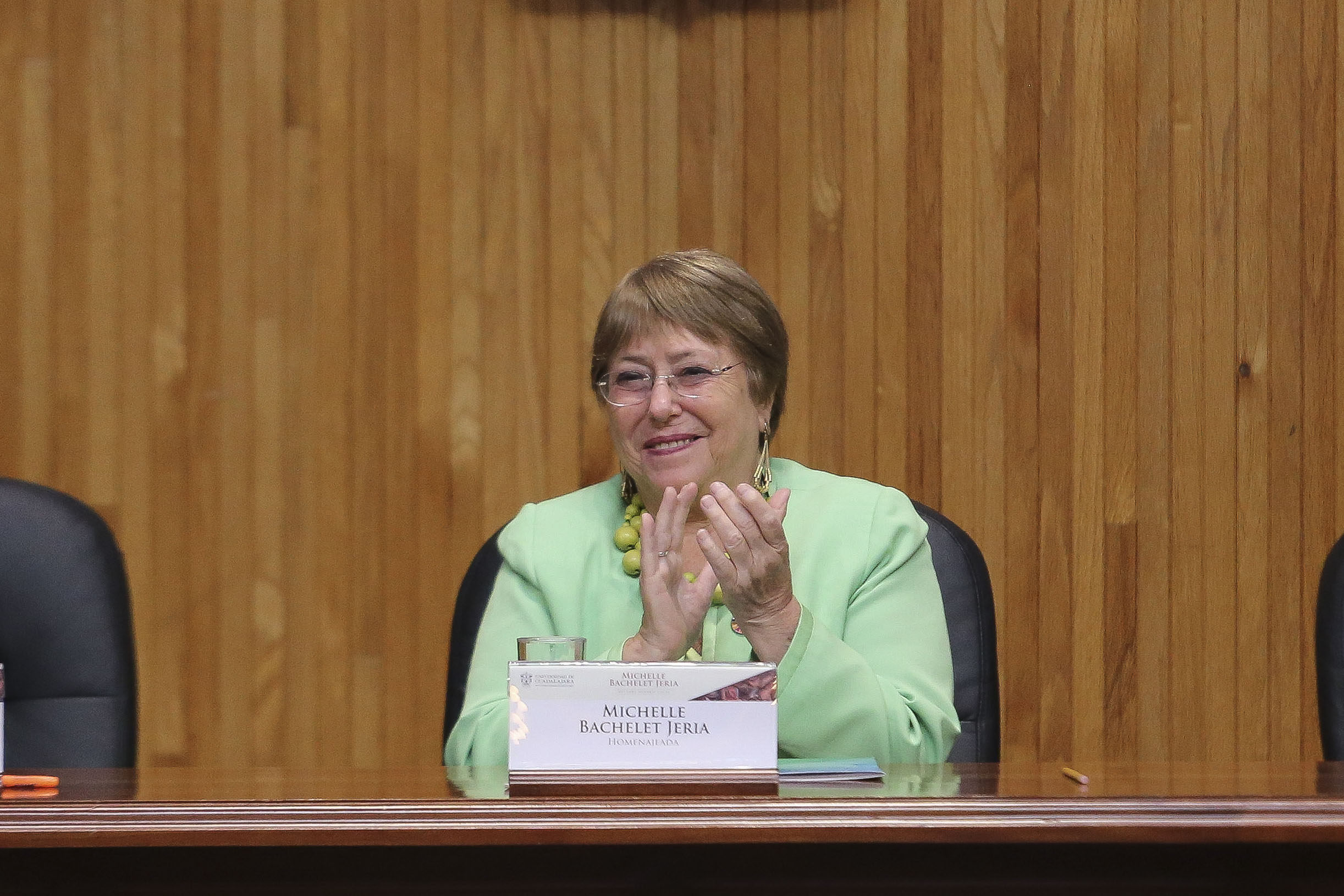 La Expresidenta de Chile, Michelle Bachelet Jeria, recibió el Doctorado Honoris causa de la Universidad de Guadalajara, de manos del Rector General de esta Casa de Estudio, doctor Ricardo Villanueva Lomelí, por “su reconocida trayectoria, aportaciones y liderazgo en favor de los derechos humanos, la justicia social y la igualdad de género en América Latina”.