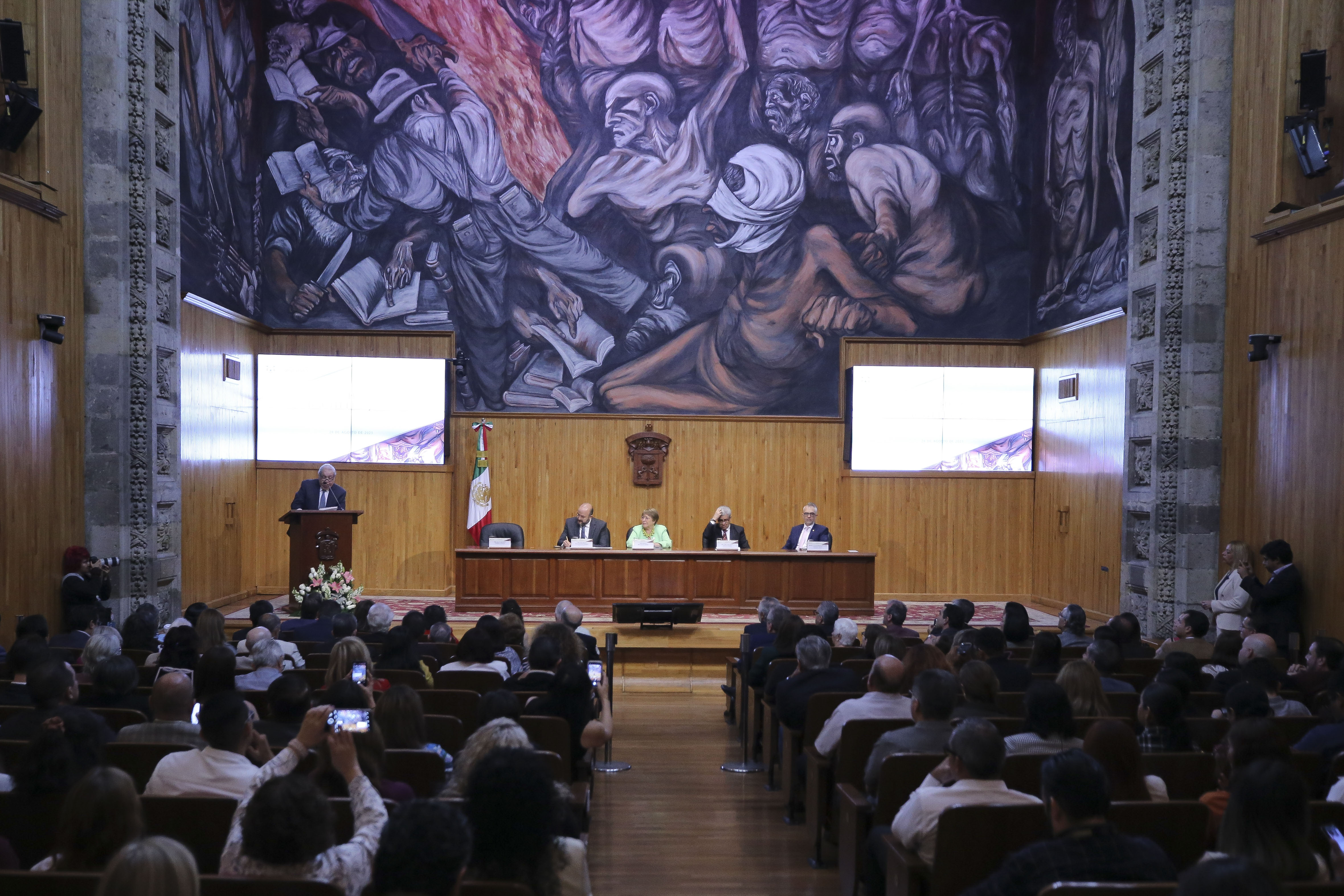 Subrayó que el Consejo General Universitario (CGU) ha entregado 105 doctorados Honoris causa; el primero a una mujer fue en 1972, a la doctora Irene Robledo García y el de Bachelet es el décimo tercero que esta Casa de Estudio otorga a mujeres destacadas.