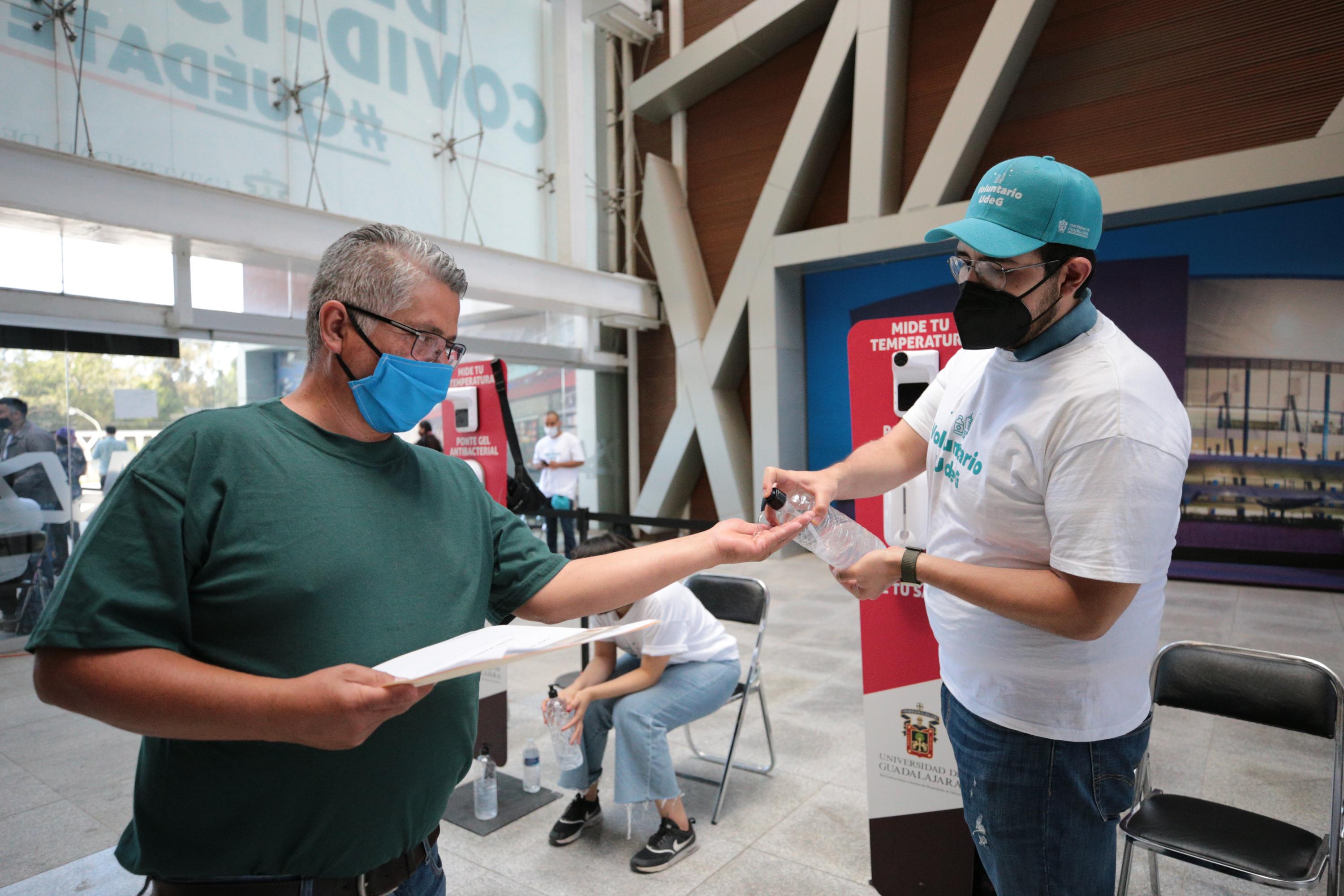 Ana González, estudiante del Centro Universitario de Ciencias Biológicas y Agropecuarias, es una voluntaria que ha estado en tres módulos universitarios de vacunación y ha ayudado a que tanto los adultos mayores como sus propios profesores reciban la inmunización. Uno de los motivos para donar su tiempo fue regresar lo que la UdeG le ha dado antes y durante la pandemia.