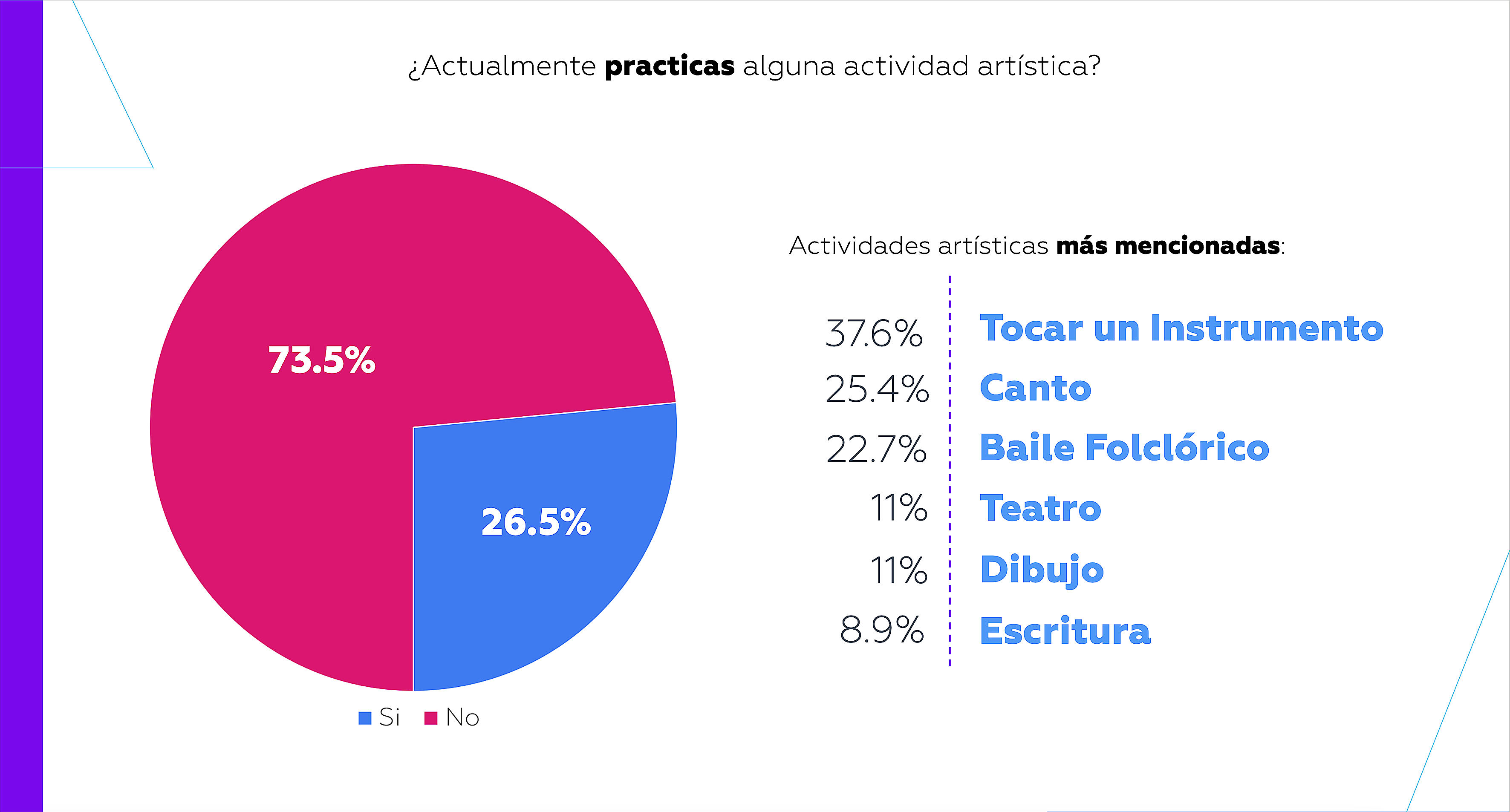 Desde febrero se elaboraron encuestas de interés para conocer los hábitos y las necesidades de los alumnos en materia de arte y cultura. A través de los resultados se pensó en crear una estrategia para acercar las manifestaciones artísticas al alumnado.