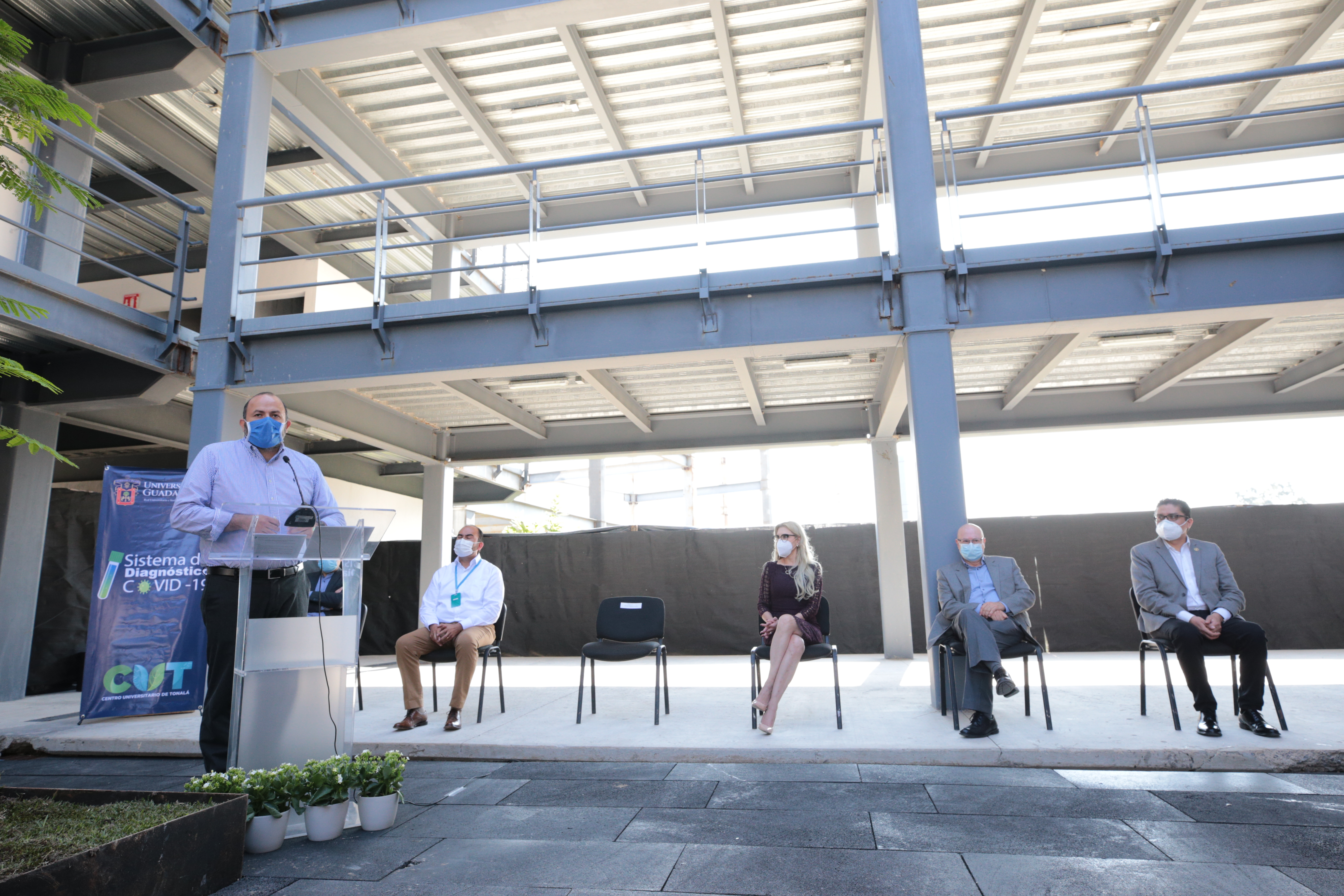 Con el fin de contribuir a la detección de casos de COVID-19 en beneficio de la sociedad, el Rector General de la Universidad de Guadalajara, doctor Ricardo Villanueva Lomelí, inauguró el día de hoy el Área de Diagnóstico COVID-19, del Centro de Investigación Multidisciplinario en Salud, ubicado en el edificio F, planta baja, del Centro Universitario de Tonalá (CUTonalá).