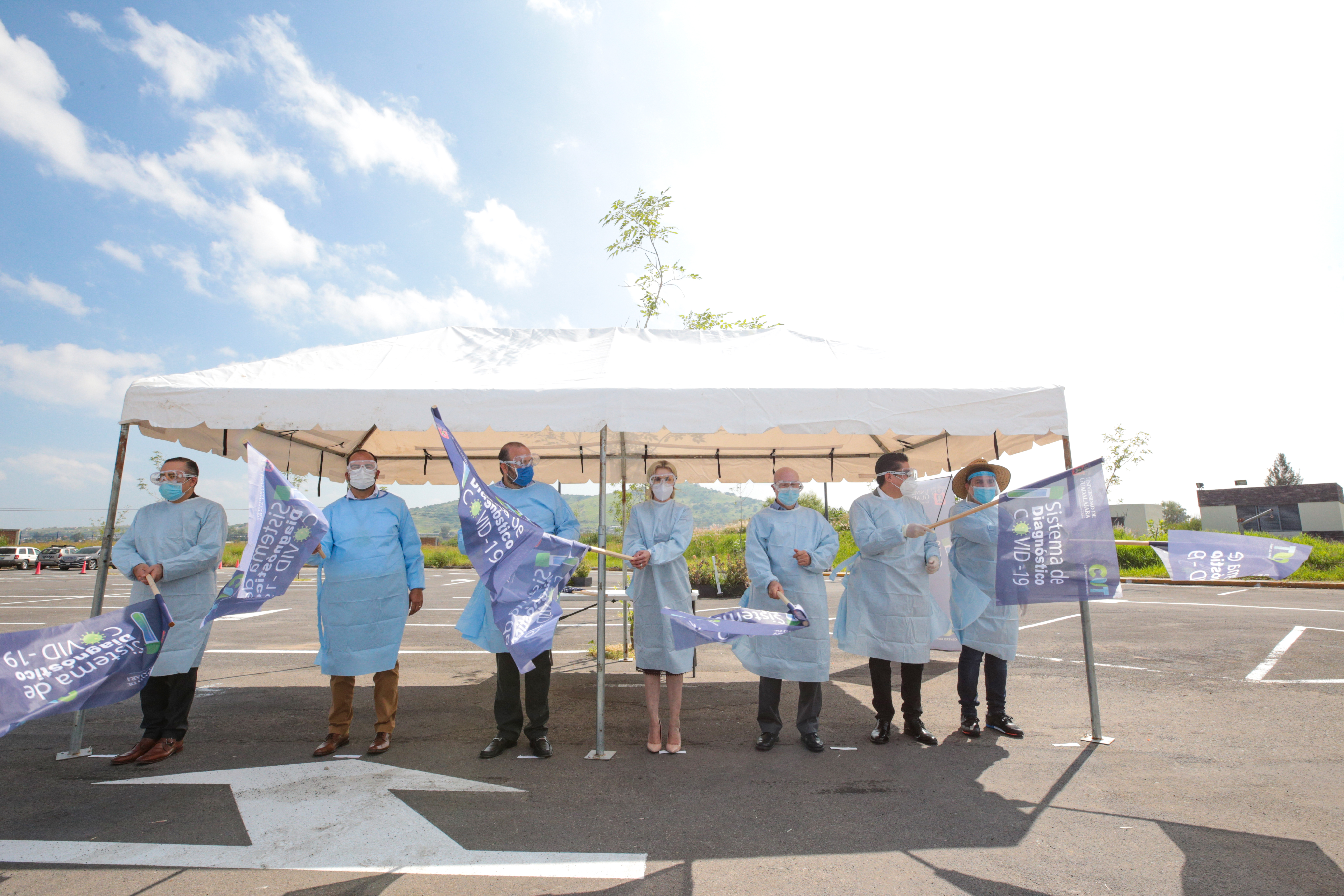 Posterior a la inauguración del área, el Rector General dio el banderazo de inicio al Drive thru para la toma de muestras a personas sospechosas de tener COVID-19, y de inmediato comenzó el trabajo del área.