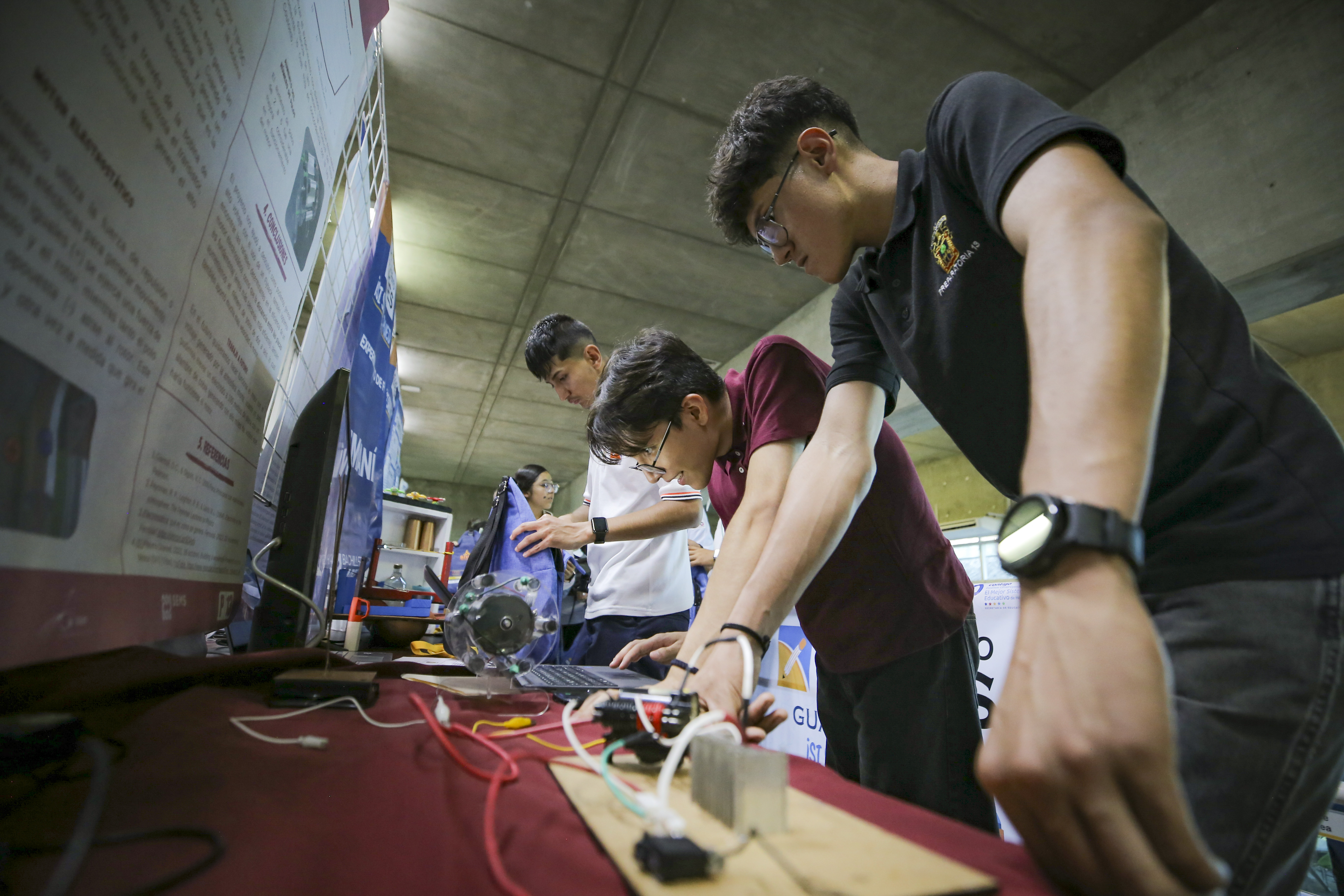 El profesor de física Abraham Pinedo López, de la Preparatoria 13, expresó que los estudiantes que ha comandado en los últimos cuatro años han ganado el primer lugar: “Para llegar aquí los chicos tienen que ganar el concurso estatal. Es fenomenal participar con prepas de todo el país. Los chicos no se imaginaban que con un proyecto escolar pudieran llegar hasta aquí; esto les abre mucho la mente”, externó.