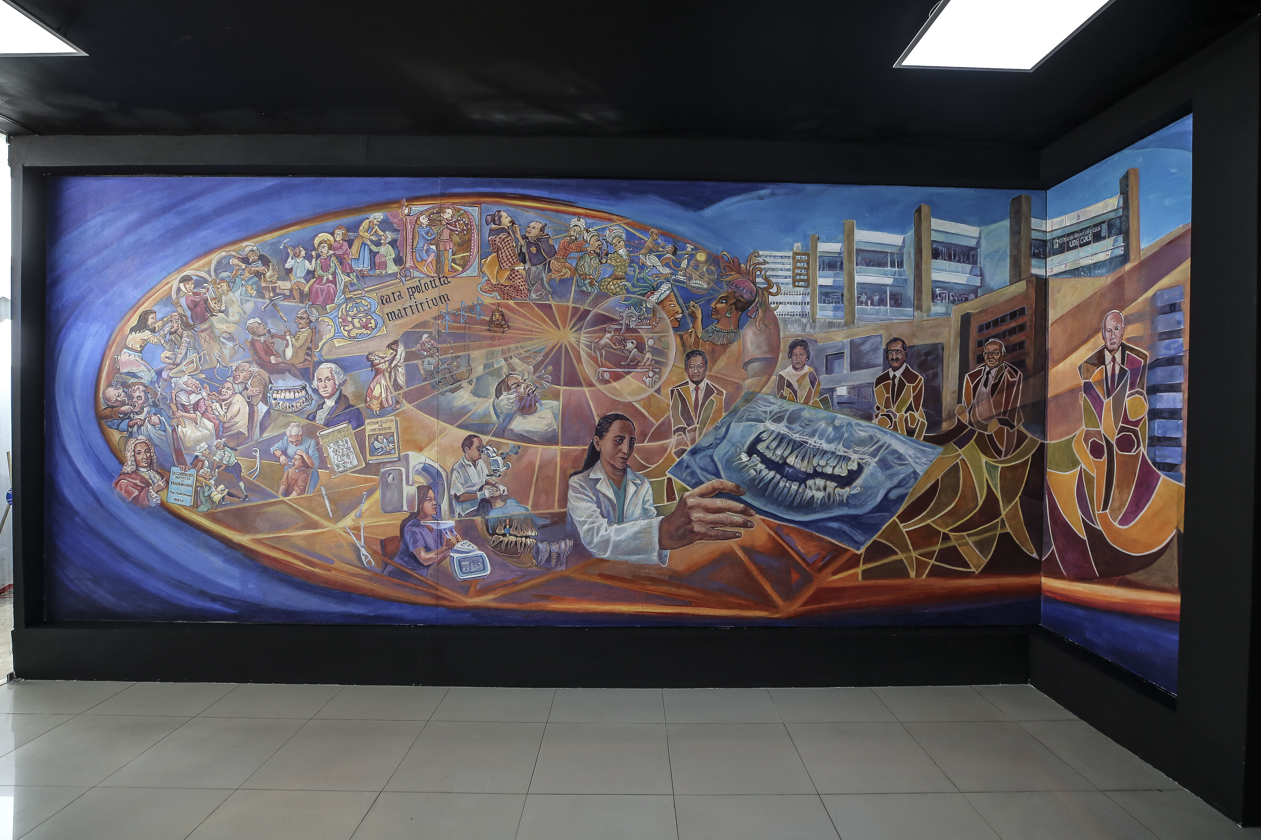 Sobre el mural Historia de la odontología desde sus inicios hasta nuestros días, de la autoría de Jorge Monroy, la doctora Saralyn López y Taylor, Secretaria Administrativa del CUCS, expresó que su gestión inició en 2017, cuando se había intentado plasmar algo que les representara y perdurara como es la historia de la odontología.