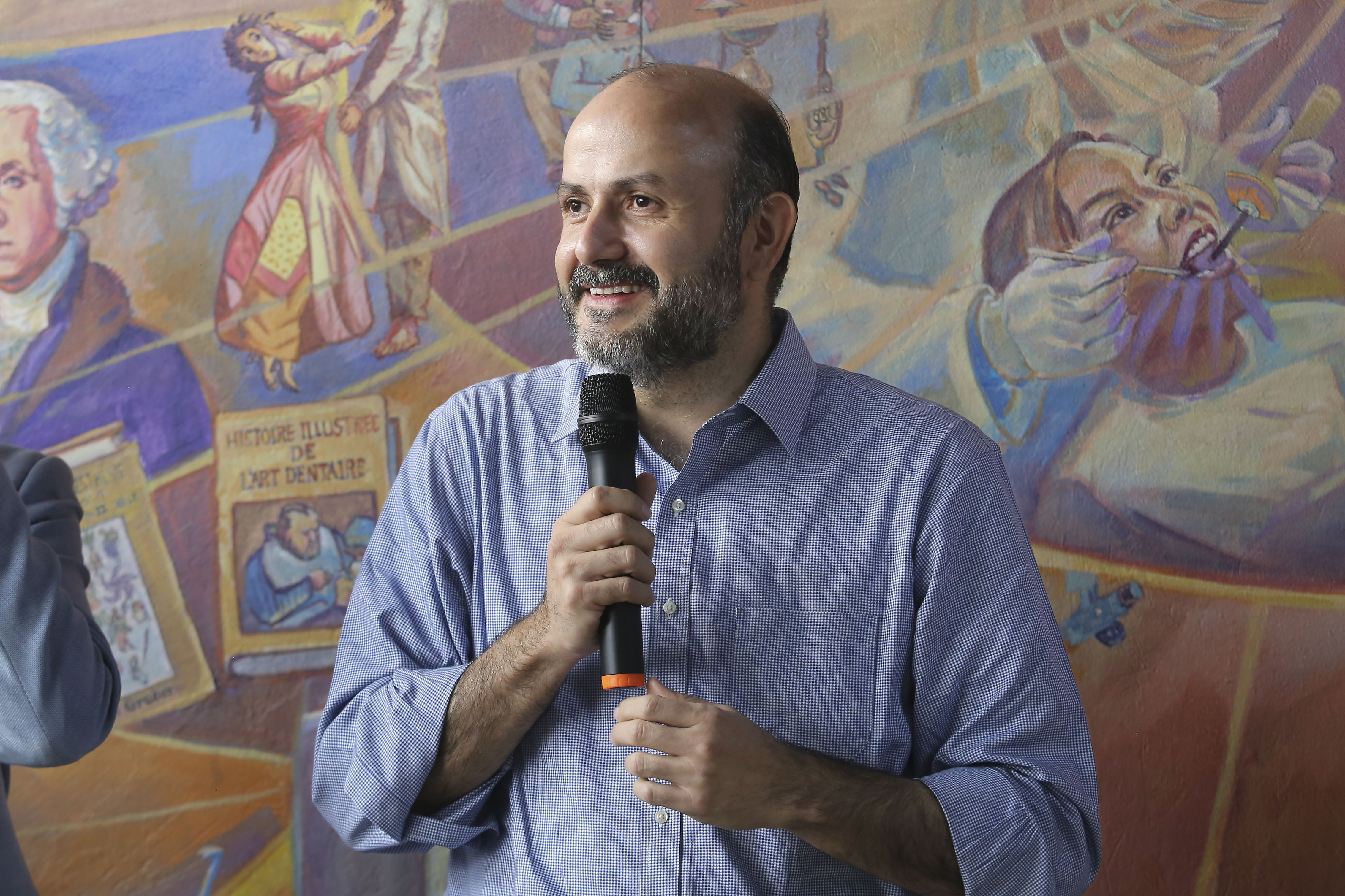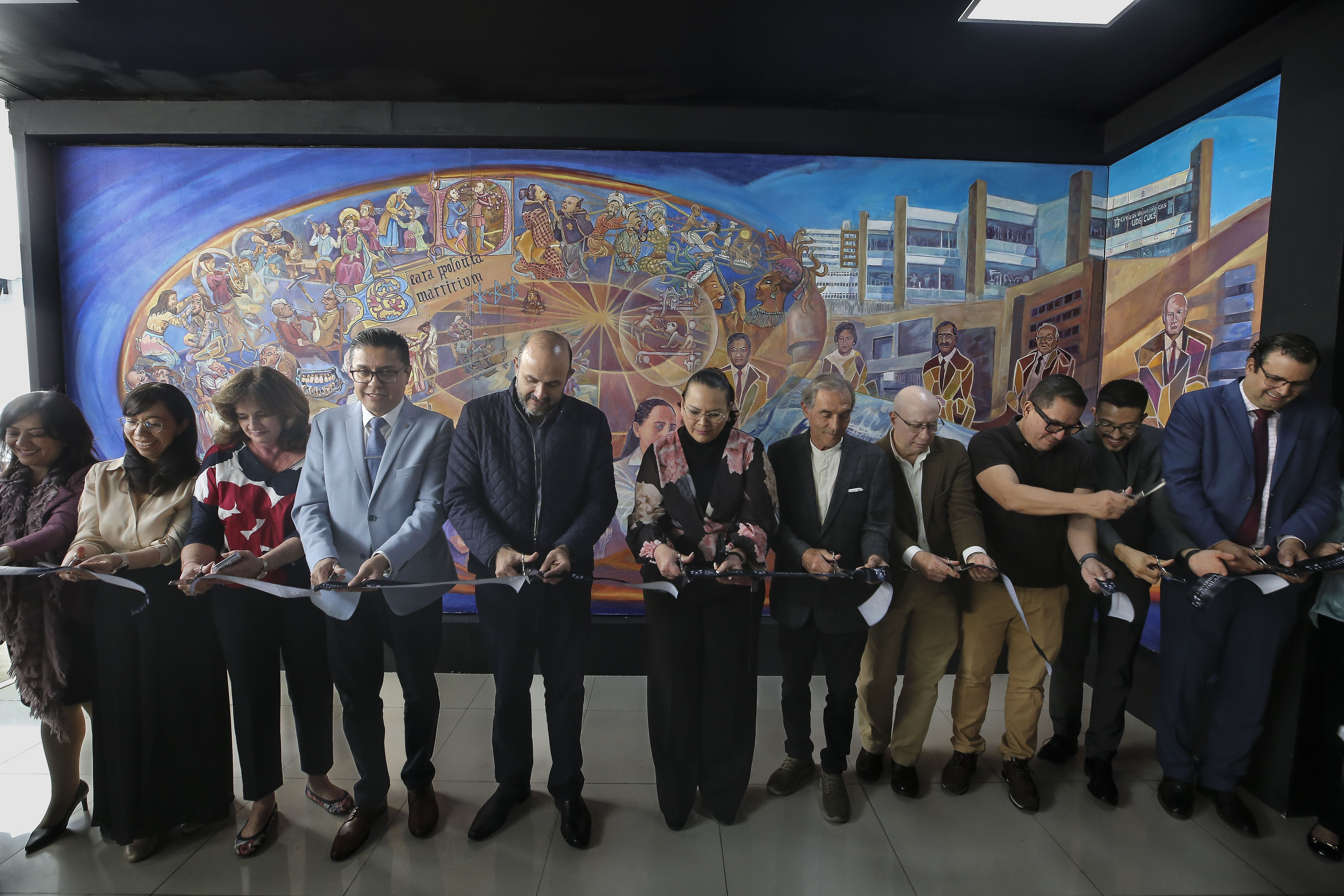 “Este mural plasma cómo inició la odontología y cómo fue evolucionando, antes lo hacíamos sin guantes ni cubrebocas, y son muchos los avances que ha habido. En el mural queda plasmado el sentimiento de nuestra escuela y la carrera, y plasma la cuestión de género y la labor de las mujeres. Es el sexto mural que Jorge Monroy hace en el centro”, dijo.