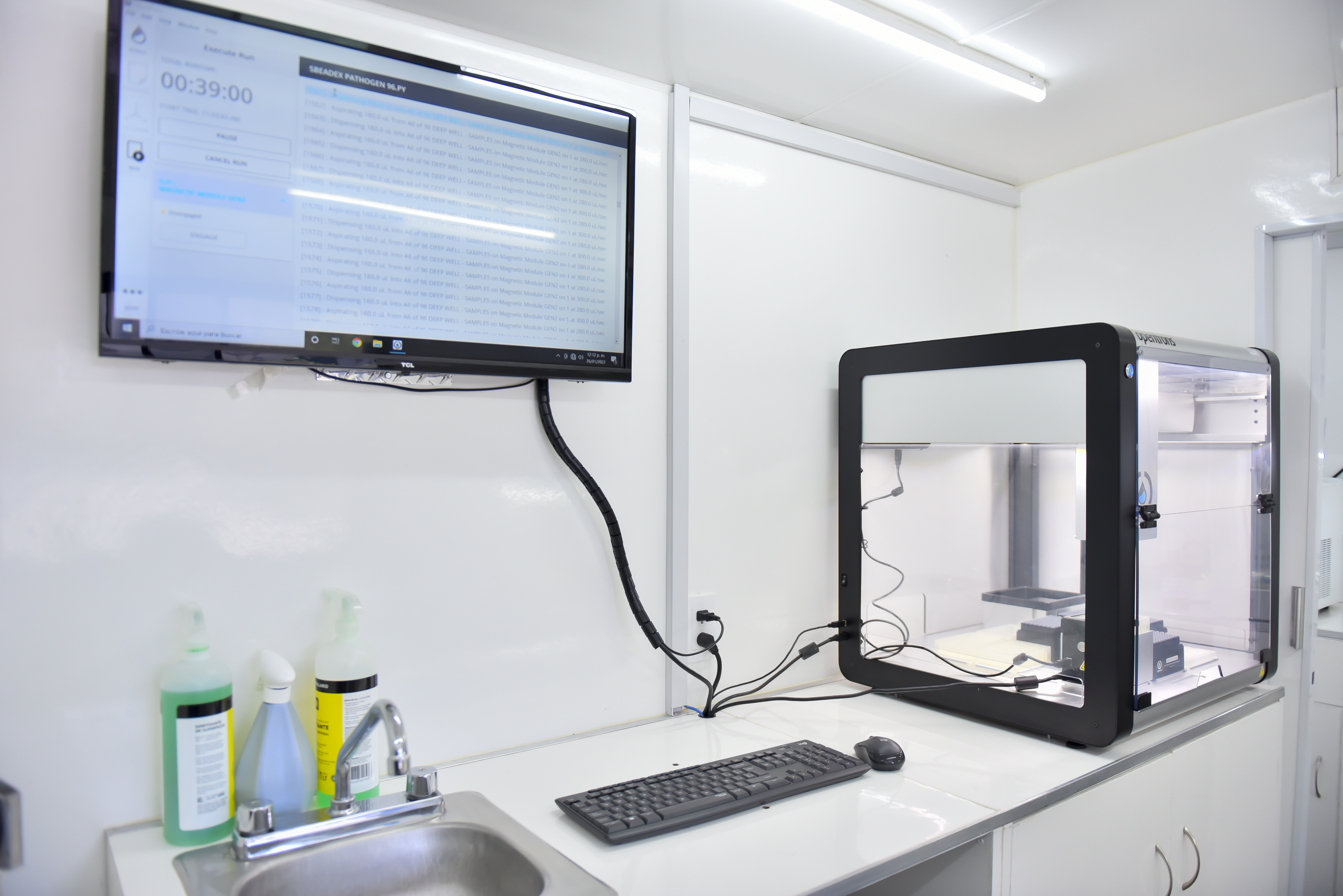 “Está equipado con un robot de extracción de ácidos nucléicos y trae sus campanas y termociclador para poder hacer la PCR. Se podrían hacer aquí otras pruebas como las de antígeno, pero por el momento no es necesario; el lugar está equipado para hacer procesos de biología molecular”, detalló Vega Magaña.