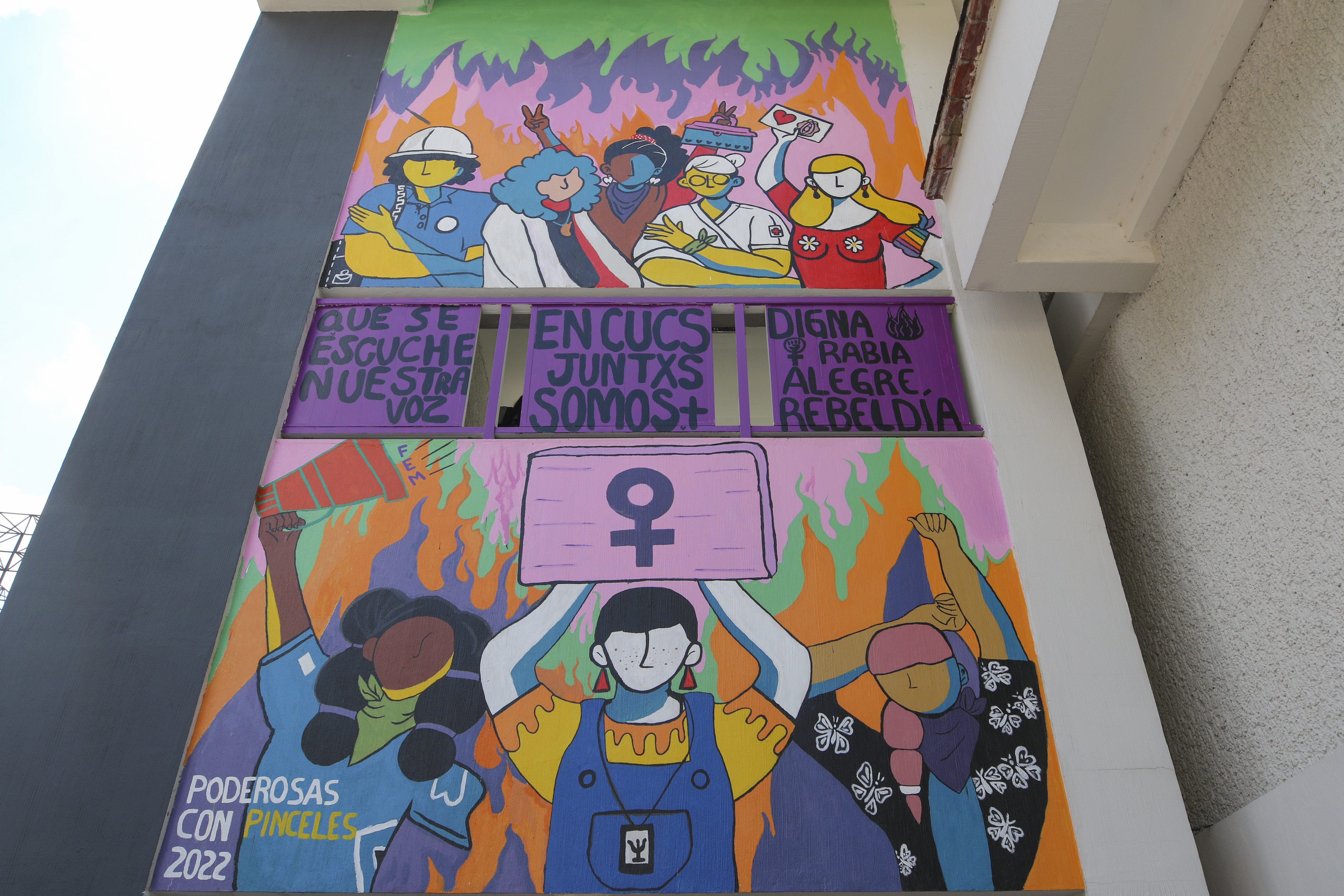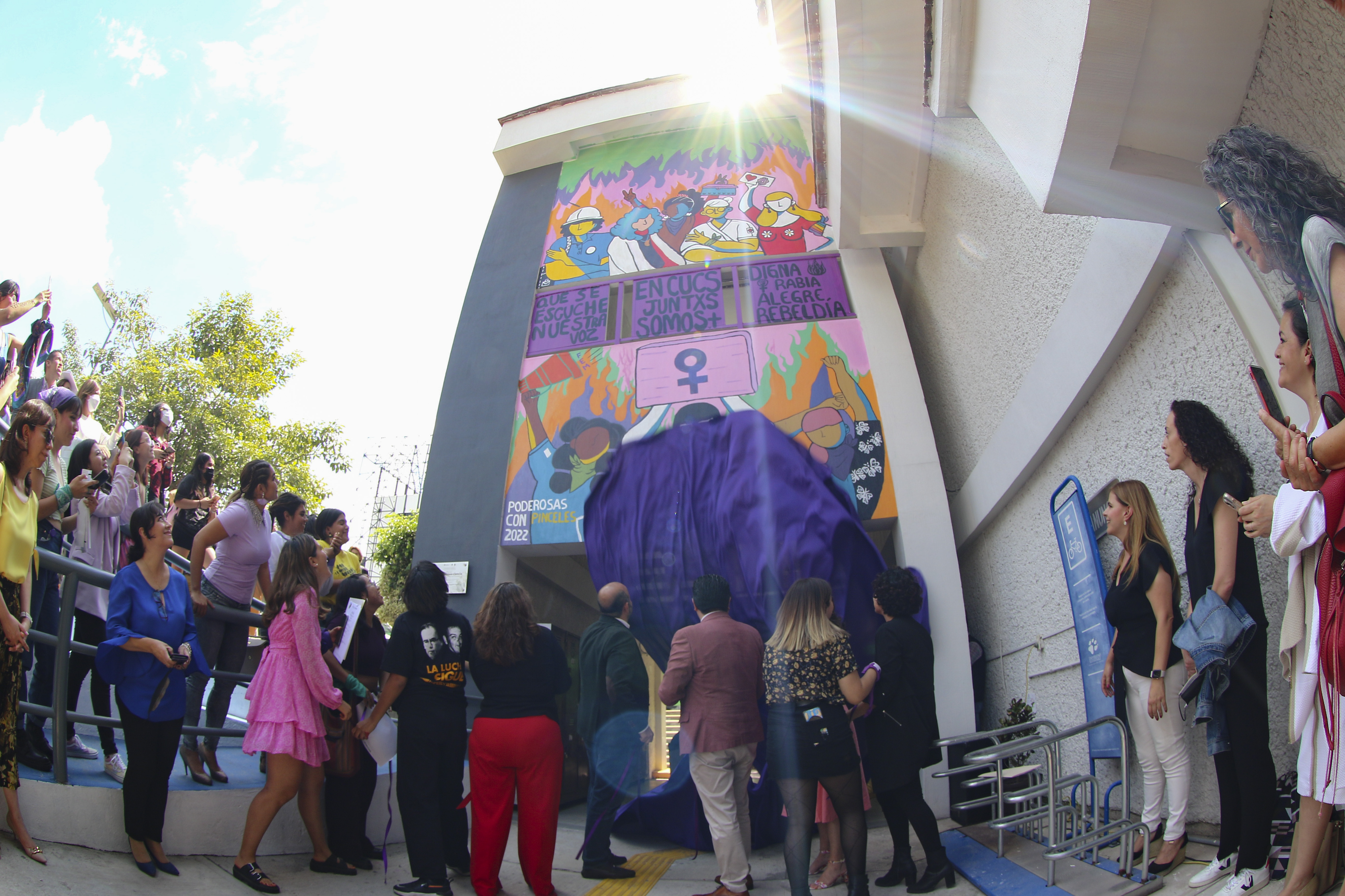 En el edificio O del CUCS se develó el mural Todxs somos ciencia, hecho por el Colectivo Poderosas con Pinceles y que busca representar la lucha de las mujeres en la ciencia. Shakty Valeria Núñez Najar, representante de la colectiva, platicó sobre el proceso del proyecto y expuso la unión que se vivió entre las alumnas, maestras y administrativas: “Fue muy enriquecedor saber que no estamos solas y que nos tenemos a nosotras”, expresó.