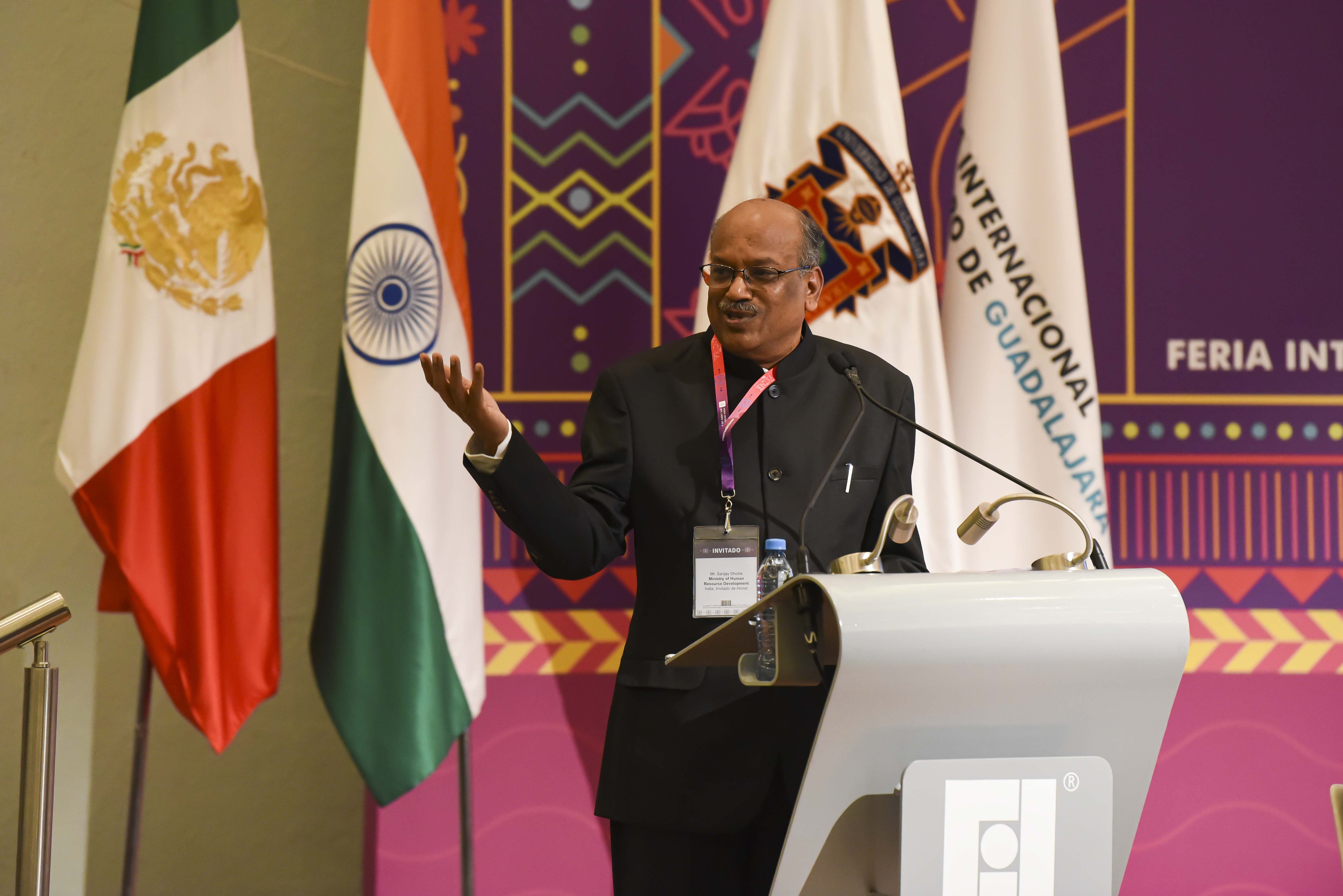 Shanjay Dhotre, Ministro de Desarrollo Humano del gobierno de India, en representación del Primer Ministro de Estado, Narendra Modi, dijo que México e India, pese a estar a miles de millas de distancia, comparten similitudes en cuanto a su gente, biodiversidad, familia y valores culturales. Anunció que India viene con una constelación de 50 escritores, poetas traductores y divulgadores científicos; así como académicos, profesionales de la edición, pensadores y autores de literatura infantil.