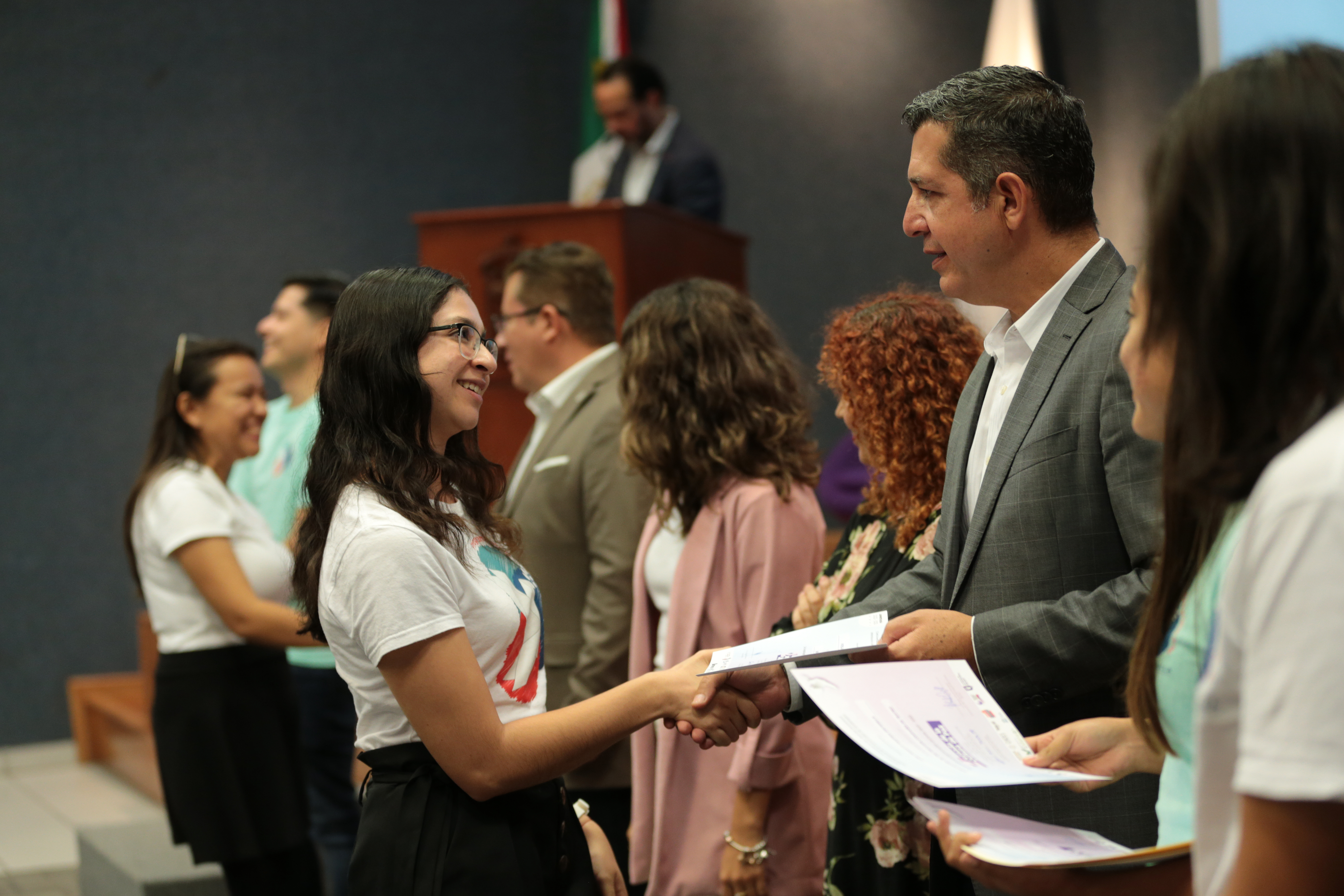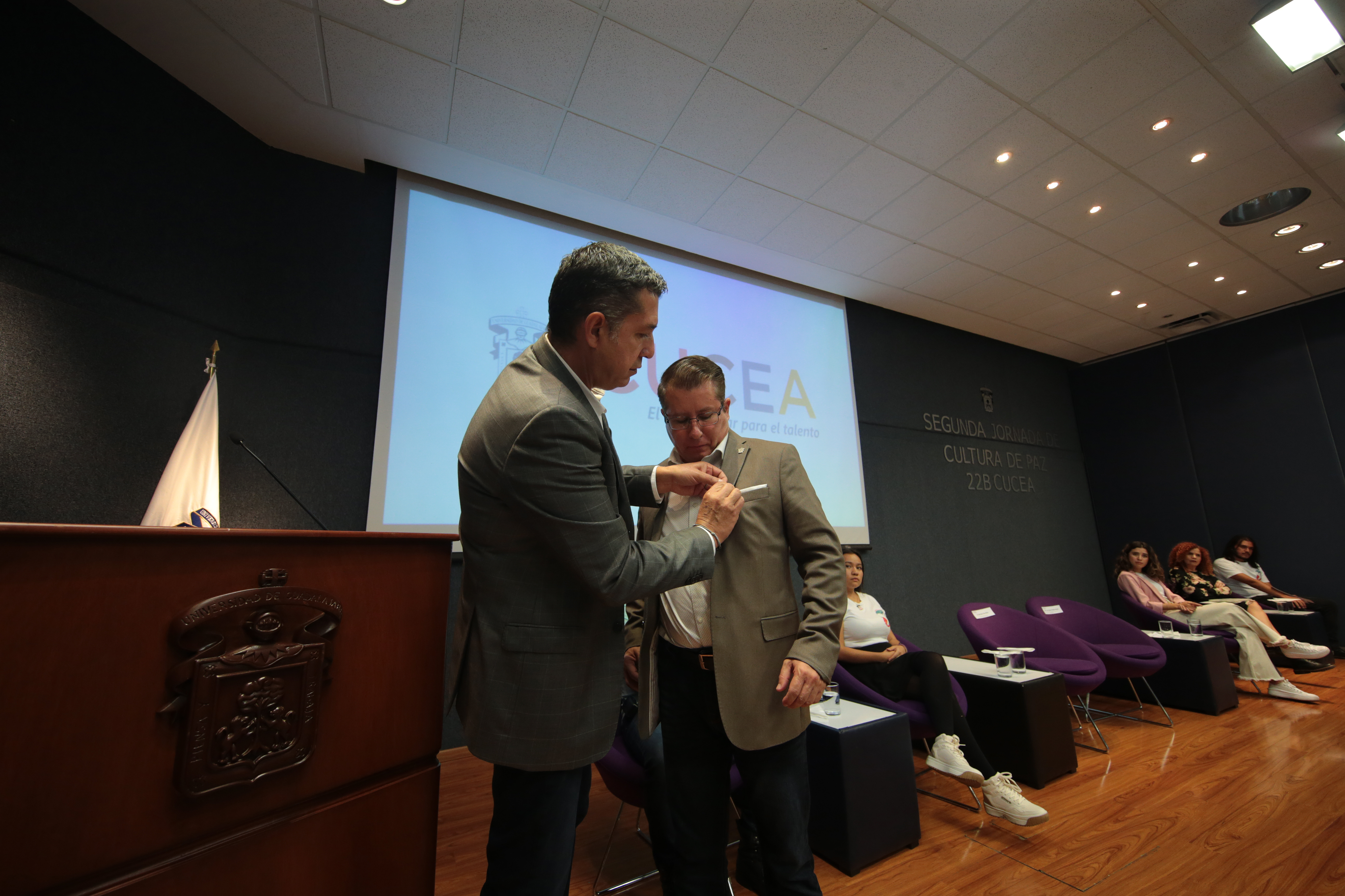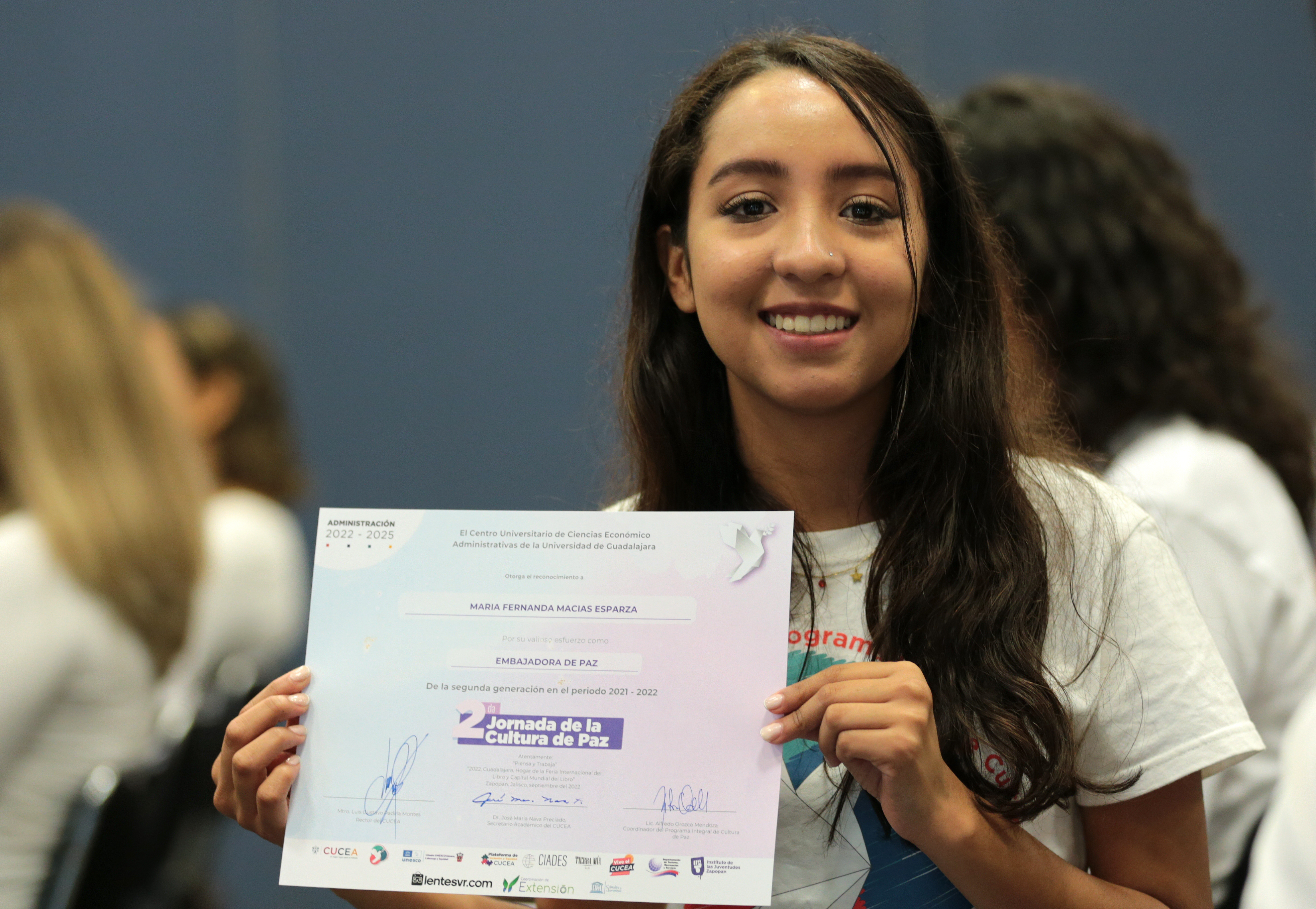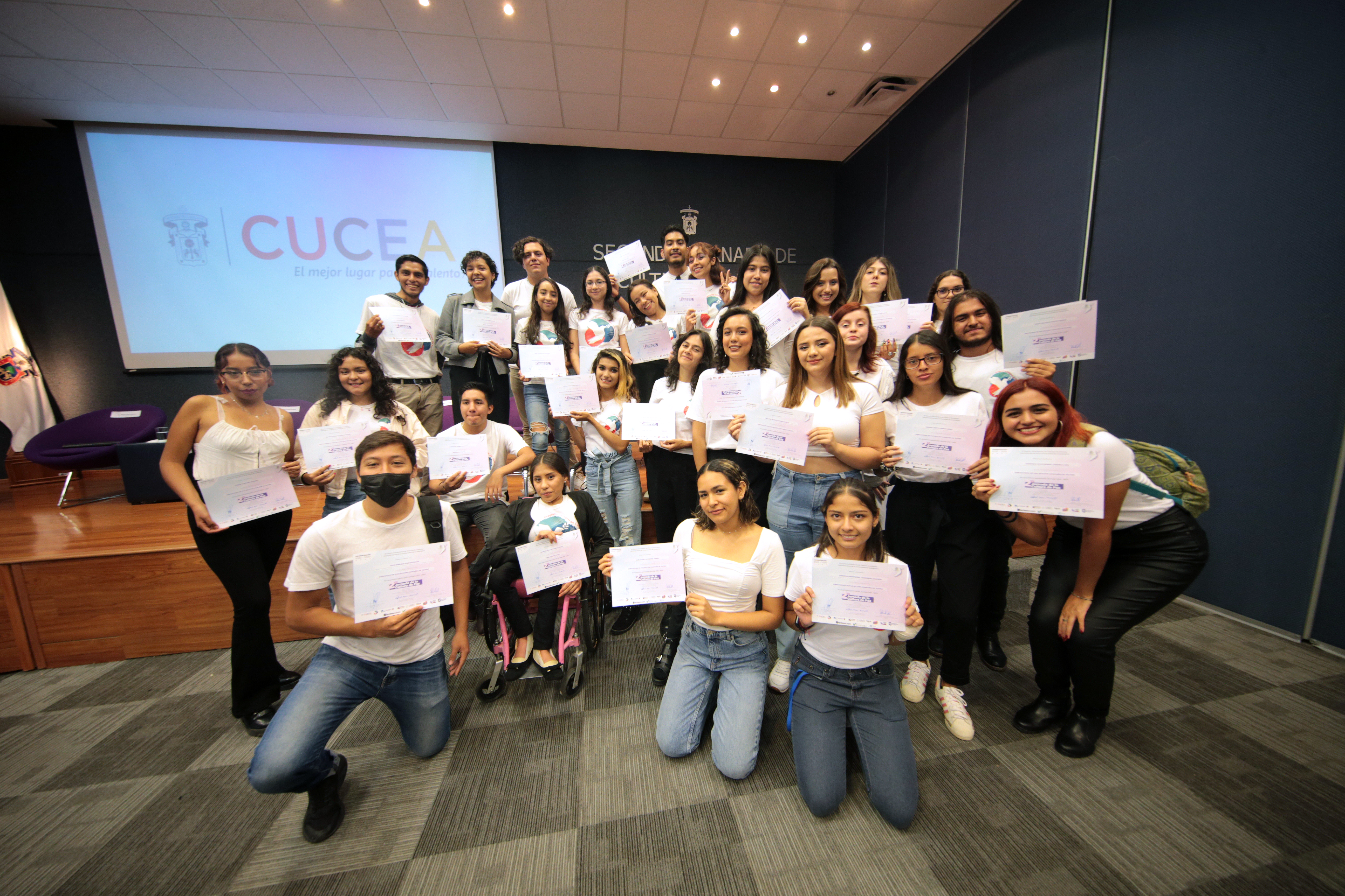 Durante el acto inaugural se hizo un reconocimiento a embajadores de la primera y segunda generaciones de Compañías de Teatro por la labor que han estado realizando en favor de una cultura de paz: alrededor de 28 estudiantes del CUCEA.