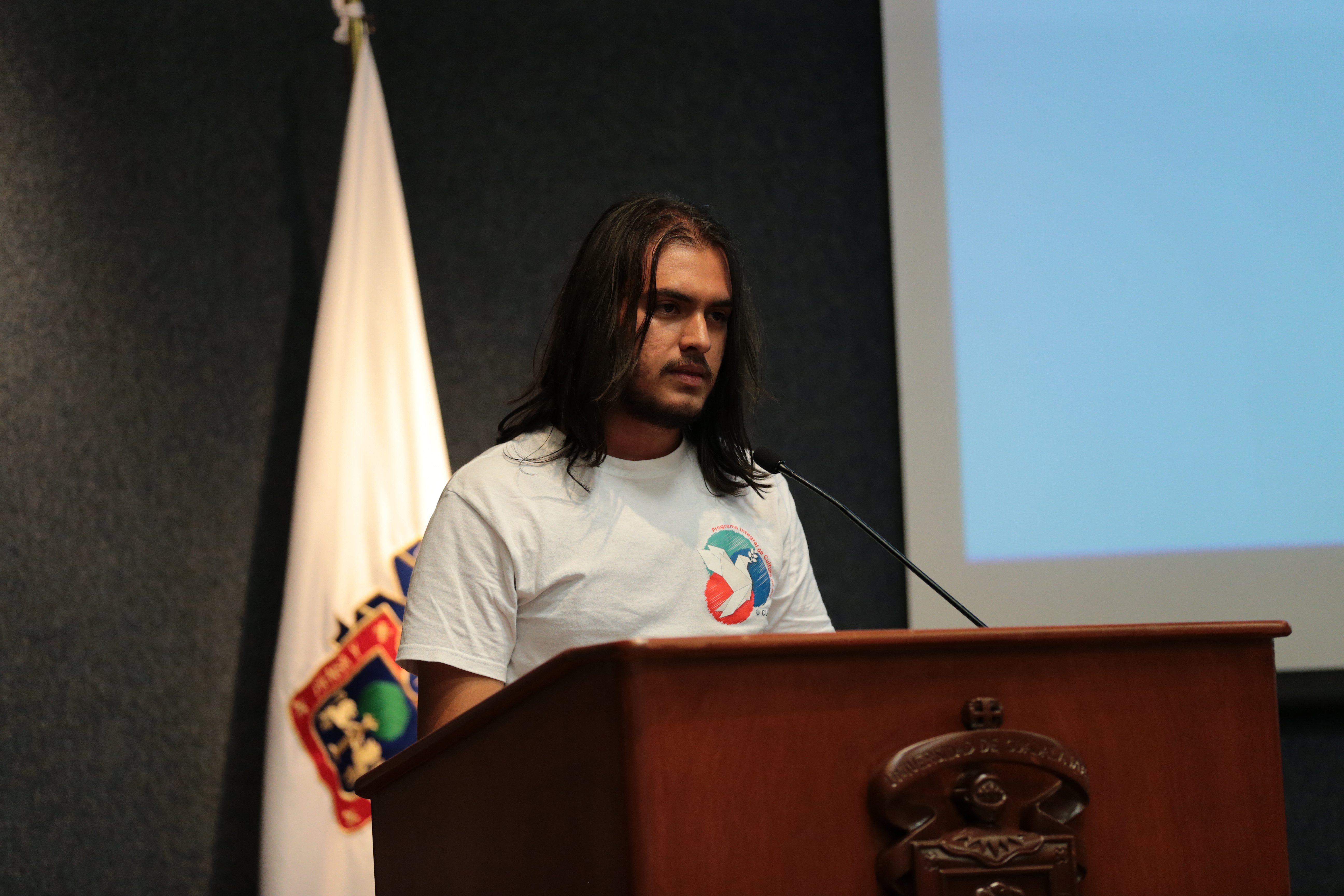 Padilla Montes prendió un listón blanco en la solapa del traje del Defensor de los Derechos Universitarios, doctor Dante Jaime Haro Reyes, que simboliza la inconformidad por la desaparición del estudiante. E invitó a toda la comunidad estudiantil, académica y administrativa, a que se prendan dicho distintivo.