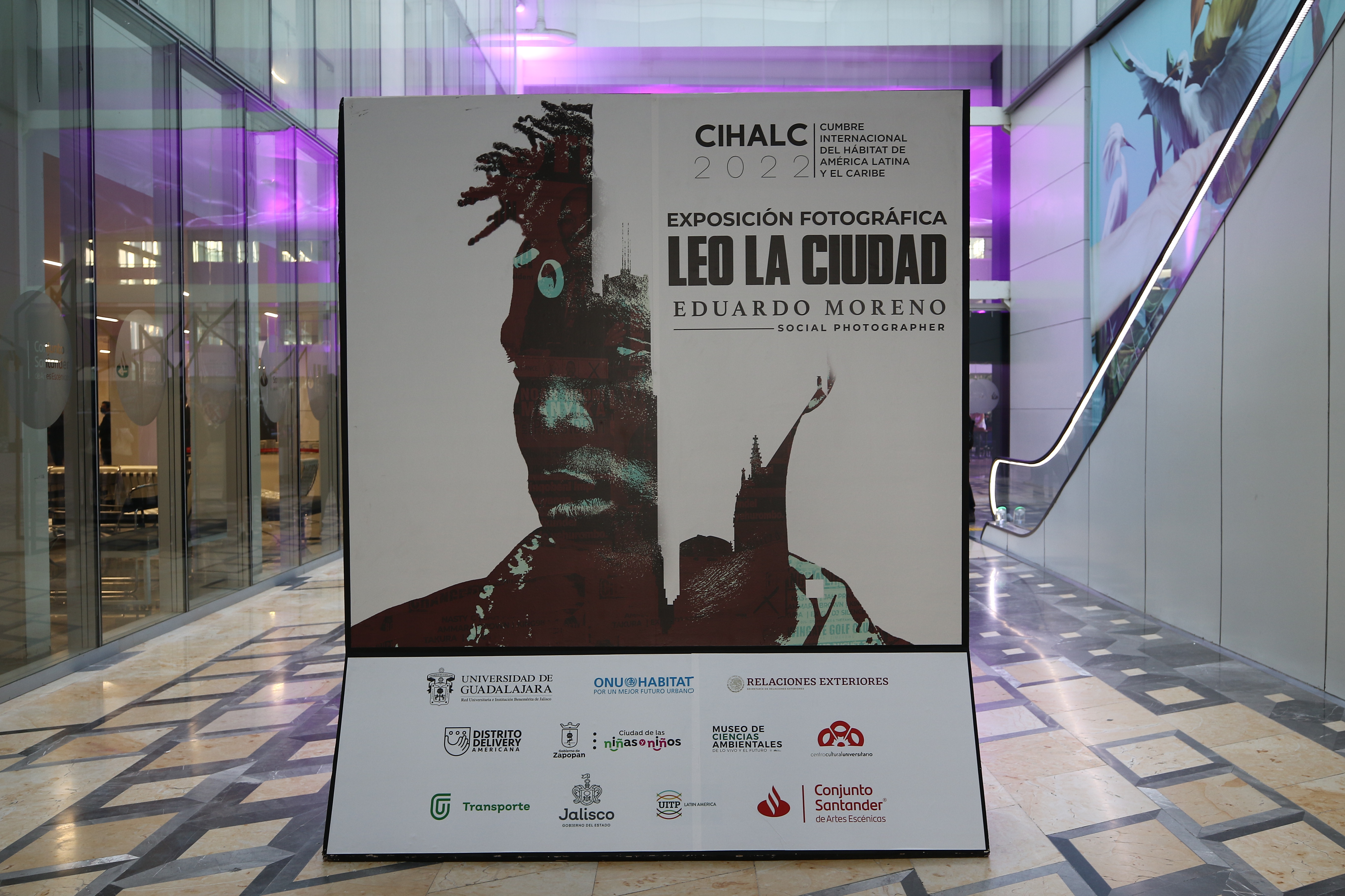 La exposición fotográfica Leo la ciudad, de Eduardo López Moreno, fue inaugurada la noche de este lunes en el marco de la Cumbre Internacional del Hábitat de América Latina y El Caribe (CIHALC) 2022, en el vestíbulo de la Cineteca de la Universidad de Guadalajara (UdeG).