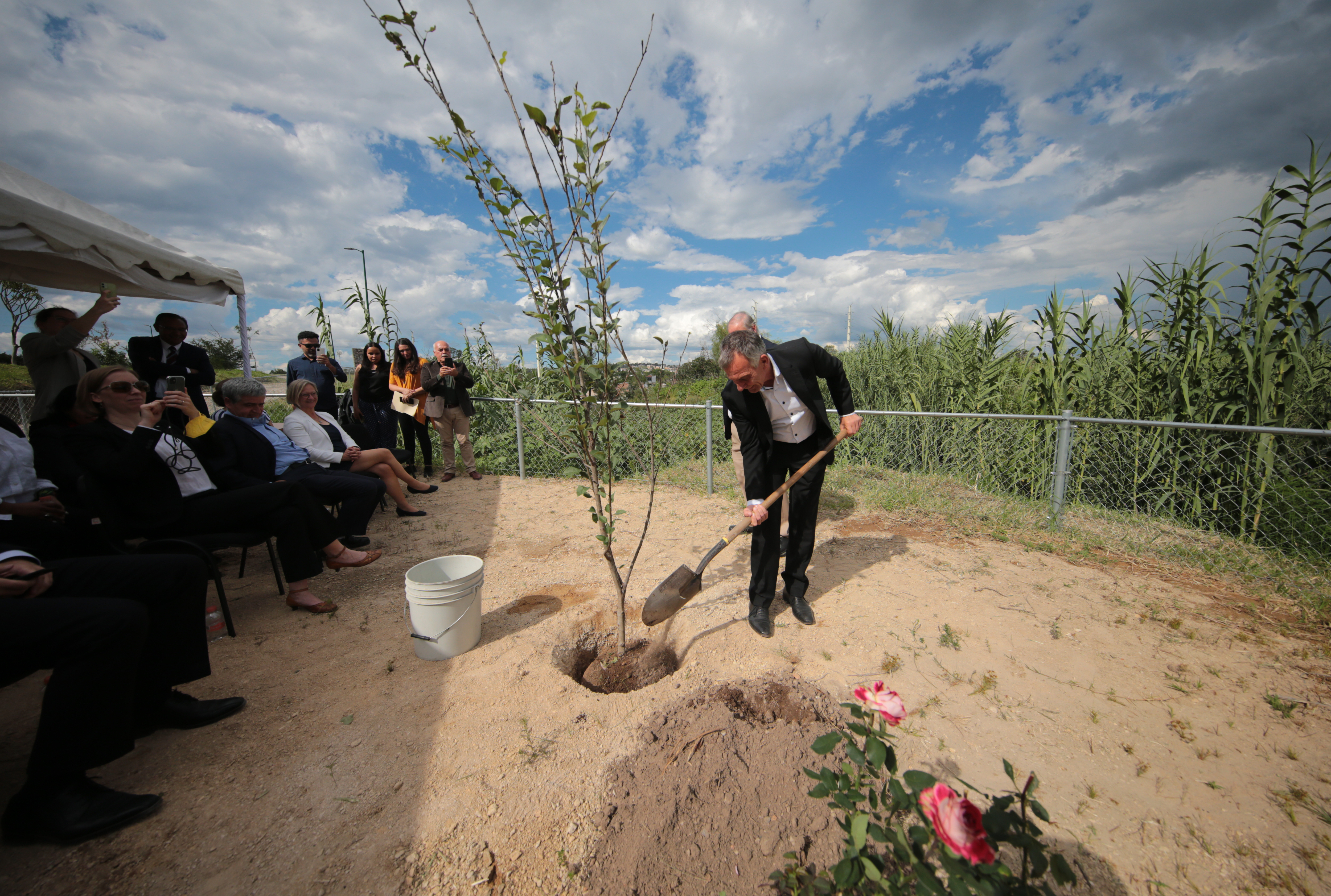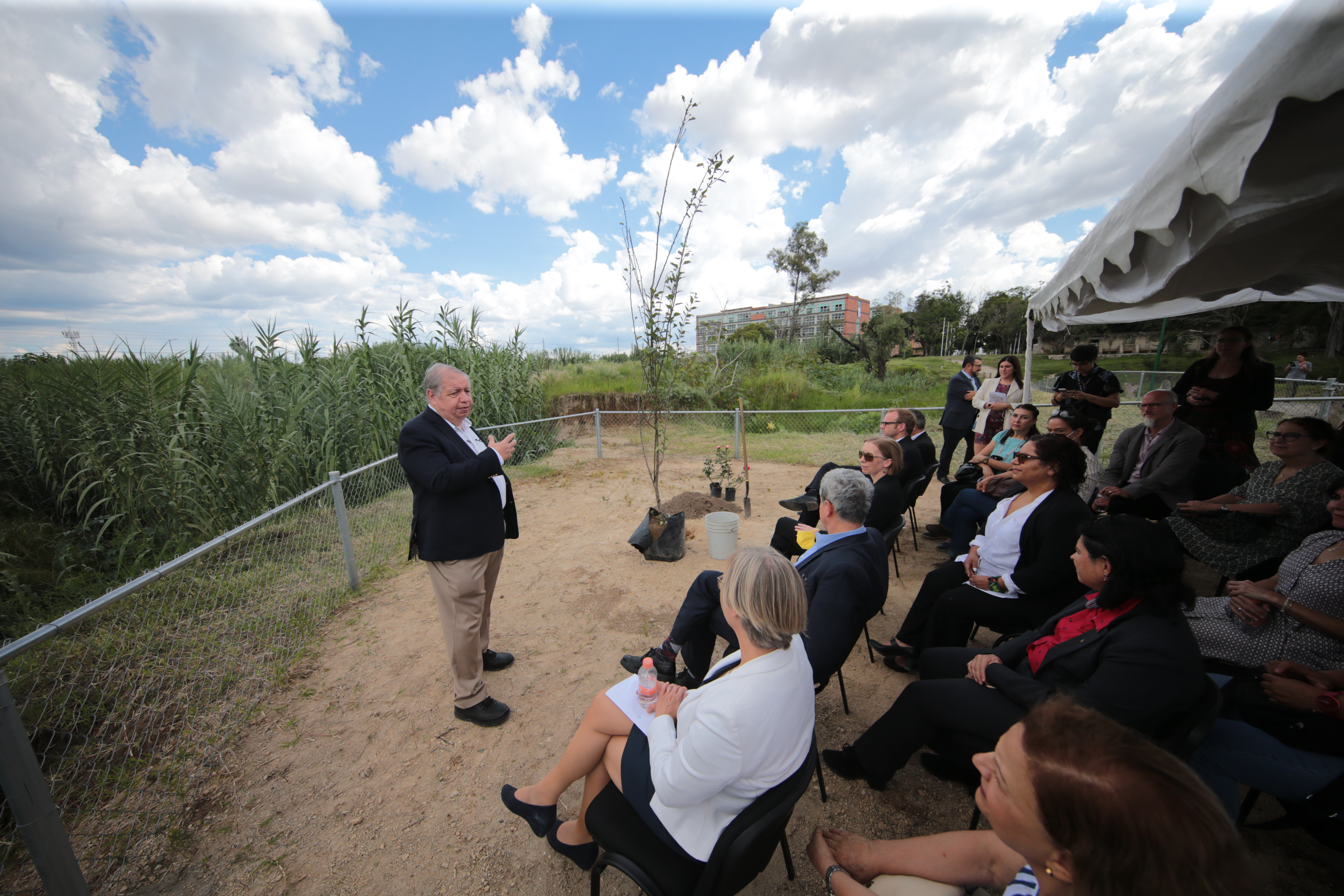 Con el objetivo de profundizar relaciones entre las universidades de Bielefeld, de Alemania y la de Guadalajara (UdeG) en cooperaciones académicas, en áreas como robótica, salud pública y epidemiología, fue plantado un manzano en el marco de la inauguración de la oficina de contacto de la mencionada institución de educación superior de Alemania en el Centro Universitario de Ciencias Sociales y Humanidades (CUCSH), sede Belenes.