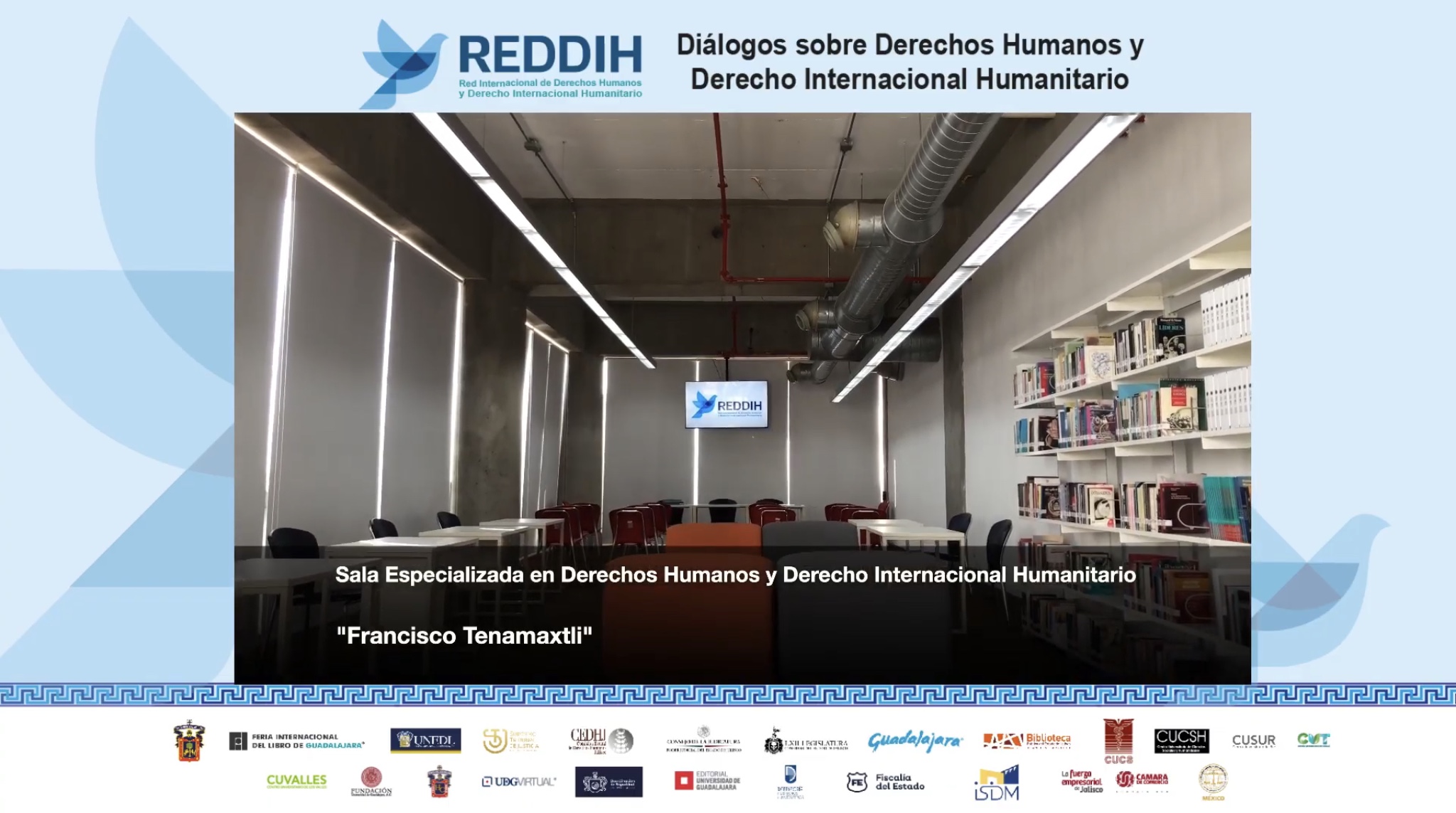 La Sala especializada en Derechos Humanos y Derecho Internacional Humanitario Francisco Tenamaxtli, ubicada en la Biblioteca Pública del Estado de Jalisco Juan José Arreola (BPEJ), fue inaugurada hoy, de manera virtual, por autoridades de la Universidad de Guadalajara (UdeG) y de la Red Internacional de Derechos Humanos y Derecho Internacional Humanitario (REDDEIH).