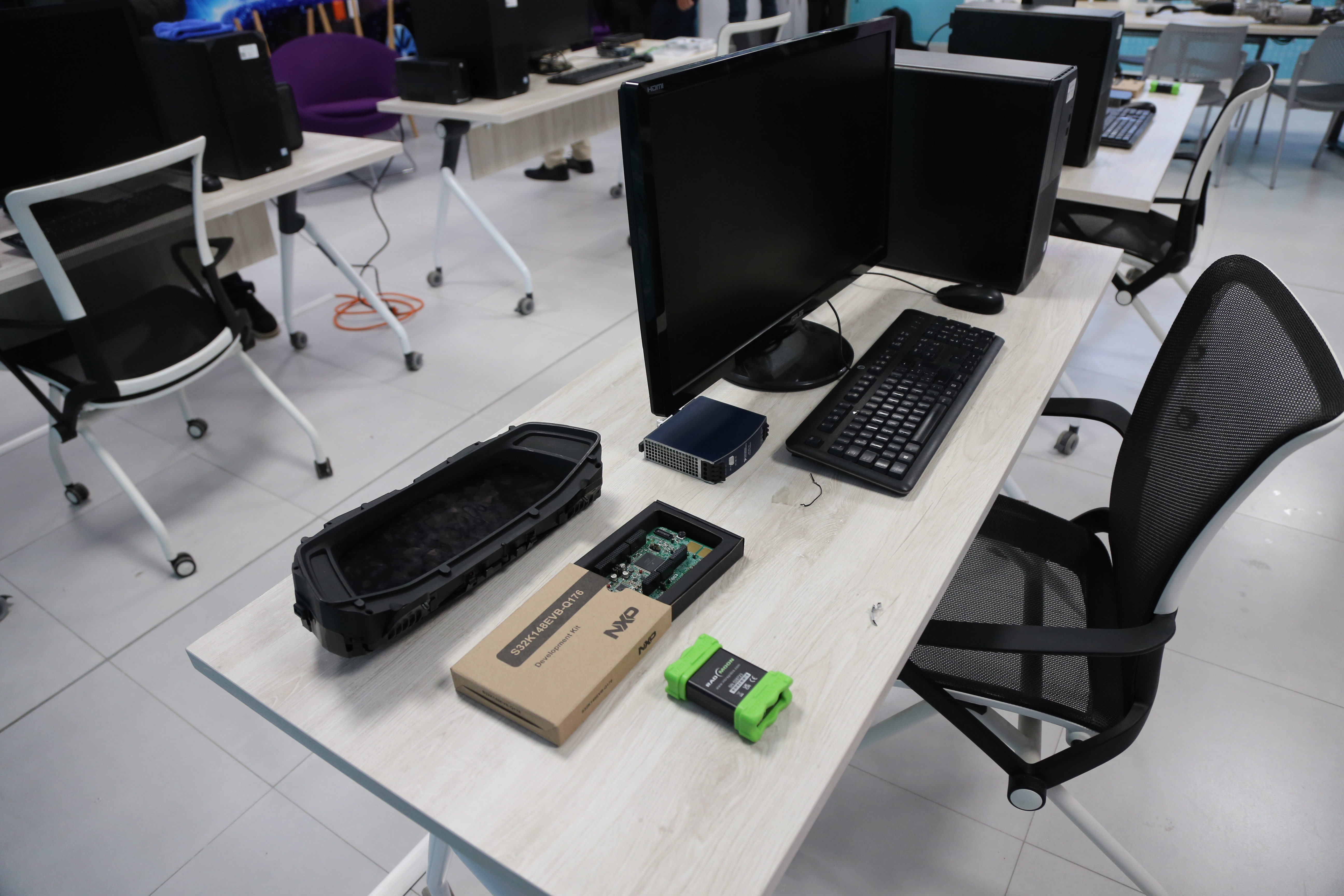 Este espacio fue creado para facilitar a estudiantes las condiciones para practicar el desarrollo de software empleado en la industria automotriz, con lo que se busca que empiecen a adentrarse en esta industria con prácticas basadas en pruebas reales.