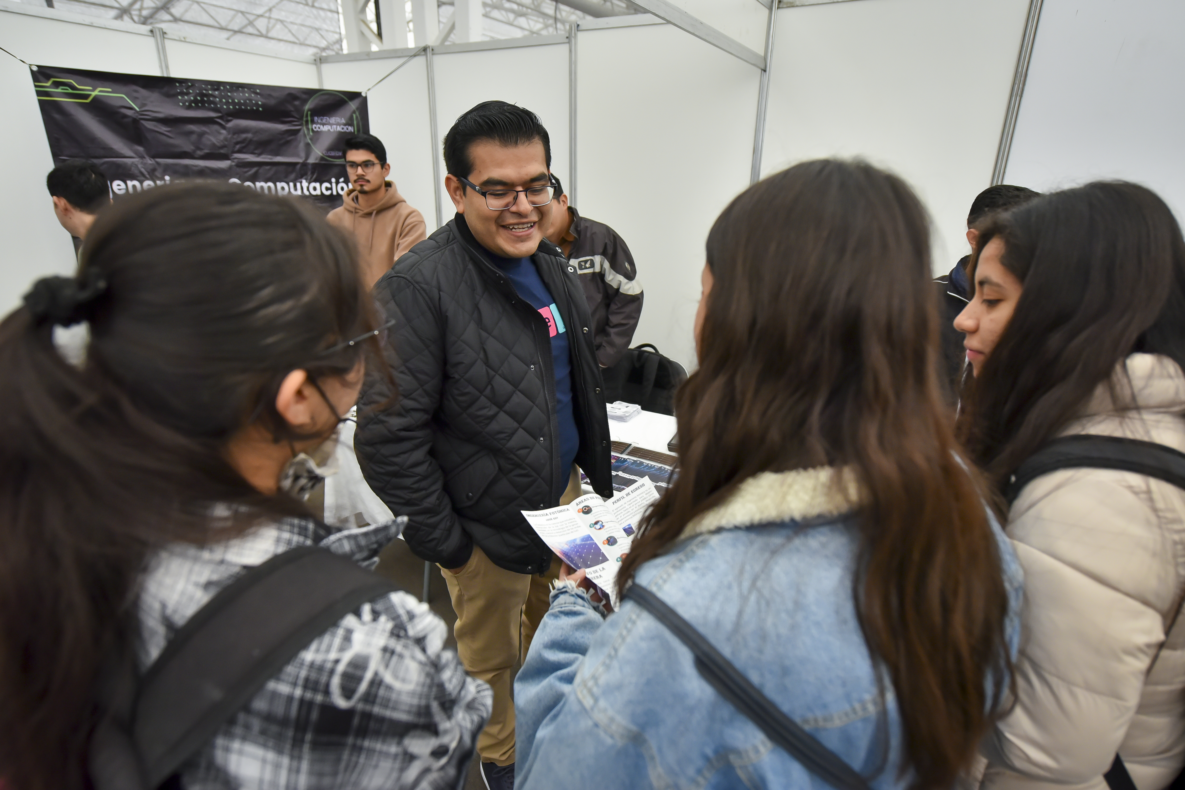 El Coordinador de Extensión y Difusión del CUCEI, Omar Israel Patiño Hernández, ofreció a los asistentes los programas académicos, entre los cuales resaltó los planes de estudio de la Ingeniería en Logística de Transporte; en Fotónica; y las tradicionales, en Computación y en Química, entre otros.