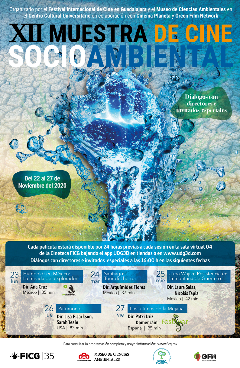 La confluencia entre ecología, cultura, y justicia social, es el tema central de la XII Muestra de Cine Socioambiental que tendrá lugar desde hoy domingo 22 de noviembrre hasta el 27 de noviembre de 2020, en el marco del Festival Internacional de Cine en Guadalajara (FICG), en su edición 35.