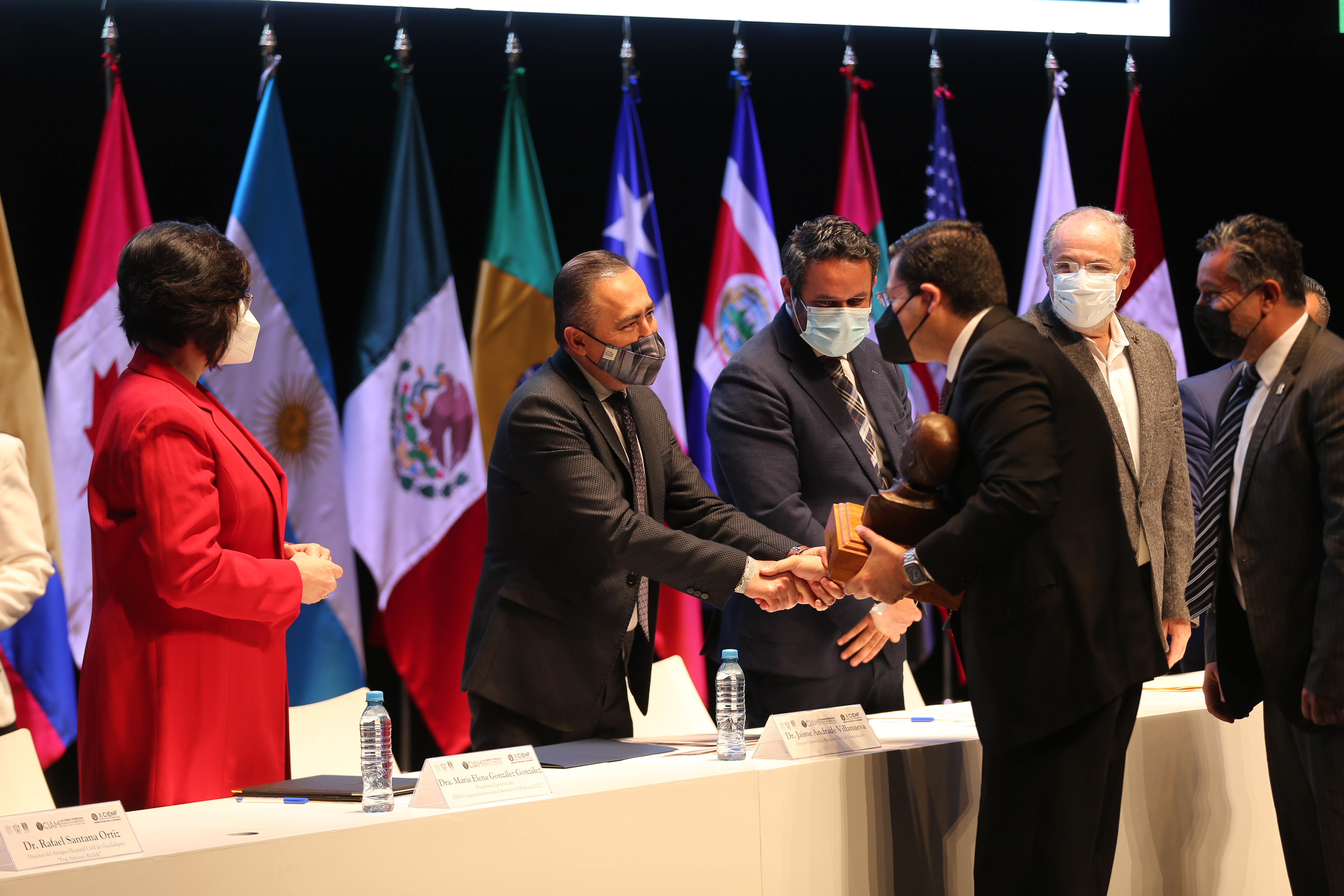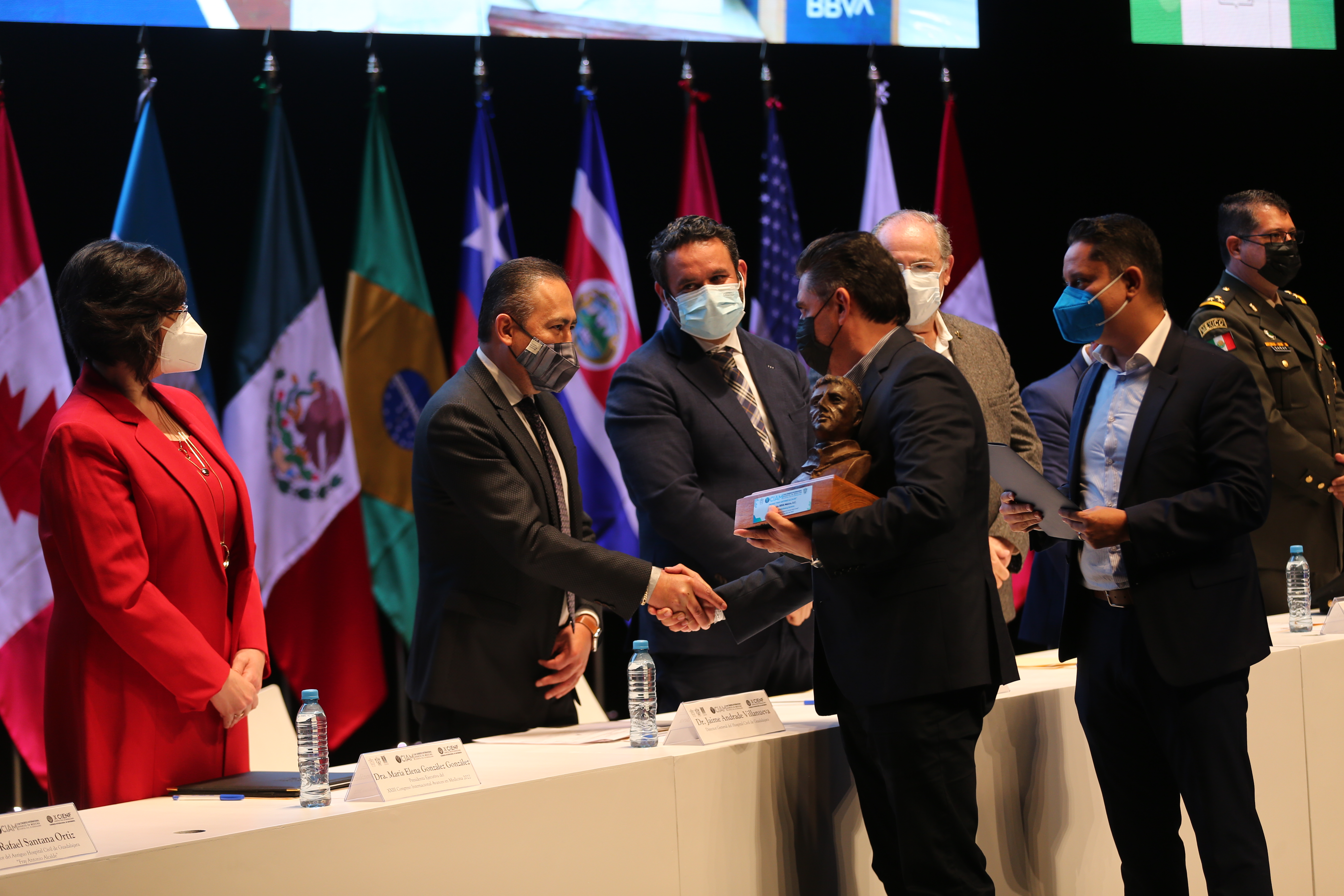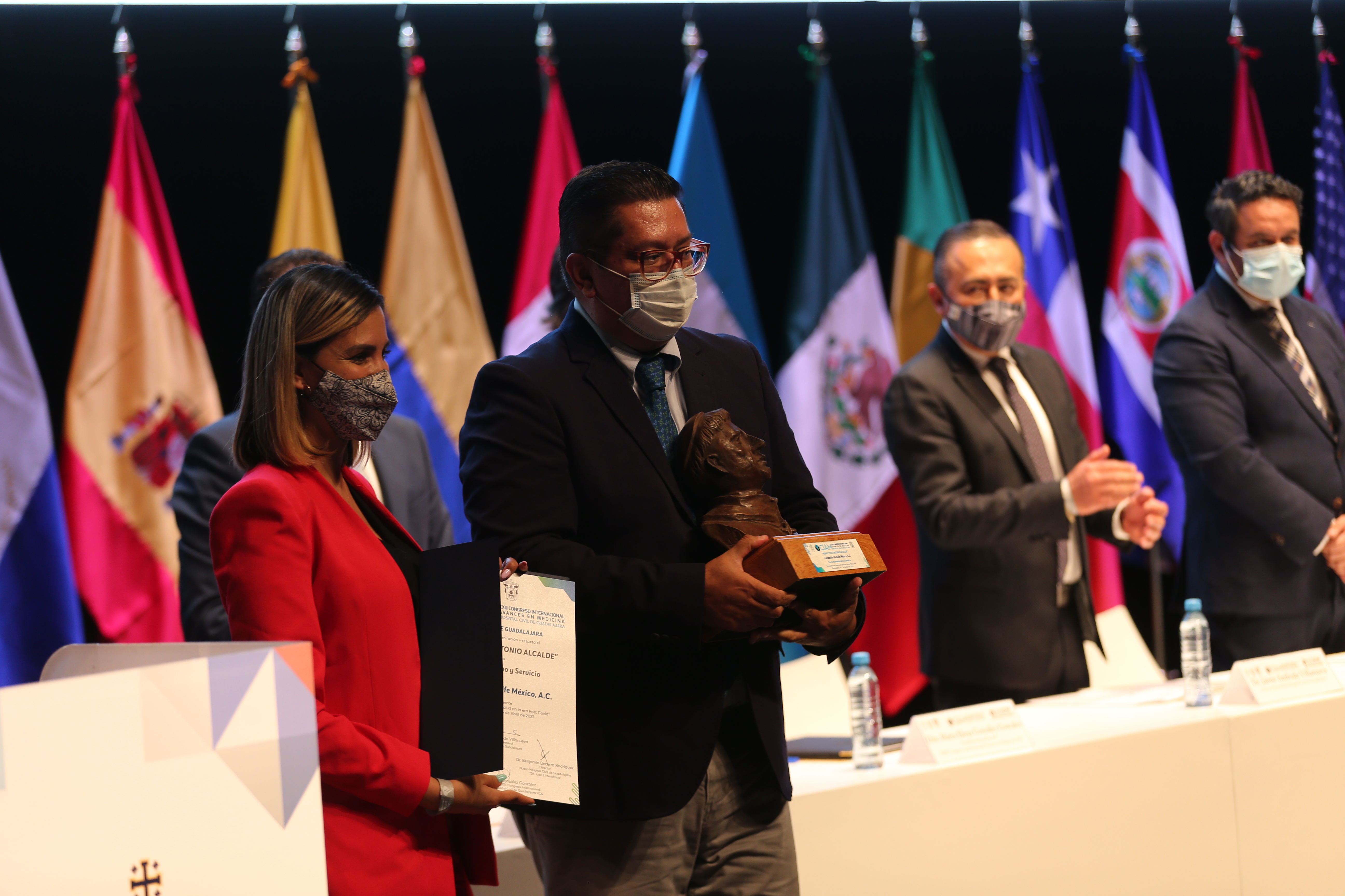 Por su incansable labor de humanismo y servicio, durante el CIAM, la Universidad de Guadalajara y el HCG entregaron el reconocimiento “Fray Antonio Alcalde” a cuatro instituciones que han contribuido en el engrandecimiento de las unidades de los hospitales civiles.