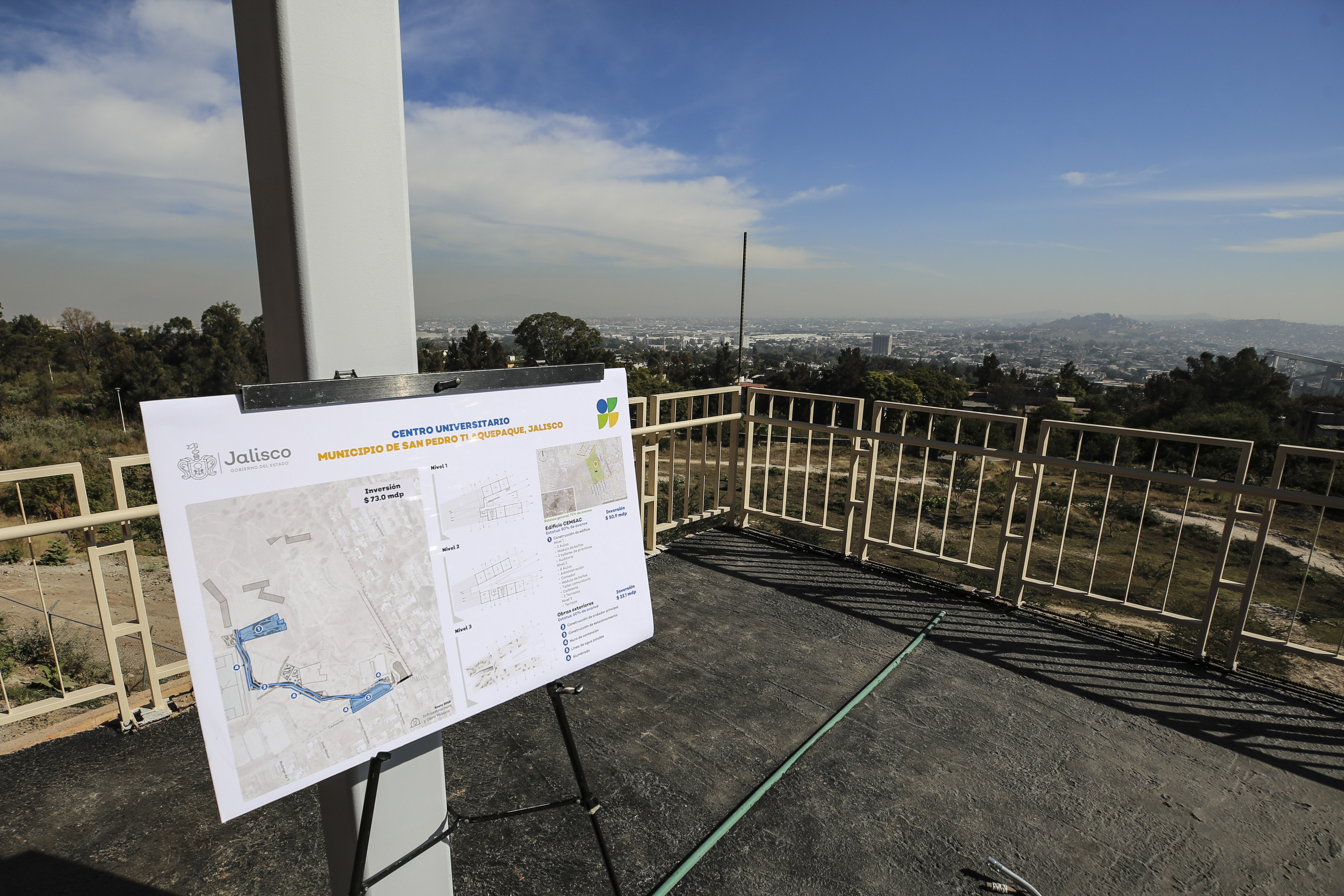 Luego de un recorrido de avances de obra en el Centro Universitario de Tlaquepaque (CUTlaquepaque), que se edifica en el Parque Metropolitano del Cerro del Cuatro, autoridades de la Universidad de Guadalajara (UdeG), del Gobierno de Jalisco y del ayuntamiento de San Pedro Tlaquepaque dieron a conocer que éste presenta un avance de 85 por ciento.