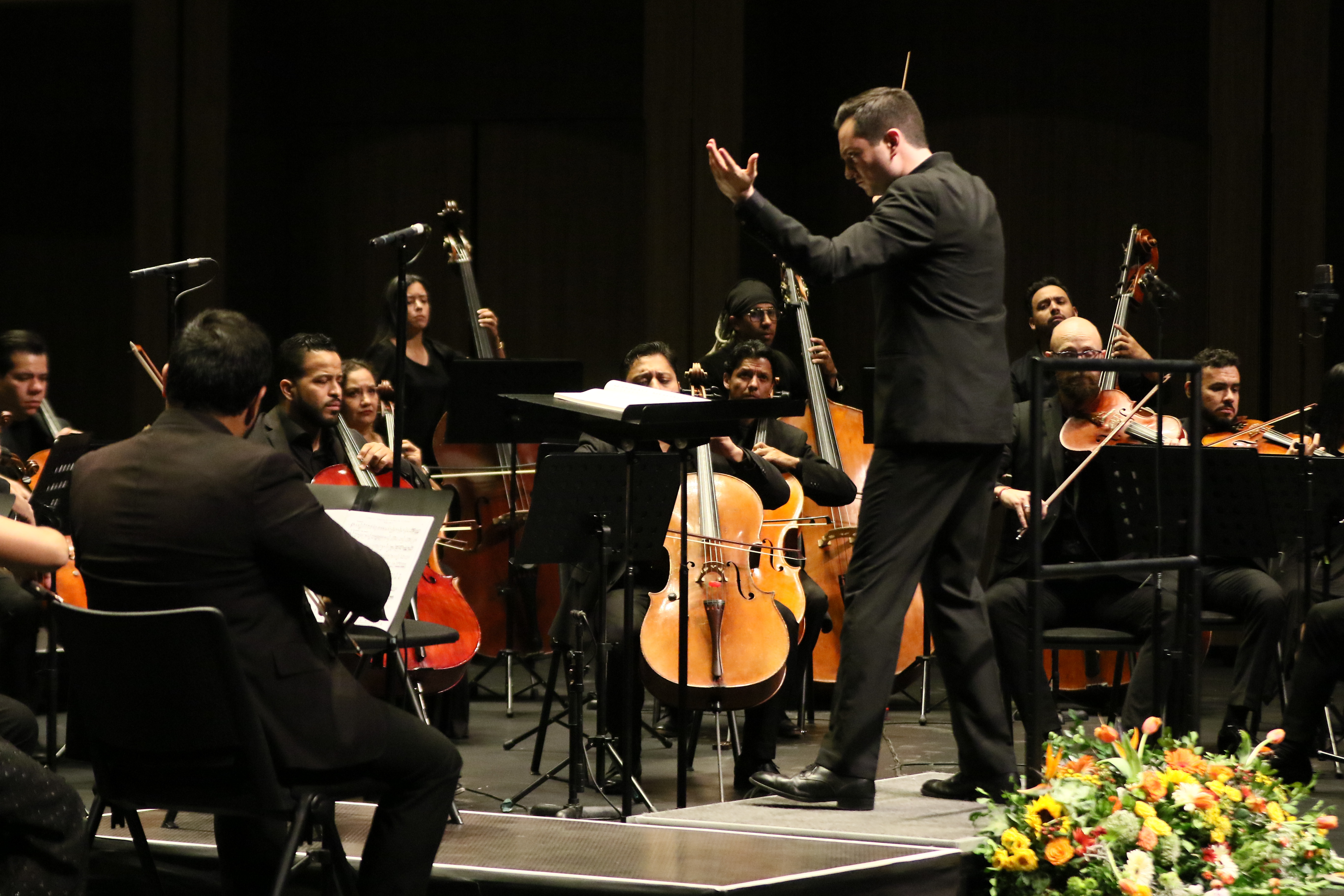 La orquesta interpretó primero el cuarto movimiento de la Sinfonía número 6 en si menor y Variaciones sobre un tema Rococó, ambas de Tchaikovsky, y finalmente, la Sinfonía número 5 en Do menor de Beethoven.